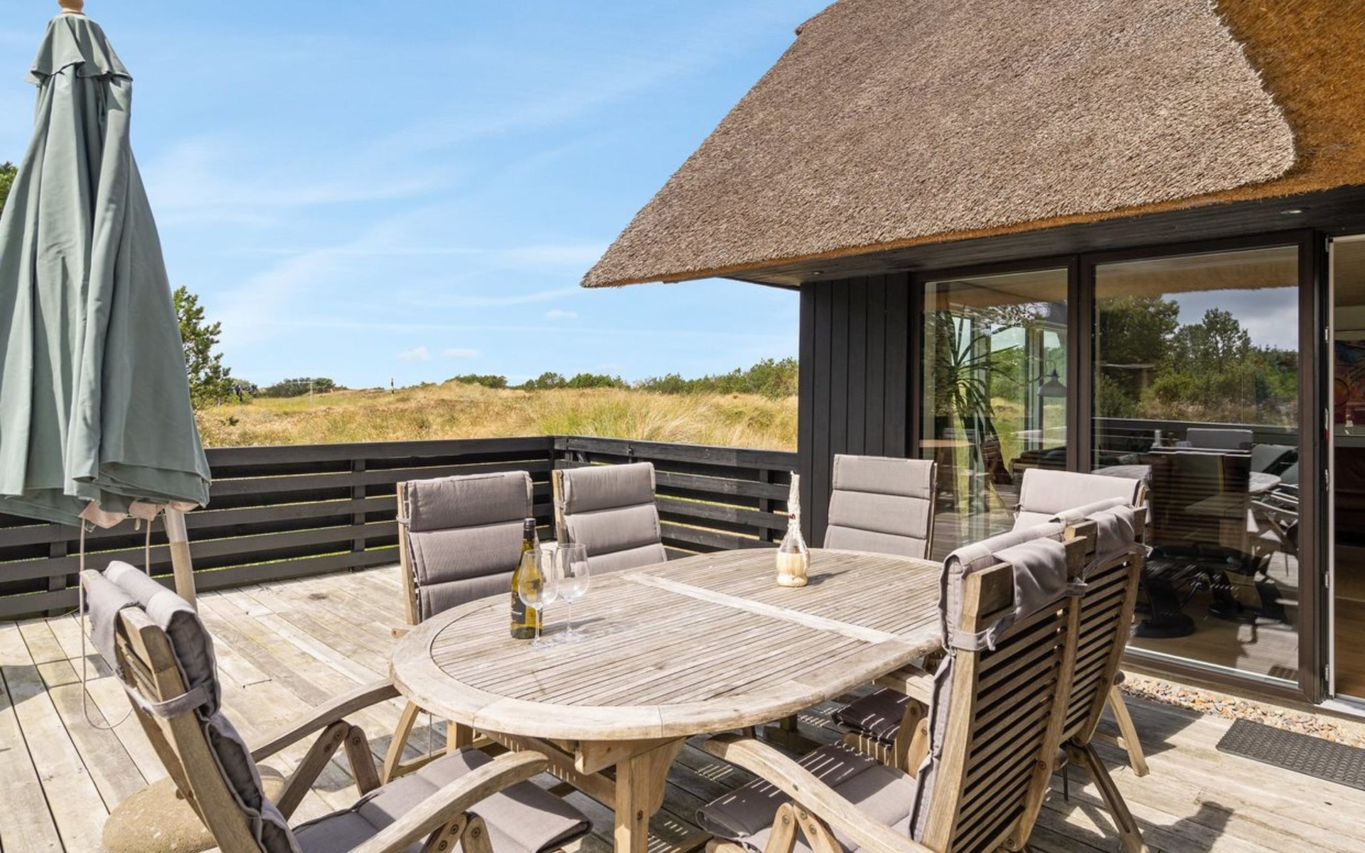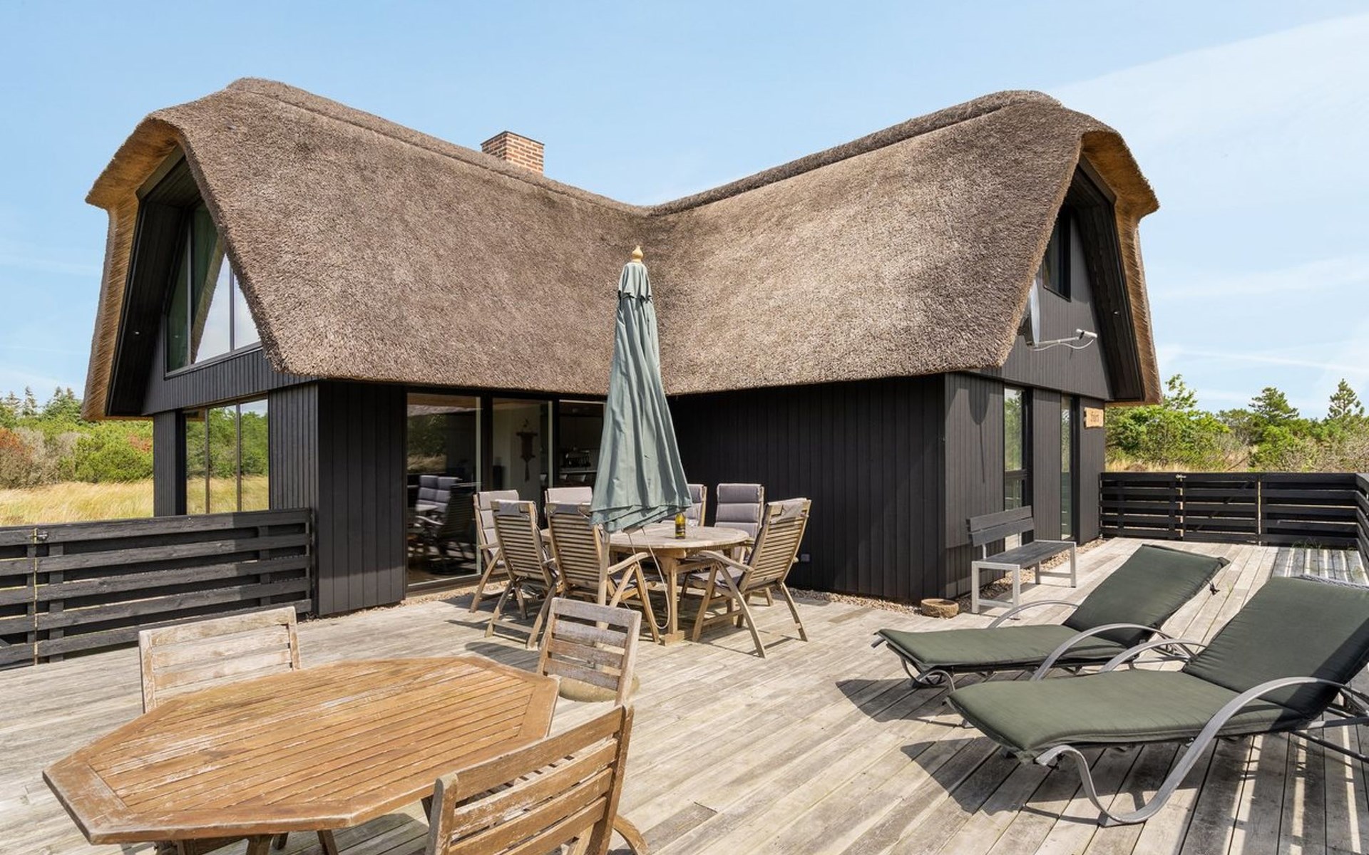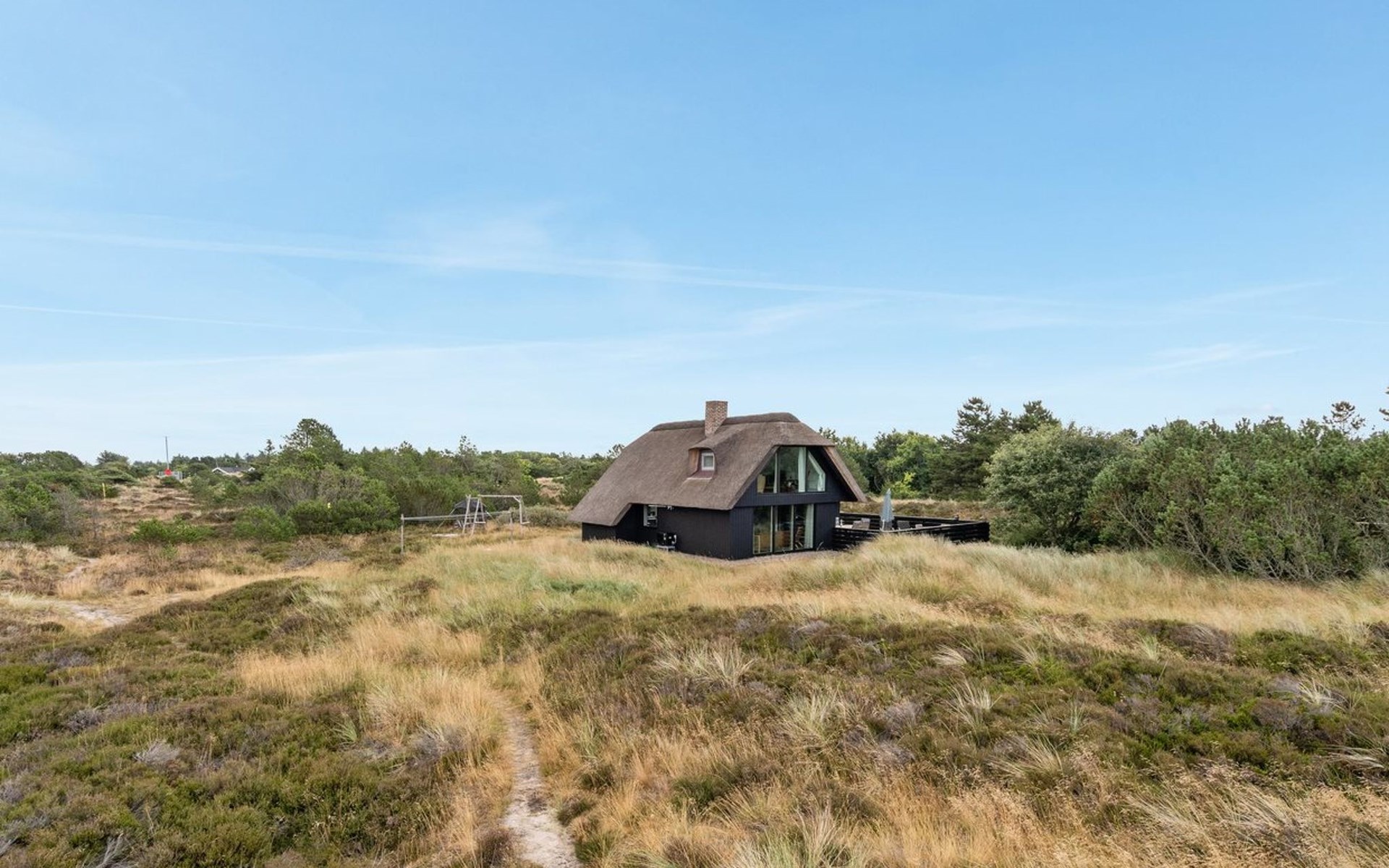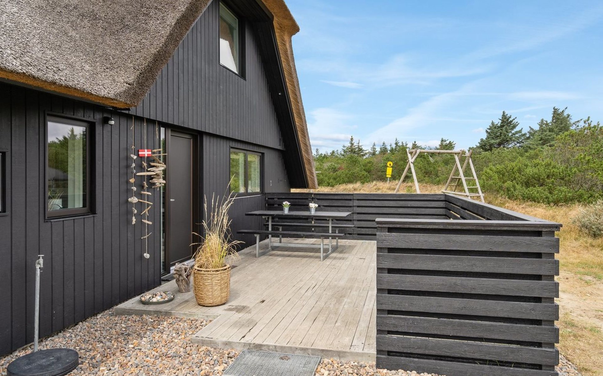 Einfamilienhaus, Baujahr 1987. 1.5 km vom Meer. Zur Alleinbenutzung: naturbelassenes Grundstück 1'825 m2. Terrasse (187 m2), Kinderspielplatz (Schaukel). Im Hause: Waschmaschine, Wäschetrockner. Parkplatz beim Haus. Lebensmittelgeschäft 900 m. Der Besitzer akzeptiert keine Jugendgruppen.