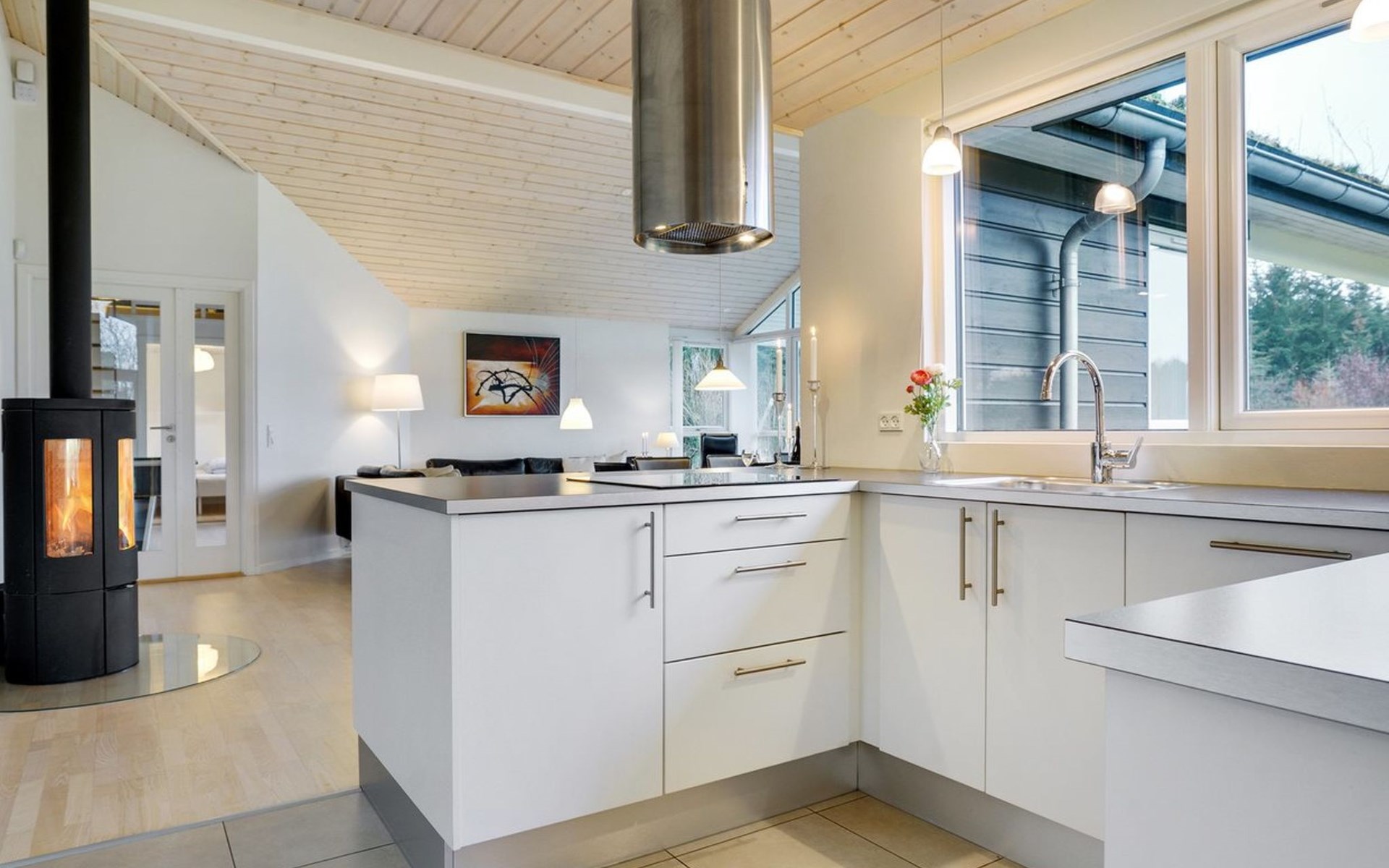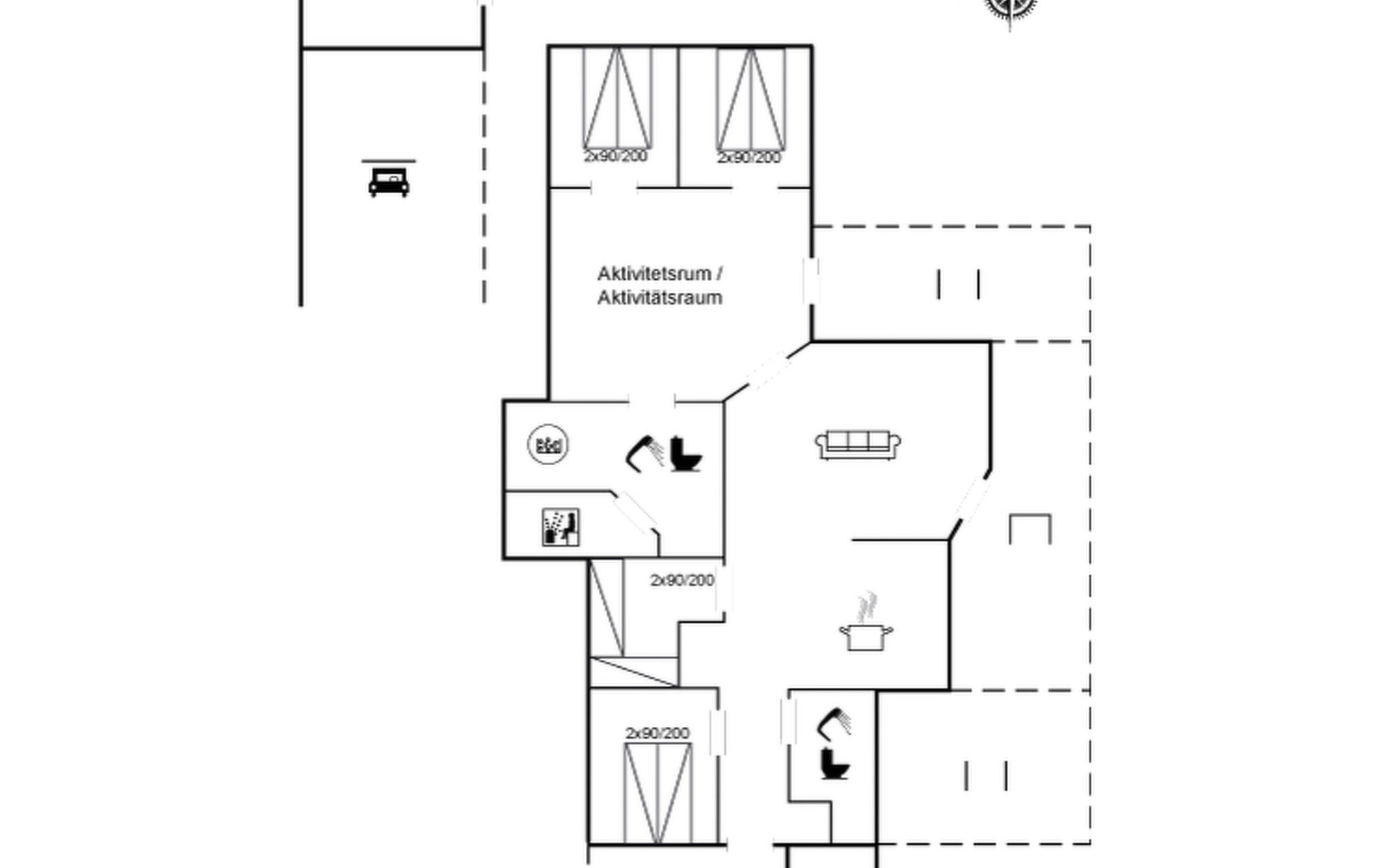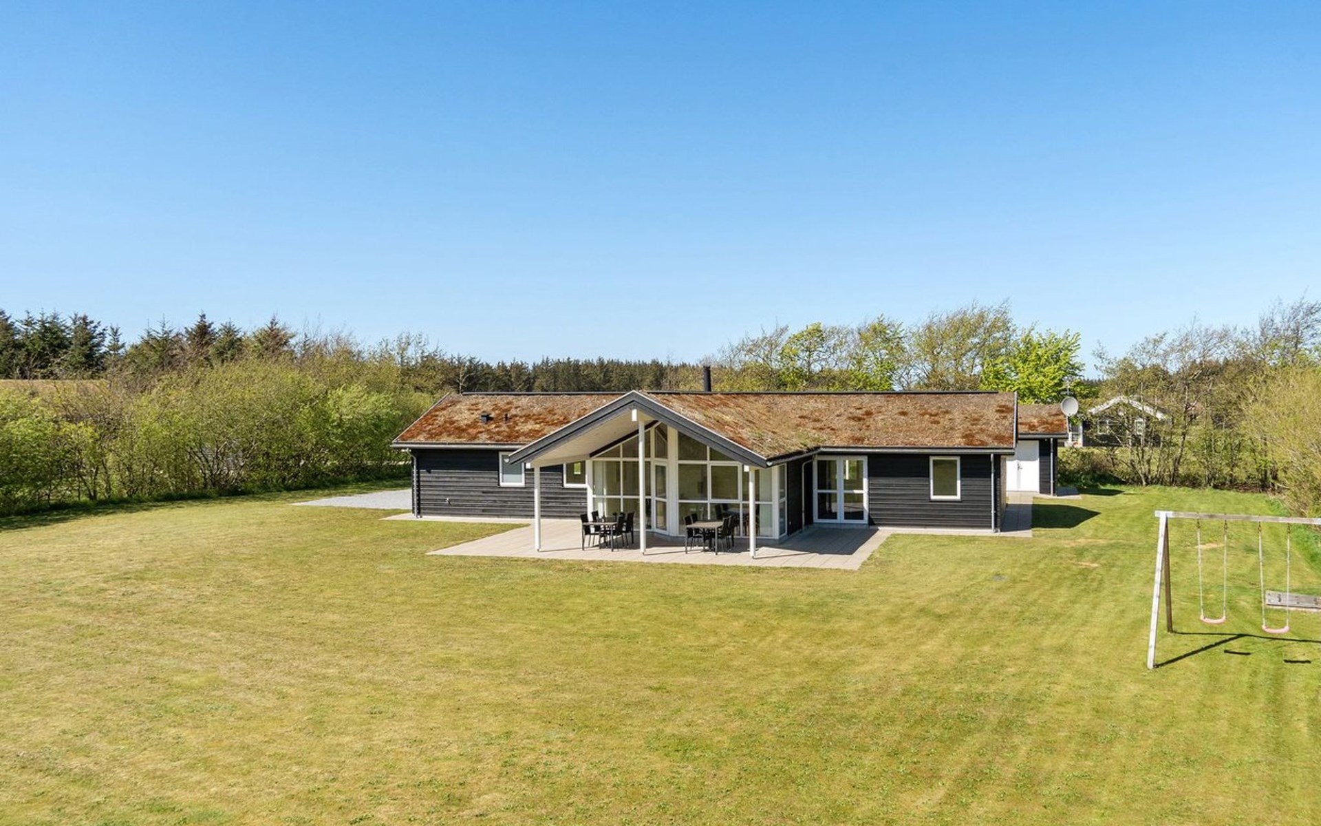 Einfamilienhaus, Baujahr 2013. 1.8 km vom Meer. Zur Alleinbenutzung: naturbelassenes Grundstück 2'600 m2. Terrasse (35 m2), Kinderspielplatz. Im Hause: Sauna, Waschmaschine, Wäschetrockner. Parkplatz beim Haus. Carport. Lebensmittelgeschäft 1.5 km. Der Besitzer akzeptiert keine Jugendgruppen.