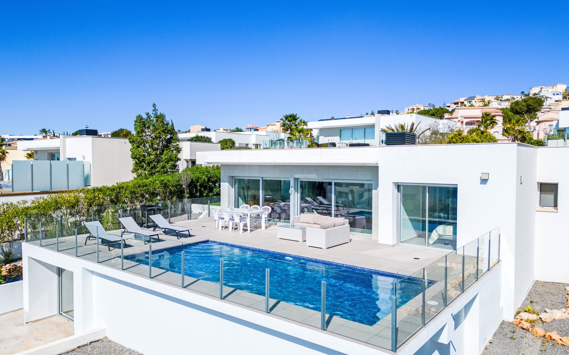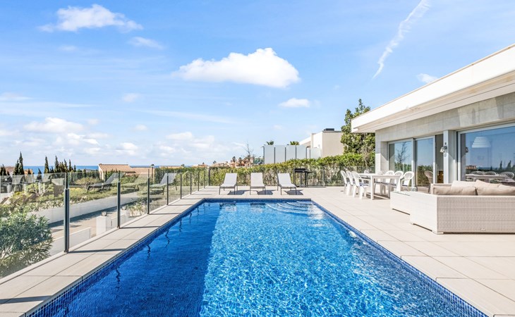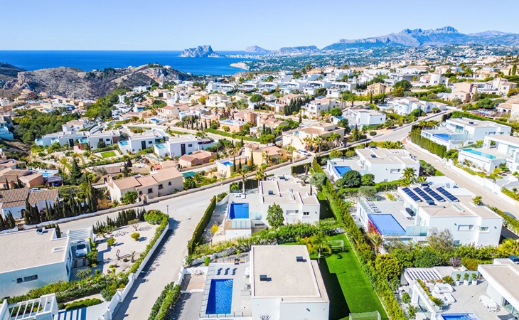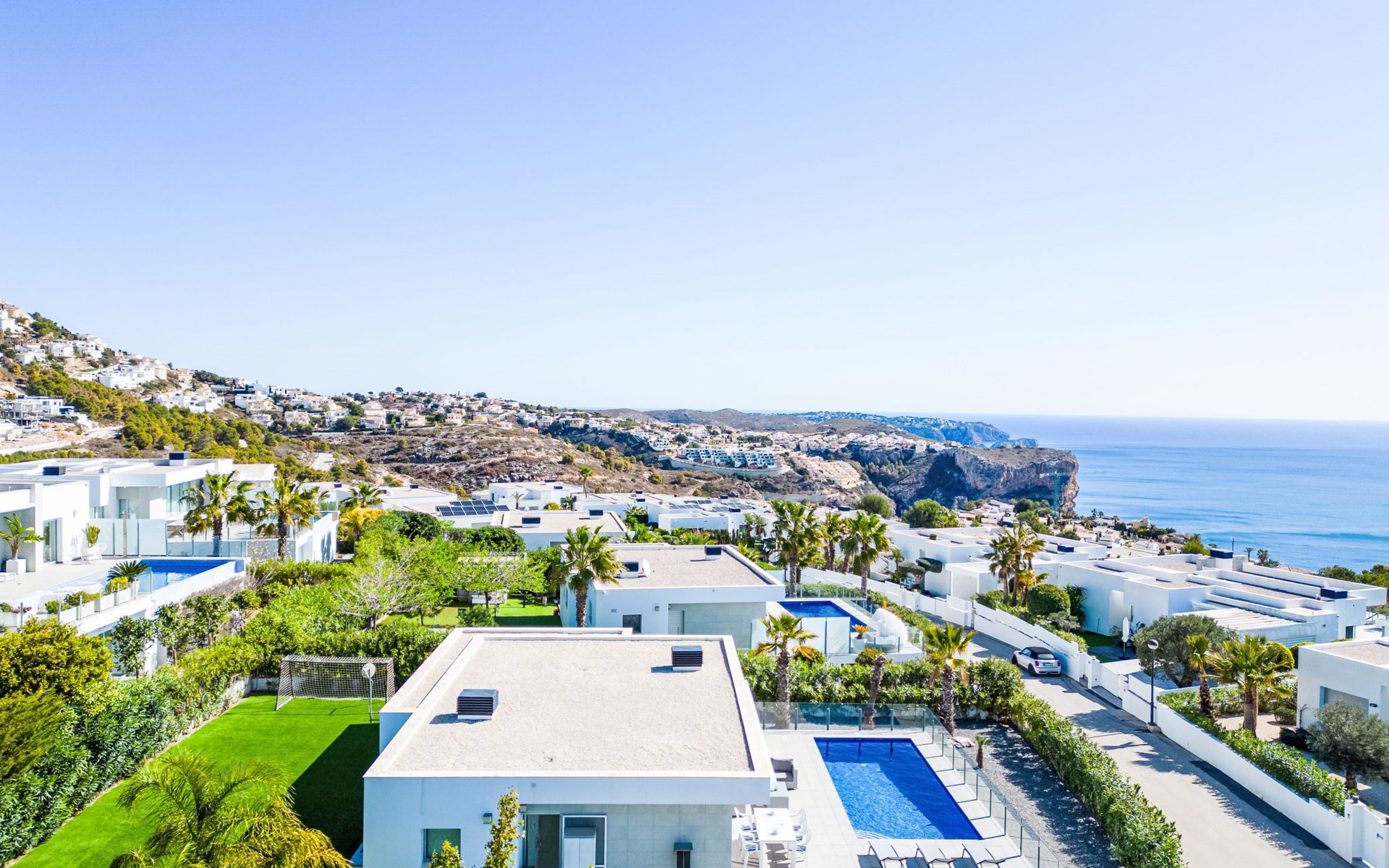 Cumbre del Sol: Moderne, schöne Villa "Blanca". 5 km vom Zentrum von Moraira, 14 km vom Zentrum von Benissa, 24 km vom Zentrum von Calpe, ruhige, sonnige Lage im Villenviertel, verkehrsberuhigte Zone, 2 km vom Meer, 2 km vom Strand. Zur Alleinbenutzung: Grundstück 850 m2 (eingezäunt), schöner Garten, Schwimmbad (8 x 3 m, 120 - 210 cm tief, saisonale Verfügbarkeit: 01.Jan. - 31.Dez.). Terrasse, Gartenmöbel, Grill. Bushaltestelle "Benitachell" 5.1 km, Bahnstation "Teulada" 8.7 km, Fähre "Denia" 24 km, Kieselstrand "Cala Moraig" 5.4 km. Der Besitzer akzeptiert keine Jugendgruppen.