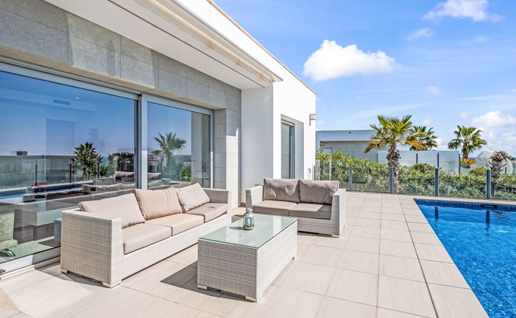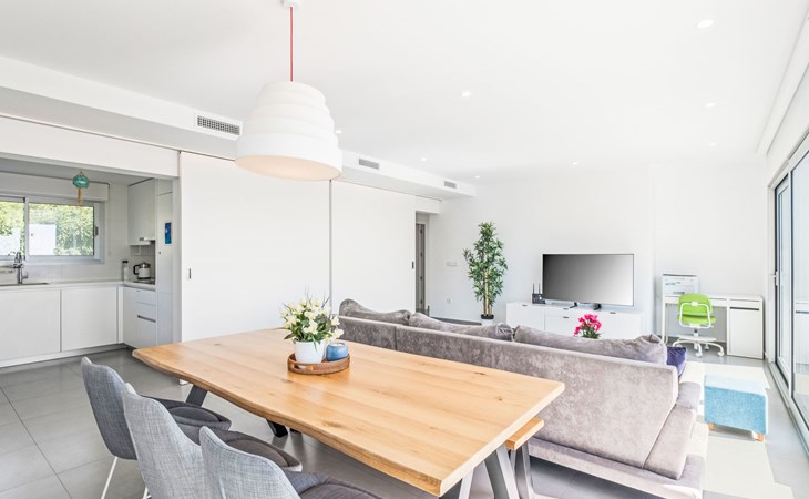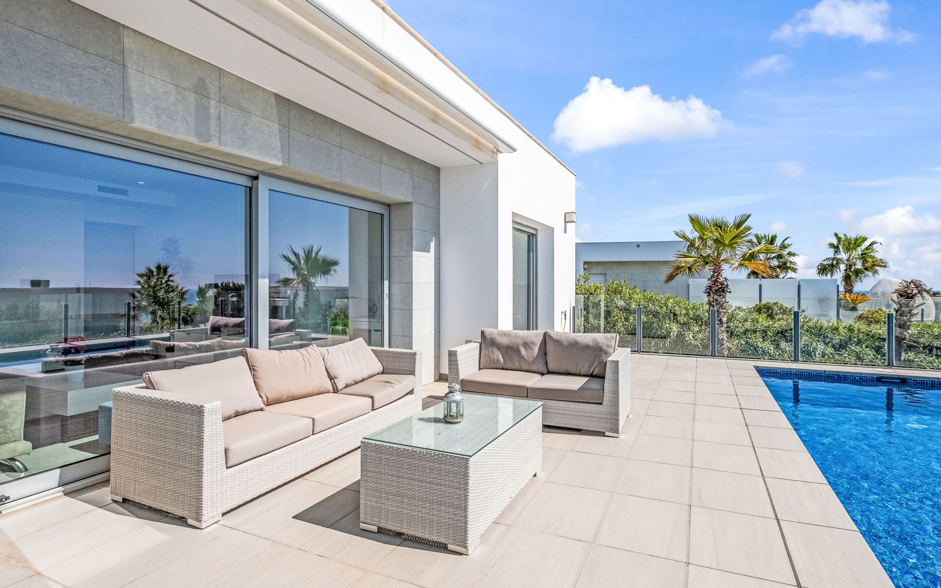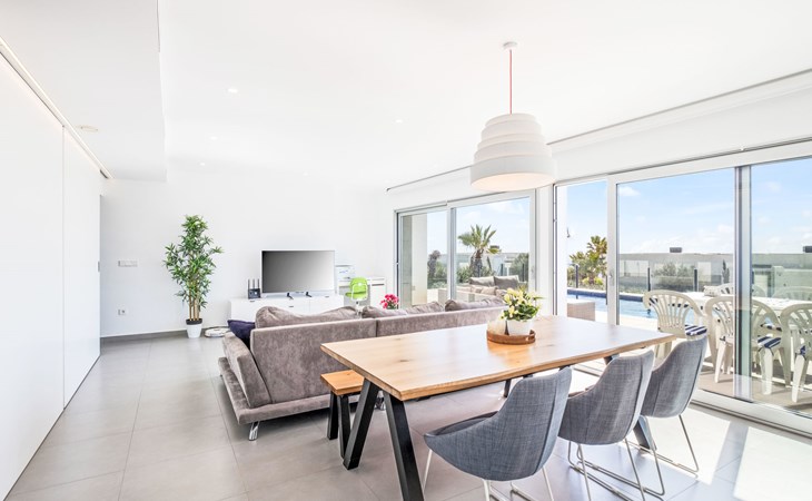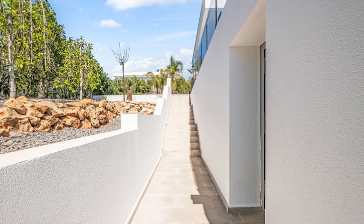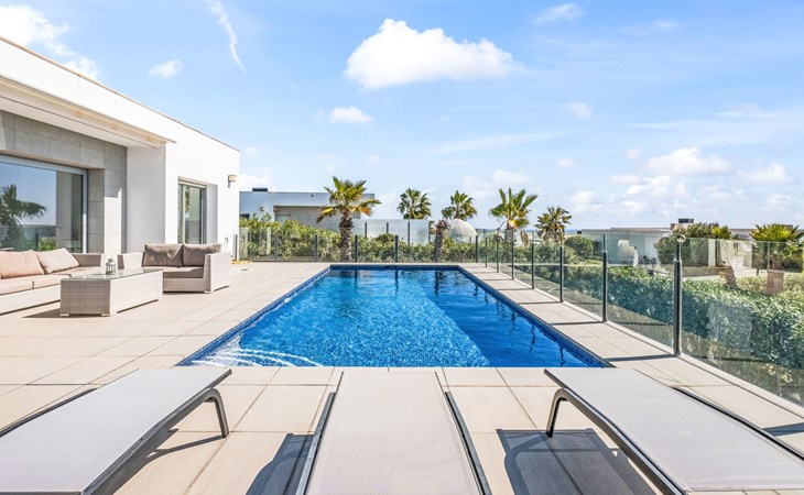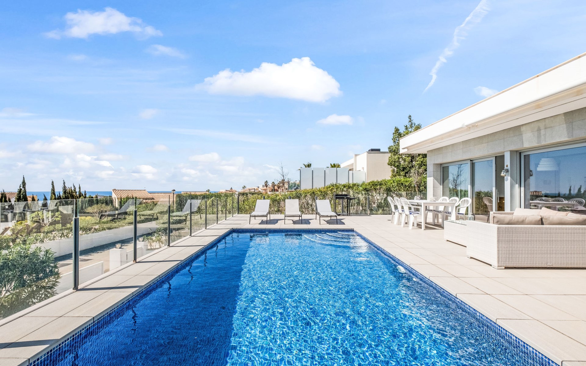 Cumbre del Sol: Moderne, schöne Villa "Blanca". 5 km vom Zentrum von Moraira, 14 km vom Zentrum von Benissa, 24 km vom Zentrum von Calpe, ruhige, sonnige Lage im Villenviertel, verkehrsberuhigte Zone, 2 km vom Meer, 2 km vom Strand. Zur Alleinbenutzung: Grundstück 850 m2 (eingezäunt), schöner Garten, Schwimmbad (8 x 3 m, 120 - 210 cm tief, saisonale Verfügbarkeit: 01.Jan. - 31.Dez.). Terrasse, Gartenmöbel, Grill. Bushaltestelle "Benitachell" 5.1 km, Bahnstation "Teulada" 8.7 km, Fähre "Denia" 24 km, Kieselstrand "Cala Moraig" 5.4 km. Der Besitzer akzeptiert keine Jugendgruppen.