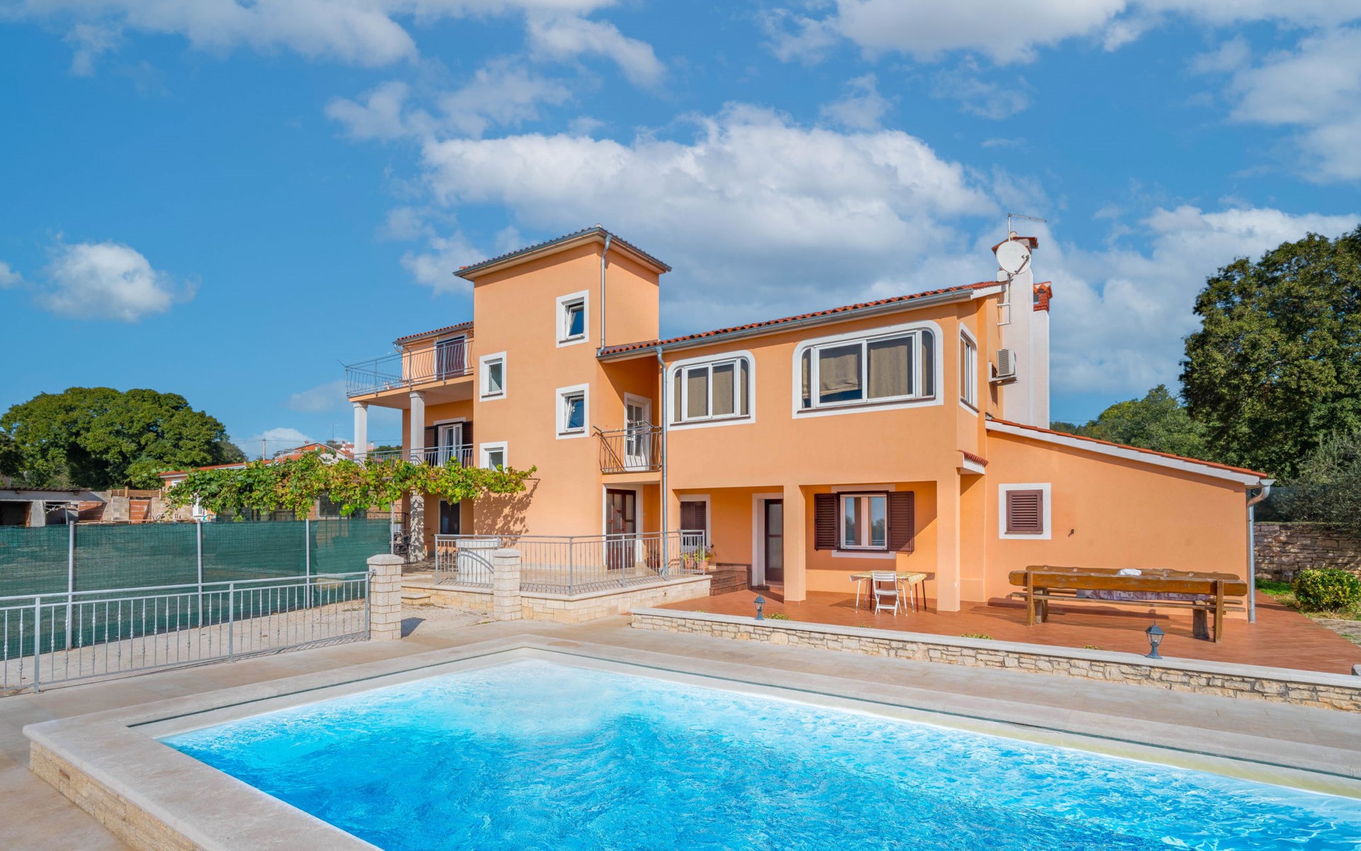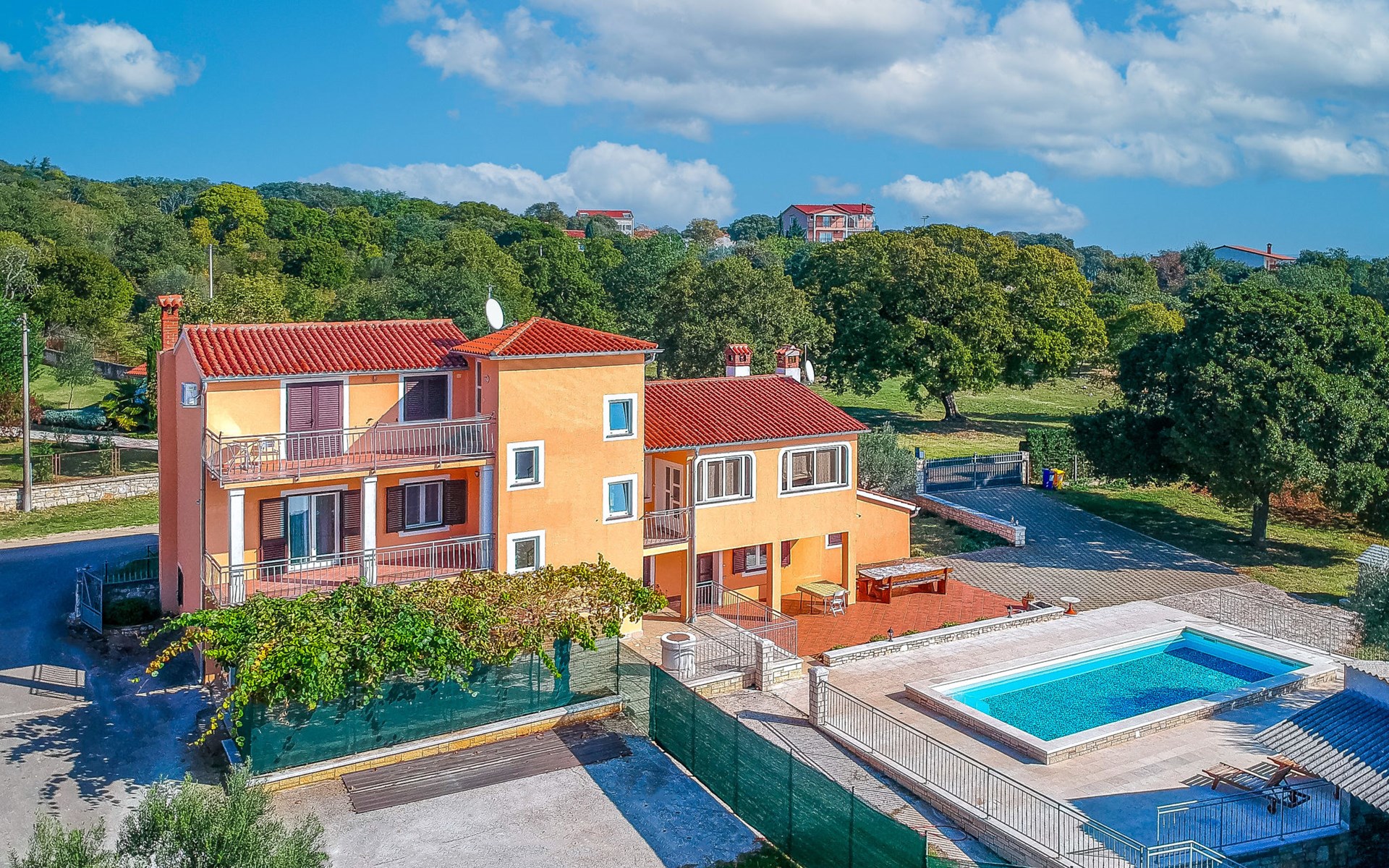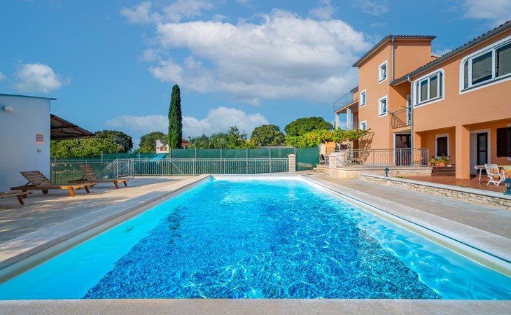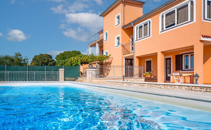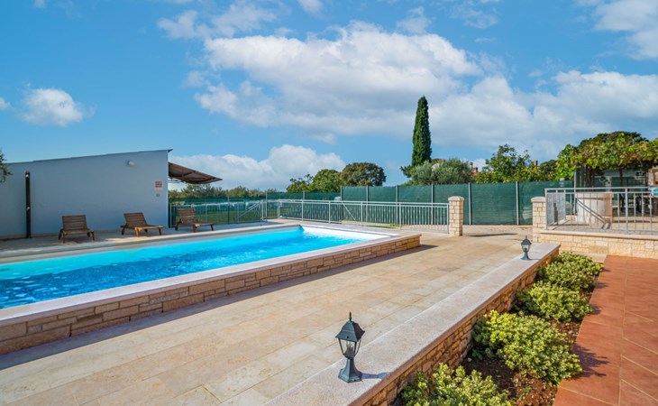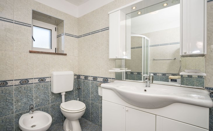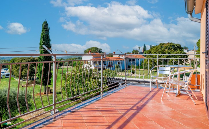 Doppelhaus "Ulika", auf 3 Stockwerken. Im Weiler Golaš, 5 km vom Zentrum von Bale, ruhige, sonnige Lage, 9 km vom Meer. Zur Alleinbenutzung: Grundstück 1'000 m2, Garten mit Pflanzen und Bäumen, Schwimmbad eckig (4 x 10 m, 140 cm tief, saisonale Verfügbarkeit: 01.Mai. - 01.Okt.). Aussendusche, Grill. Im Hause: Internetzugang, Waschmaschine. Parkplatz beim Haus auf dem Grundstück. Einkaufsgeschäft 5 km, Restaurant 2 km, Bushaltestelle 5.2 km, Kieselstrand 11 km, Park "Histria aromatica" 2 km, Strandbad 11 km. Jugendgruppen nur auf Anfrage. Bitte beachten: Der Besitzer wohnt auf dem gleichen Grundstück. Doppelhaushälfte besteht aus 3 Wohnungen vermietet als eine Einheit.
