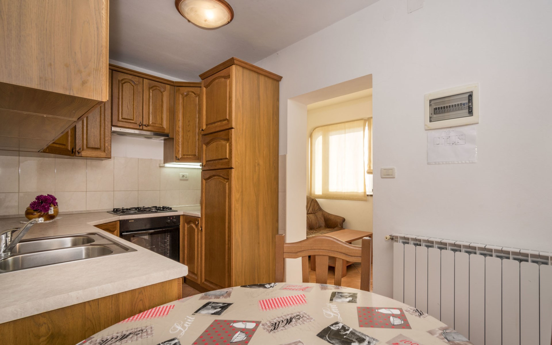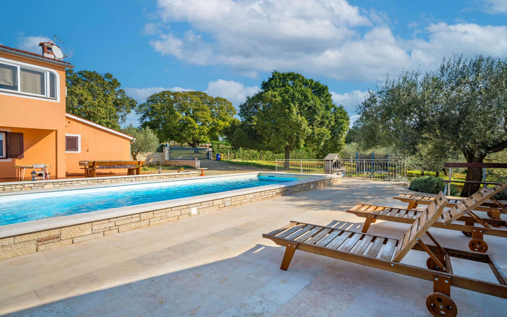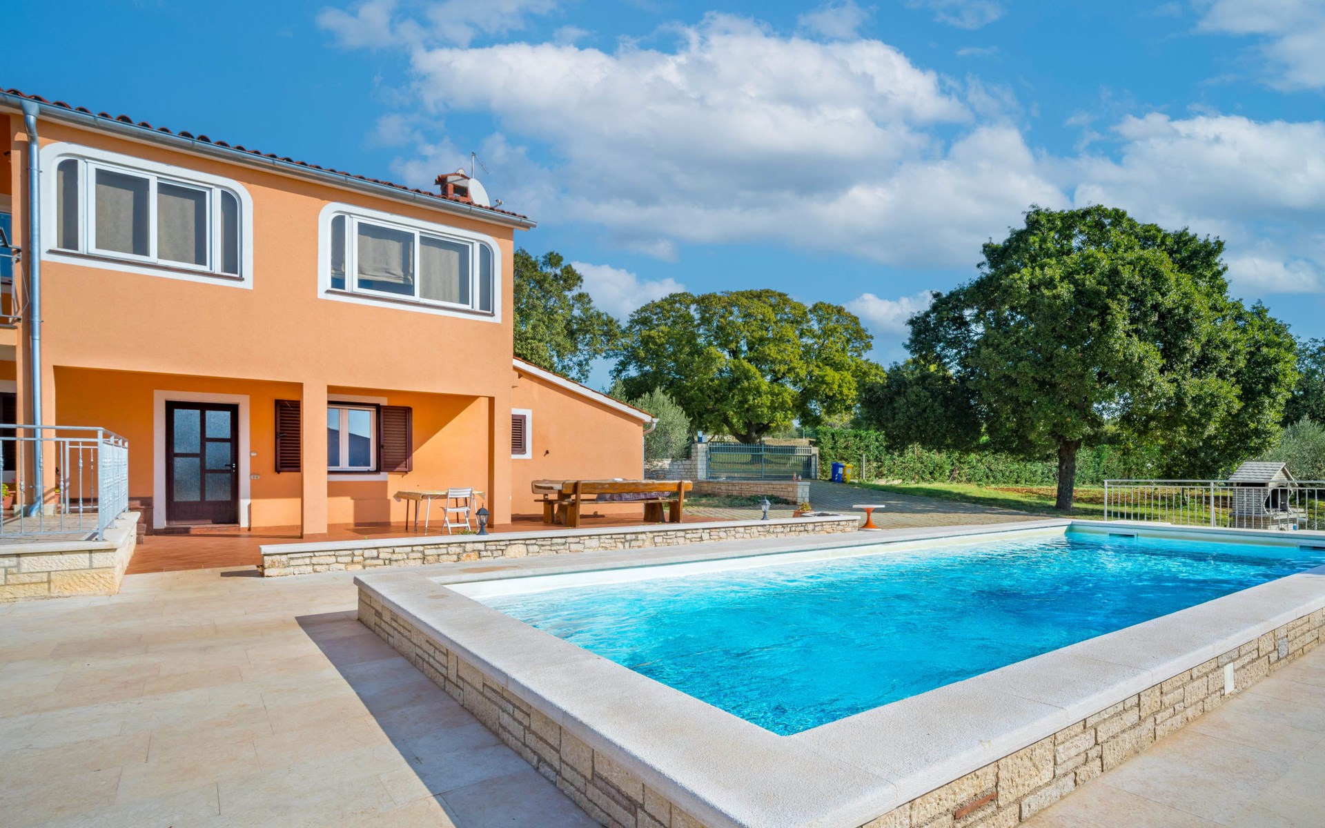 Doppelhaus "Ulika", auf 3 Stockwerken. Im Weiler Golaš, 5 km vom Zentrum von Bale, ruhige, sonnige Lage, 9 km vom Meer. Zur Alleinbenutzung: Grundstück 1'000 m2, Garten mit Pflanzen und Bäumen, Schwimmbad eckig (4 x 10 m, 140 cm tief, saisonale Verfügbarkeit: 01.Mai. - 01.Okt.). Aussendusche, Grill. Im Hause: Internetzugang, Waschmaschine. Parkplatz beim Haus auf dem Grundstück. Einkaufsgeschäft 5 km, Restaurant 2 km, Bushaltestelle 5.2 km, Kieselstrand 11 km, Park "Histria aromatica" 2 km, Strandbad 11 km. Jugendgruppen nur auf Anfrage. Bitte beachten: Der Besitzer wohnt auf dem gleichen Grundstück. Doppelhaushälfte besteht aus 3 Wohnungen vermietet als eine Einheit.