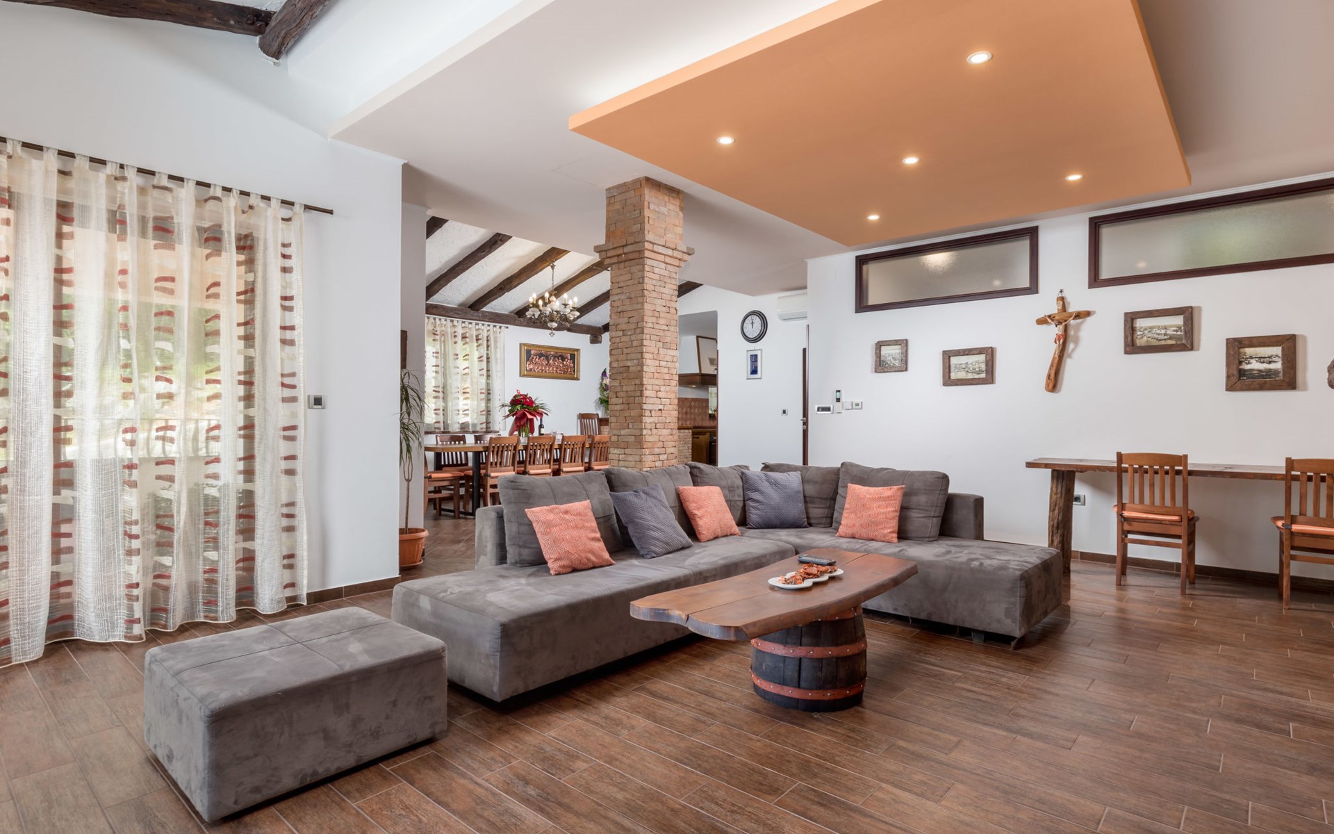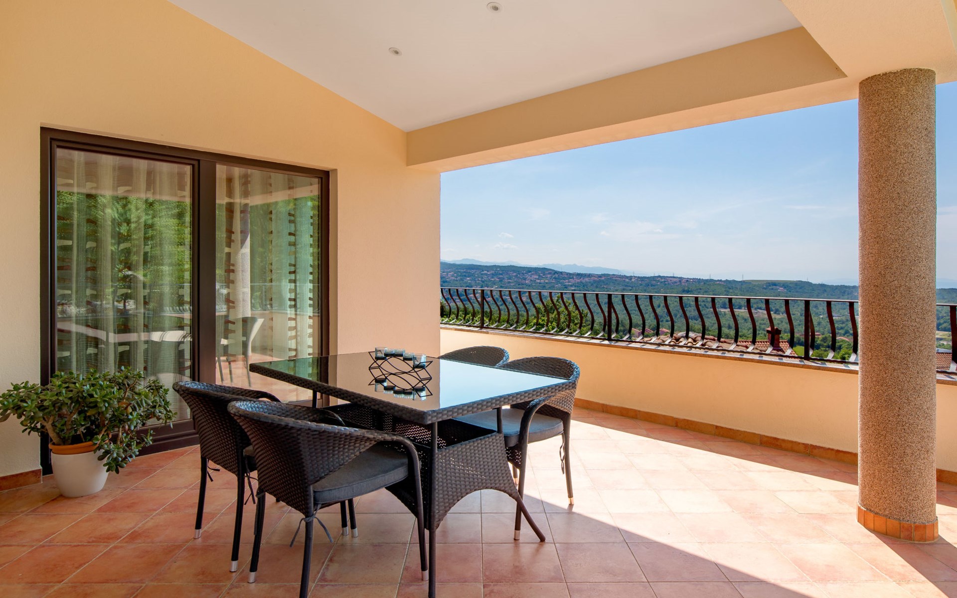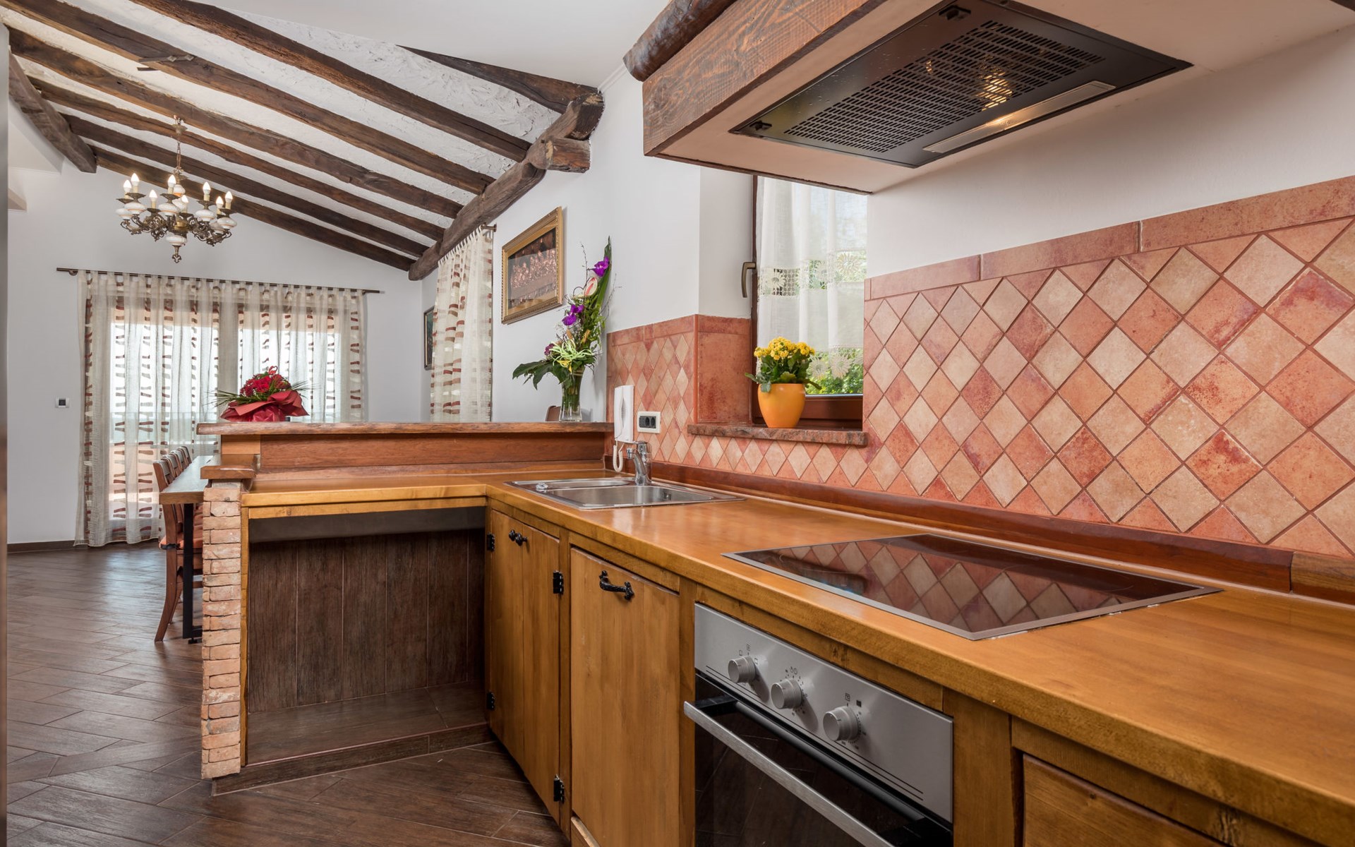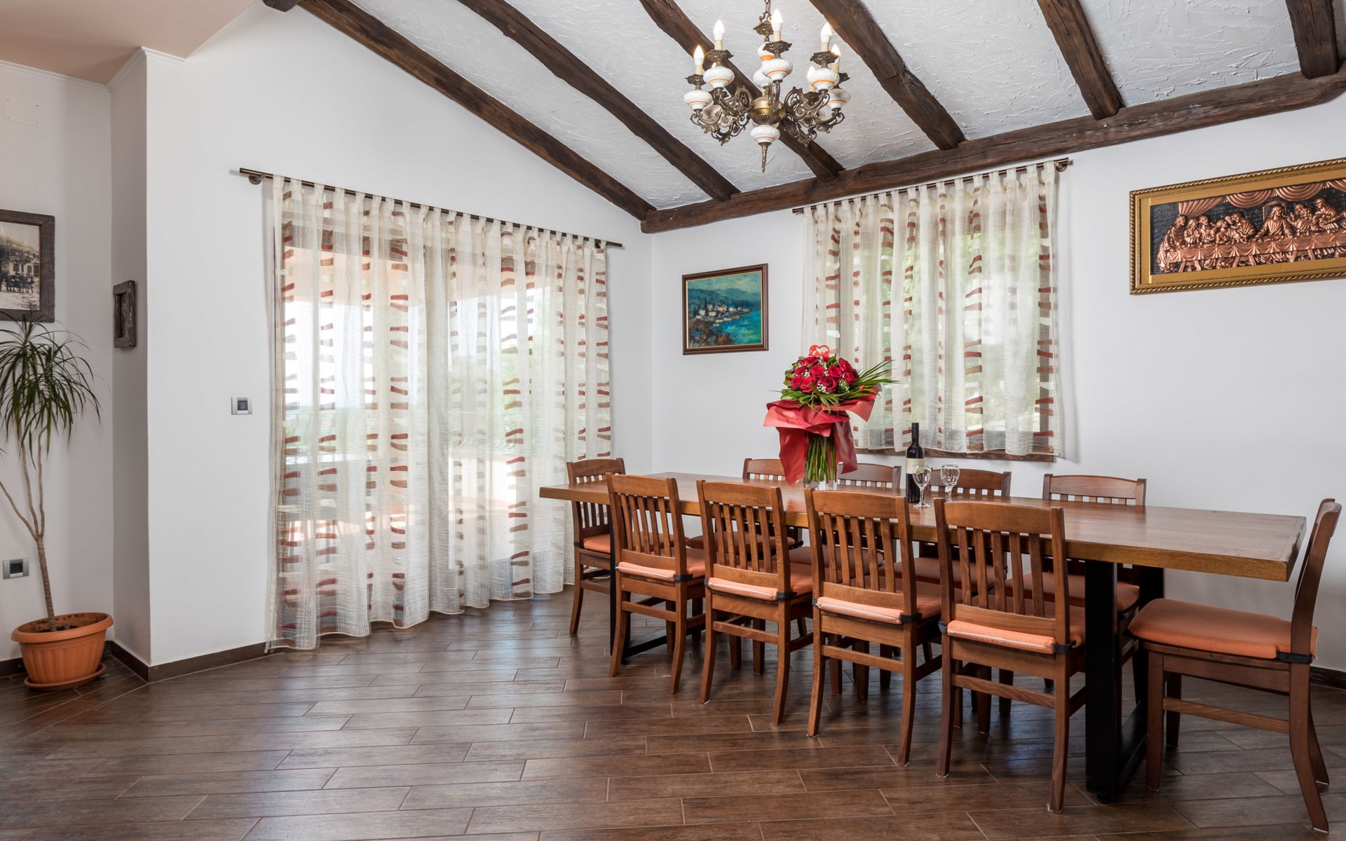 Einfamilienhaus "Villa Toni", auf 3 Stockwerken. 2 km vom Zentrum von Kastav, 7 km vom Zentrum von Opatija, 10 km vom Zentrum von Lovran, 7 km vom Meer. Zur Alleinbenutzung: Grundstück 2'000 m2 (eingezäunt) mit Bäumen, Schwimmbad beheizt (5 x 5 m, 29 m2, 150 cm tief, saisonale Verfügbarkeit: 20.Apr. - 12.Okt.) mit Innentreppe und Salzelektrolyse-Reinigungssystem. Aussendusche, Laube, Terrasse (100 m2), Gartenmöbel, Grill. Im Hause: Internetzugang, Billard, Waschmaschine. 20 m Fussweg bis zum Haus. Parkplatz (für 5 Autos) auf dem Grundstück, Einzelgarage. Einkaufsgeschäft 1 km, Bushaltestelle 600 m, Kieselstrand 7 km, Felsstrand 7 km. Jugendgruppen nur auf Anfrage. Schwimmbad beheizt (extra). Bitte teilen Sie uns mindestens 7 Tage vor Anreise mit, ob eine Poolheizung erforderlich ist.
