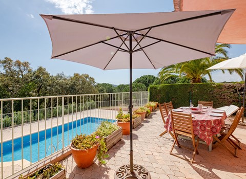 Residenz "Les Bastides de Guerrevieille". Ausserhalb des Ortes, 3.5 km vom Zentrum von Sainte Maxime, ruhige, erhöhte Lage auf einem Hügel, 1.6 km vom Meer, 1.8 km vom Strand. Zur Mitbenutzung: Schwimmbad (15 x 9 m, 100 - 200 cm tief, saisonale Verfügbarkeit: 01.Jun. - 30.Sep.). Einkaufsgeschäft 3 km, Supermarkt 3 km, Einkaufszentrum 3 km, Restaurant 2 km, Bäckerei 2.5 km, Bahnstation "Saint-Raphael TGV", Sandstrand "Plage de la Croisette" 2 km, Thermalbad "Thalasso Les Issambres" 8 km. Sporthafen 4 km, Golfplatz (18 Loch) 5 km, Tennis 2 km. Nahe gelegene Sehenswürdigkeiten: Aqualand waterpark 7 km, Azur park attractions 12 km, Saint-Tropez/Ramatuelle 14 km, Port-Grimaud 7 km, Gorges du Verdon 95 km, Navette / shuttle boat St-Tropez 15min 4 km. Wandergebiete: Massif des Maures 5 km, Massif de l'Esterel 38 km. Bitte beachten: Fahrzeug empfohlen. Die Residenz wird durch elektrische Tore geschlossen. Die Schlüsselübergabe findet bei der Agentur Interhome in Sainte-Maxime statt. Flugplatz 70 km vom Haus. Weitere Unterkünfte sind buchbar. Die Wohnungen sind über Treppen und Fusswege erreichbar.
