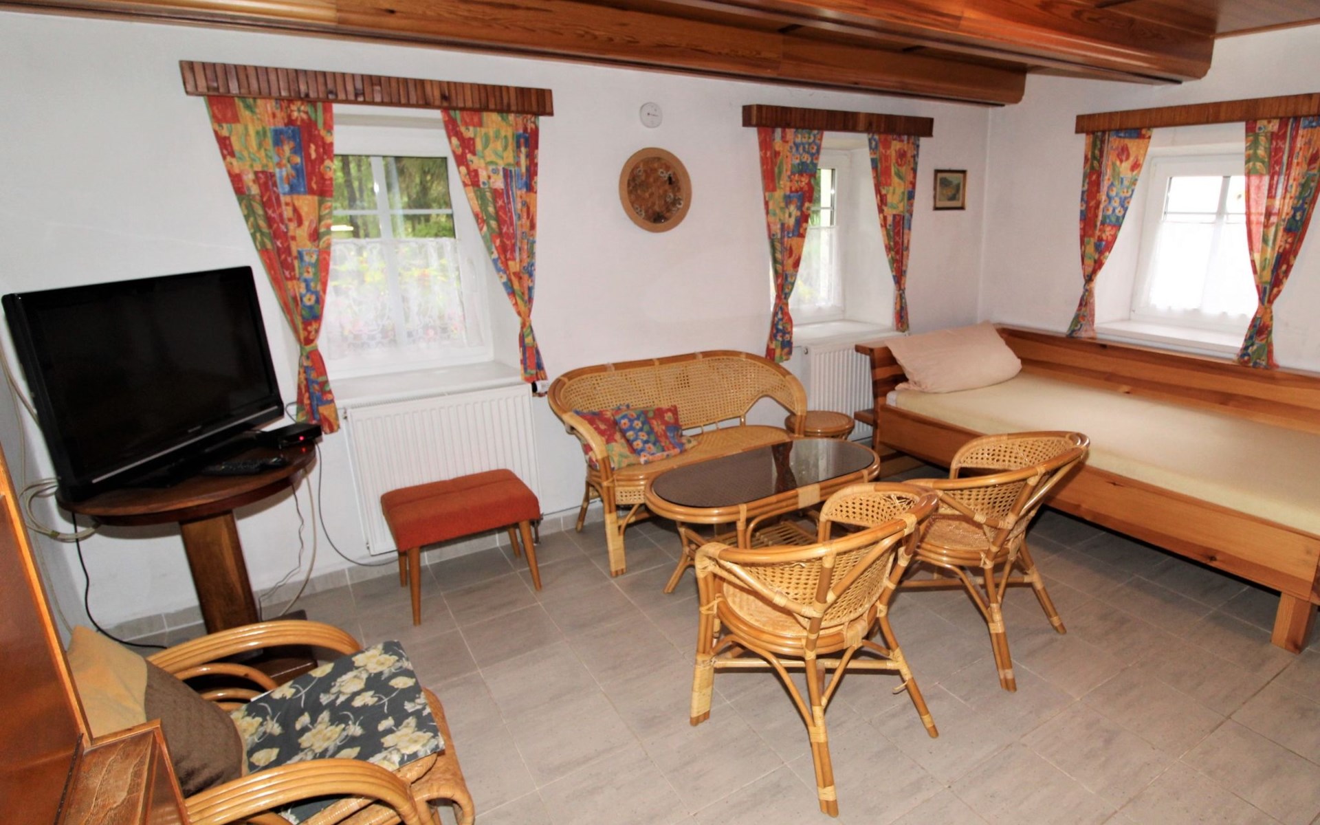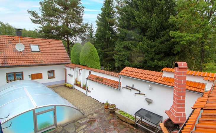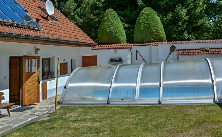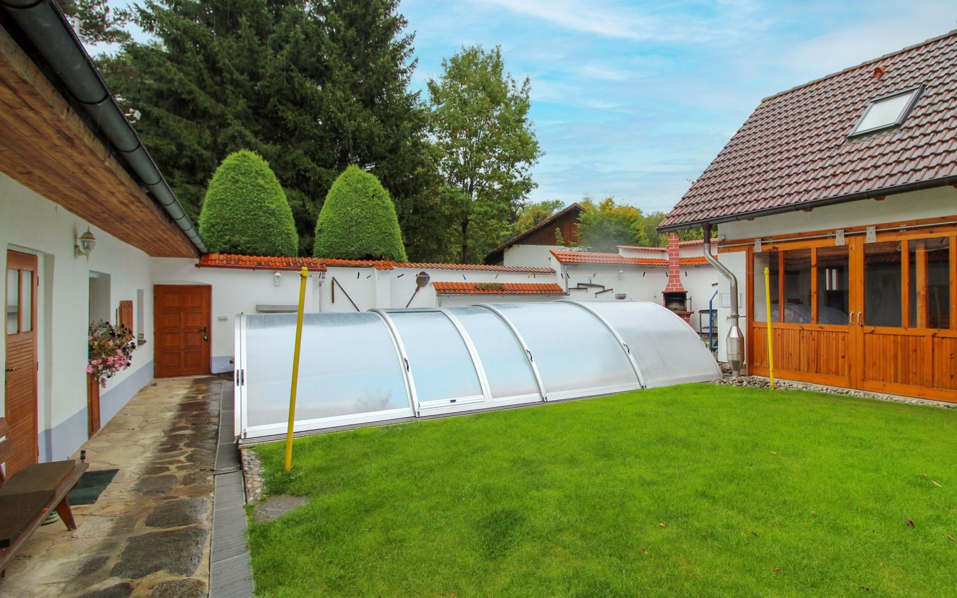 Polžov/Mokrý Lom 10 km von Trhové Sviny: Landsitz. 5 km vom See. Zur Alleinbenutzung: Grundstück 900 m2 (eingezäunt) mit Rasen 1'000 m2, Schwimmbad (4 x 7 m, 150 cm tief, saisonale Verfügbarkeit: 01.Mai. - 30.Sep.). Tennis, Tischtennis, Basketball, Terrasse, Gartenmöbel, Grillhaus. Im Hause: Einstellraum für Fahrräder, Waschmaschine. Zur Verfügung: Fahrräder (3). Parkplatz (für 2 Autos) auf dem Grundstück, Einzelgarage. Einkaufsgeschäft 5 km, Supermarkt 9 km, Restaurant 4 km, Bushaltestelle "Mokrý Lom" 1.9 km, Freibad 20 km, Hallenbad 20 km, Badesee "Římov" 5 km. Golfplatz (18 Loch) 25 km, Wanderwege ab Haus, Radweg 20 m. Nahe gelegene Sehenswürdigkeiten: Zřícenina hradu Pořešín, Buškův hamr 15 km, České Budějovice 20 km, Středověká tvrz Žumberk, Český Krumlov 22 km, Třeboň 34 km, Lipenská přehrada 40 km, Linz (AT) 85 km.