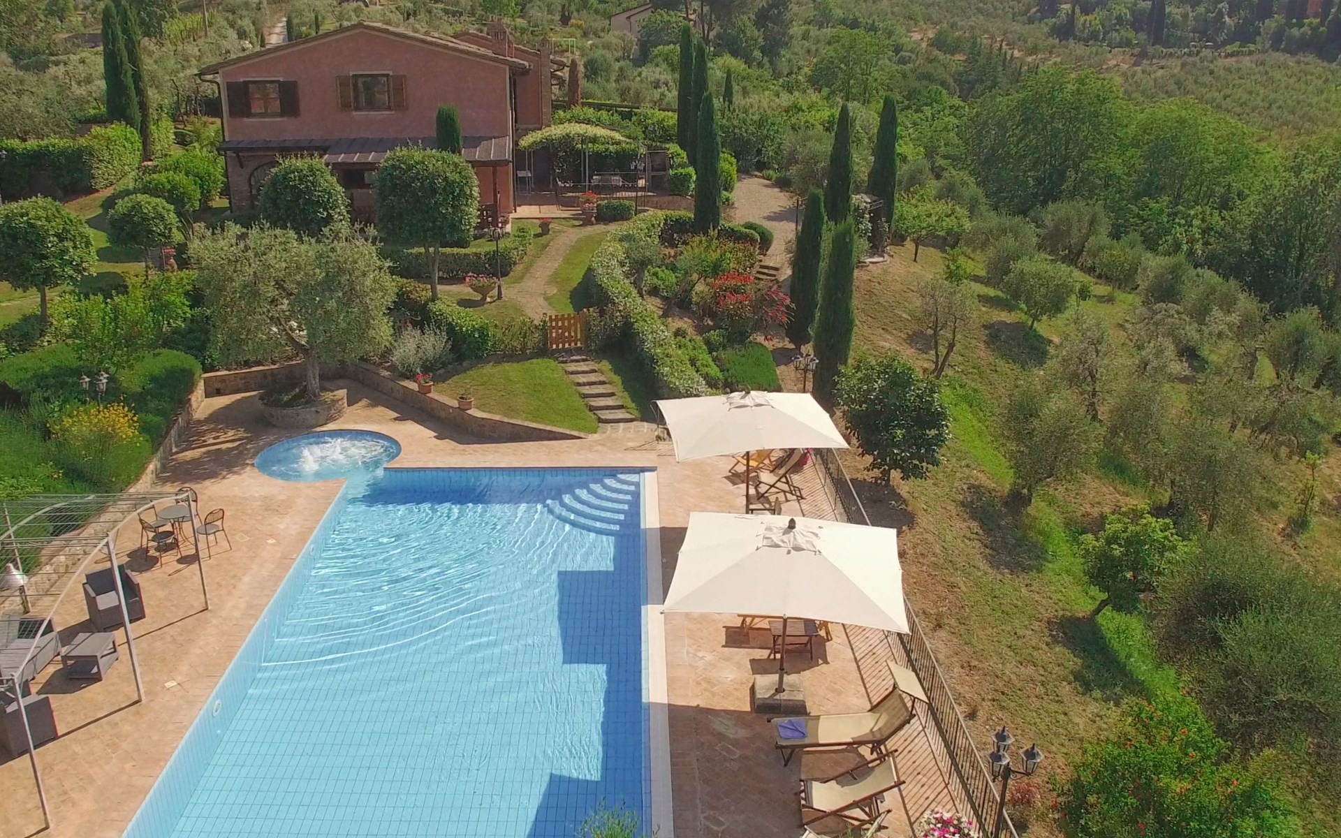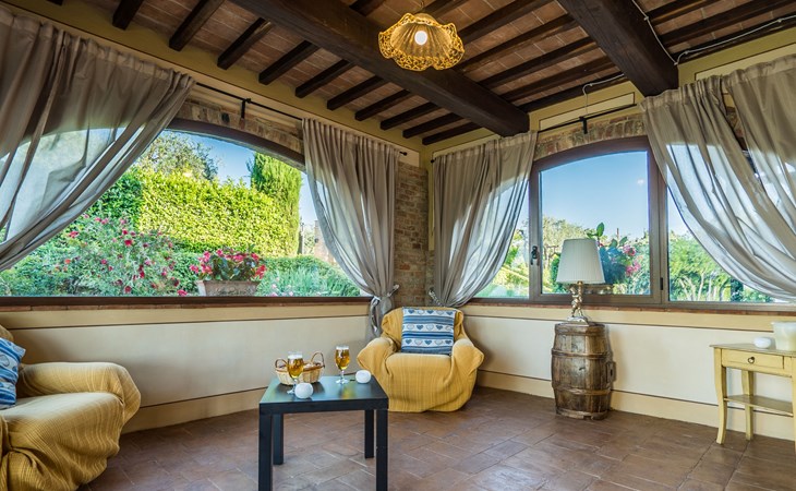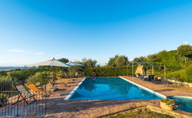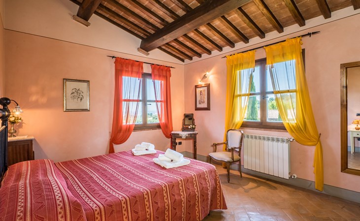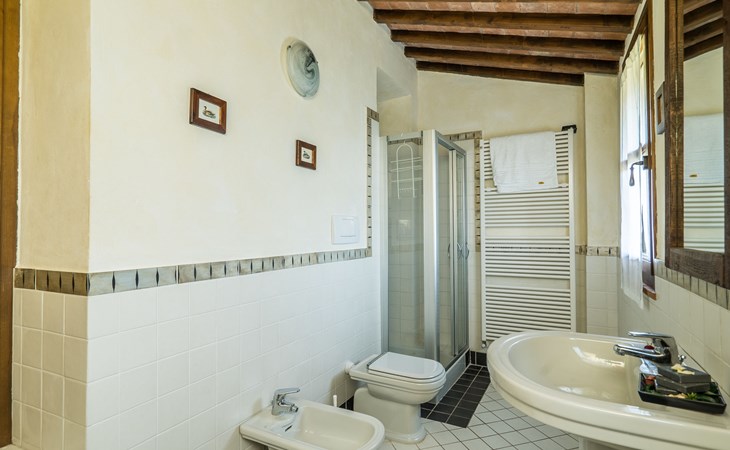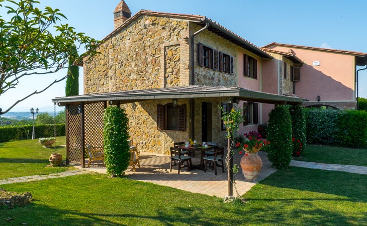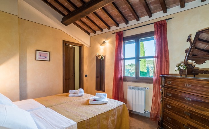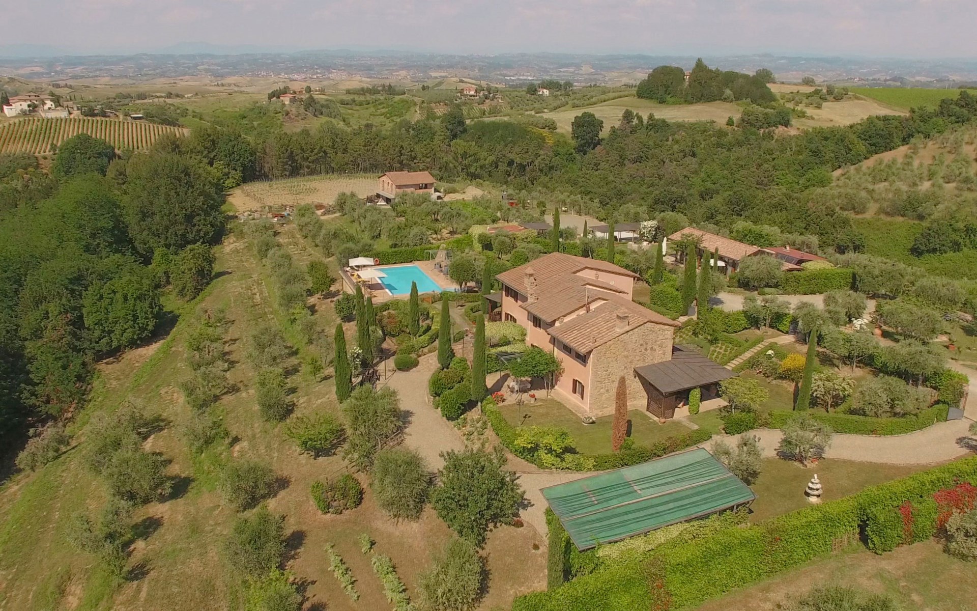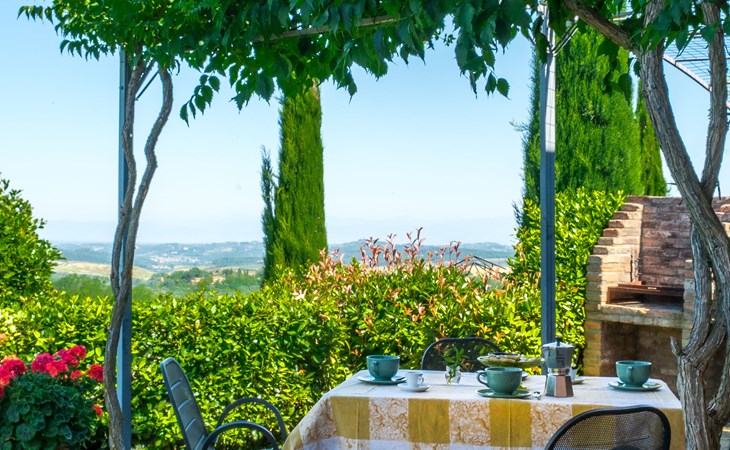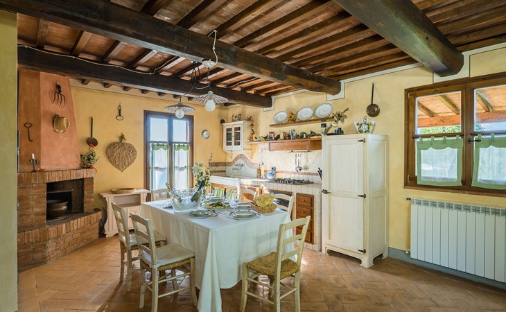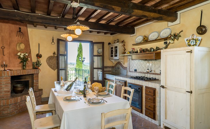Das von uns angebotene Bauernhaus liegt im Herzen der Toskana. Die Olivenbäume, die Weinreben und der Obstgarten bilden eine wunderbare Kulisse für das sorgfältig restaurierte Bauernhaus, das nach den Merkmalen alter toskanischer Bauernhäuser mit originalen antiken Möbeln eingerichtet ist. Das Gebäude, das als einzelnes Gebäude vermietet wird, besteht aus drei Wohnungen, von denen zwei miteinander verbunden sind und eine freistehende Wohnung von etwa 60 Quadratmetern in einem kleinen Nebengebäude liegt. Vor dem Hauptgebäude befindet sich ein bezaubernder „Partyraum“, ganz in Holz gehalten und von großen Fenstern umgeben, ausgestattet mit Tisch und Stühlen, Sesseln, Holzofen, Grill und Kochplatten. Der Partyraum kann auf Anfrage gegen eine zusätzliche Gebühr gebucht werden, die direkt vor Ort zu entrichten ist. Freistehender Landwirtschaftlicher Betrieb "La Veduta". Mietobjekt bestehend aus Haupt- und Nebengebäude, 1.4 km vom Zentrum von Montaione, 21 km vom Zentrum von San Gimignano, 59 km vom Zentrum von Firenze, alleinstehende, ruhige, sonnige Lage, im Grünen. Zur Alleinbenutzung: Garten 20'000 m2 (nicht eingezäunt), Schwimmbad (6 x 12 m, 120 - 160 cm tief, saisonale Verfügbarkeit: 01.Mai. - 30.Sep.). Aussendusche, Sprudelbad, Tischtennis, Gartenmöbel, Grill, Poolpflege durch den Besitzer/Gärtner. Im Hause: Zentralheizung, Heizung vor Ort zu zahlen, Heizung nur verfügbar von 01.Nov. - 04.Apr.. Parkplatz (für 4 Autos) auf dem Grundstück. Einkaufsgeschäft 1.5 km, Supermarkt 1.5 km, Restaurant 1.5 km, Bushaltestelle 2 km, Sandstrand "Cecina" 67 km, Thermalbad "Casciana Terme" 38 km. Golfplatz (18 Loch) 16 km. Nahe gelegene Sehenswürdigkeiten: Certaldo 17 km, San Miniato 23 km, Volterra 29 km, Lajatico, Colle di Val d'Elsa 35 km, San Casciano in Val di Pesa 40 km, Siena 60 km. Bitte beachten: geeignet für Familien.