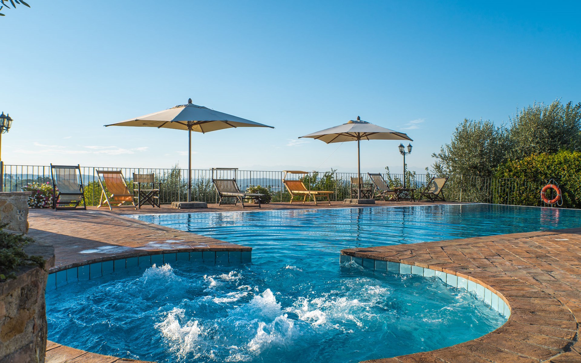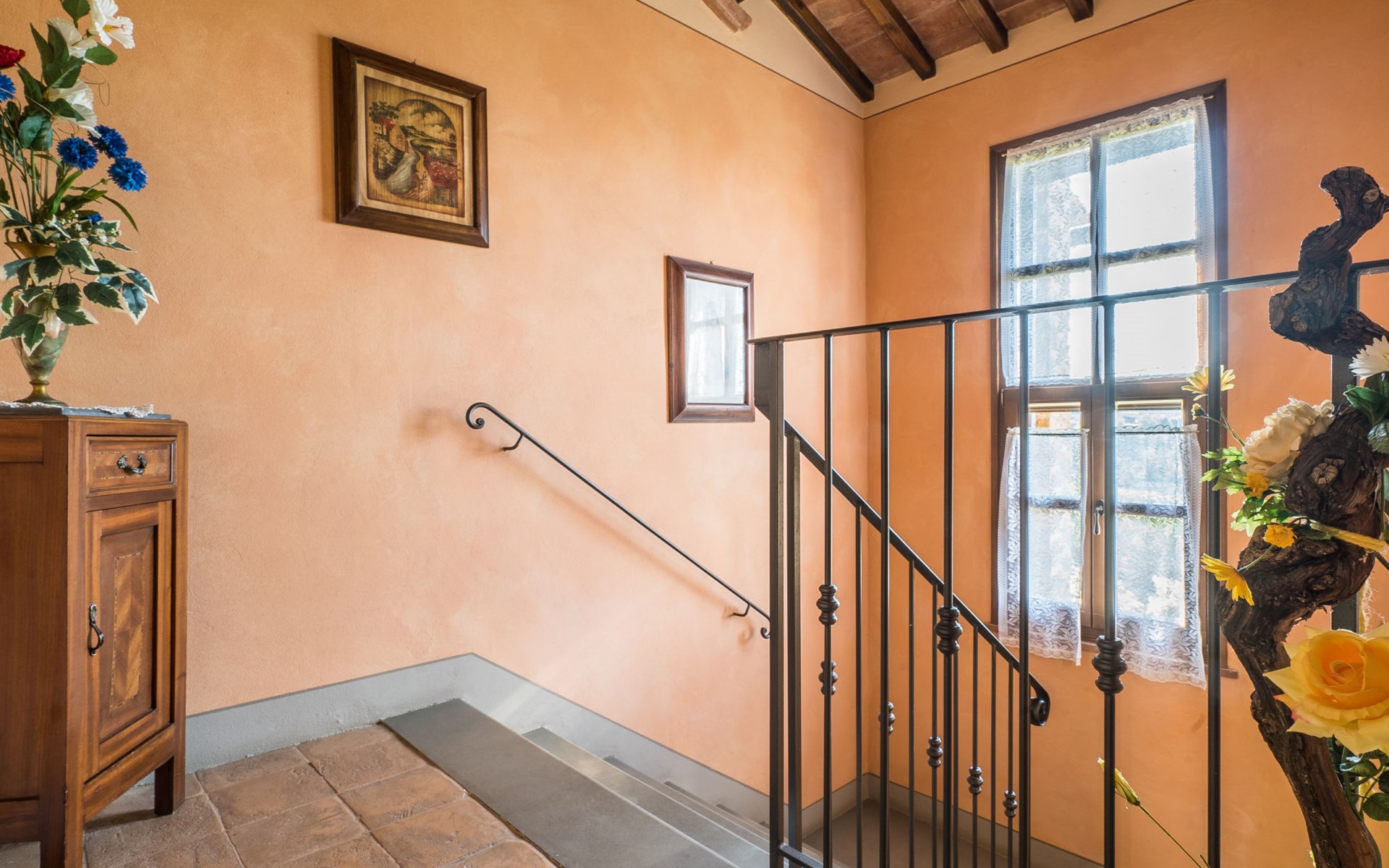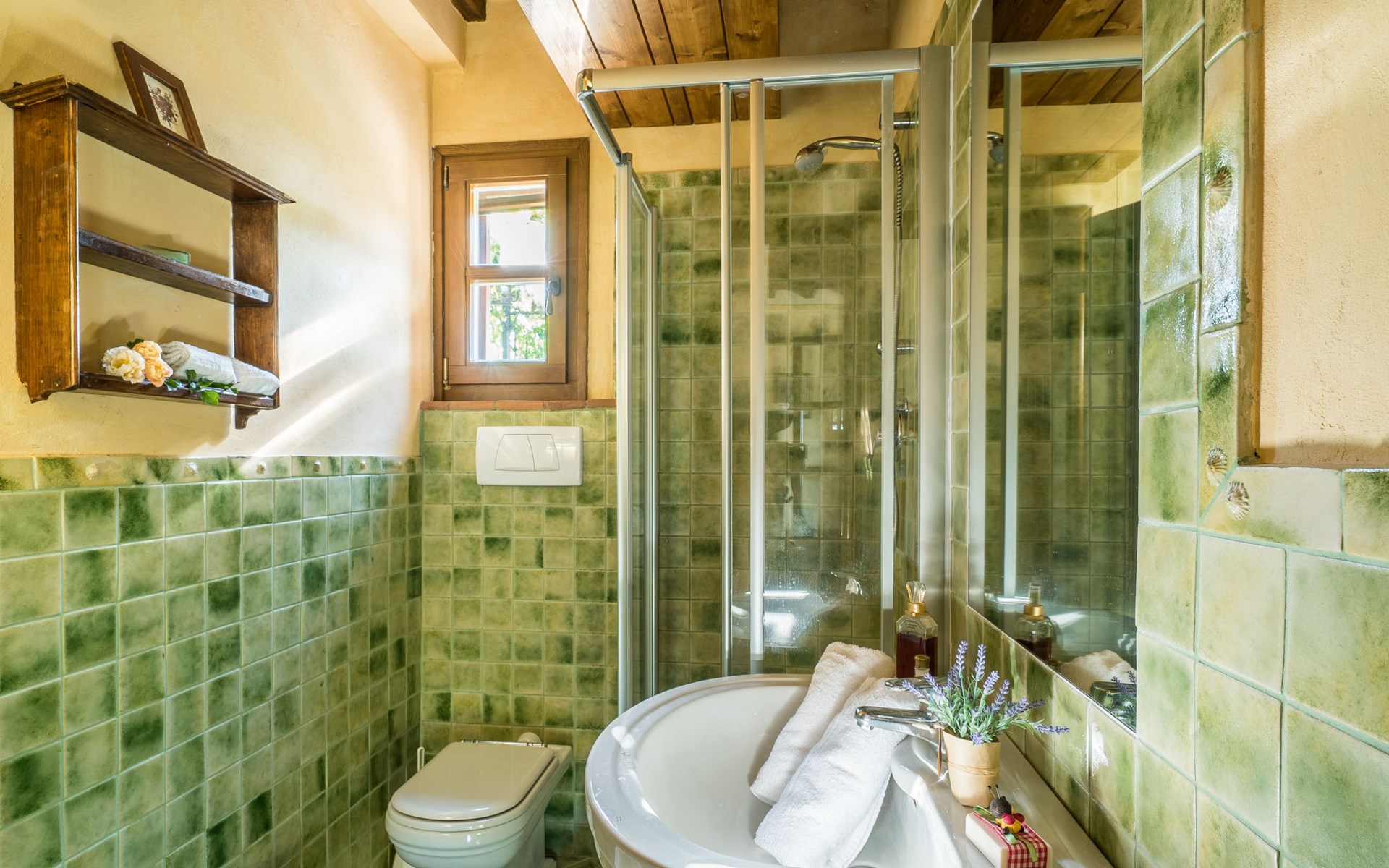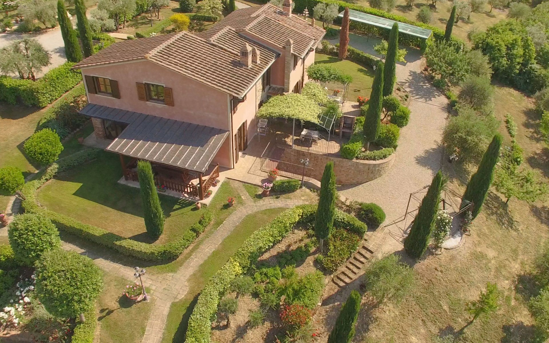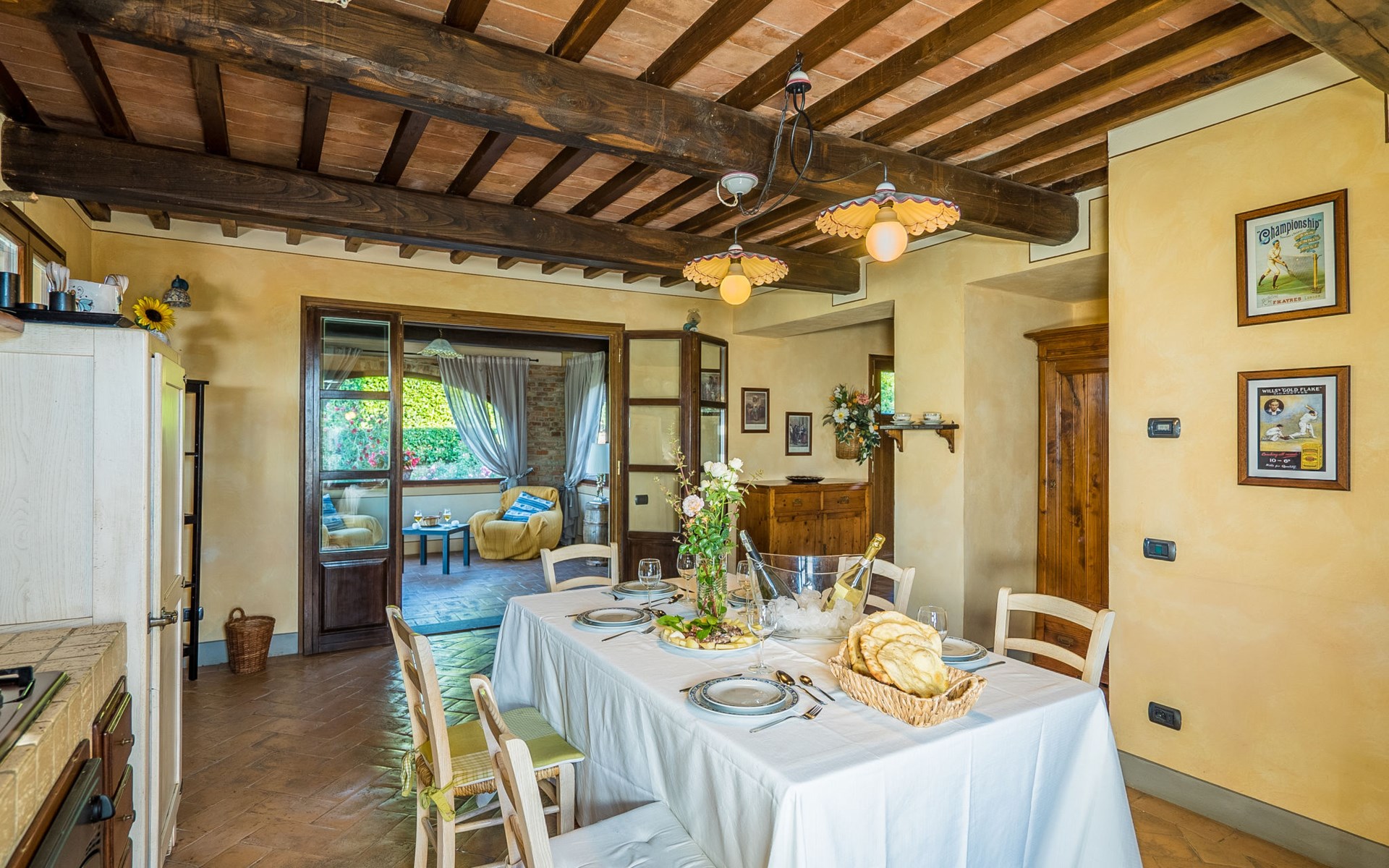 Das von uns angebotene Bauernhaus liegt im Herzen der Toskana. Die Olivenbäume, die Weinreben und der Obstgarten bilden eine wunderbare Kulisse für das sorgfältig restaurierte Bauernhaus, das nach den Merkmalen alter toskanischer Bauernhäuser mit originalen antiken Möbeln eingerichtet ist. Das Gebäude, das als einzelnes Gebäude vermietet wird, besteht aus drei Wohnungen, von denen zwei miteinander verbunden sind und eine freistehende Wohnung von etwa 60 Quadratmetern in einem kleinen Nebengebäude liegt. Vor dem Hauptgebäude befindet sich ein bezaubernder „Partyraum“, ganz in Holz gehalten und von großen Fenstern umgeben, ausgestattet mit Tisch und Stühlen, Sesseln, Holzofen, Grill und Kochplatten. Der Partyraum kann auf Anfrage gegen eine zusätzliche Gebühr gebucht werden, die direkt vor Ort zu entrichten ist. Freistehender Landwirtschaftlicher Betrieb "La Veduta". Mietobjekt bestehend aus Haupt- und Nebengebäude, 1.4 km vom Zentrum von Montaione, 21 km vom Zentrum von San Gimignano, 59 km vom Zentrum von Firenze, alleinstehende, ruhige, sonnige Lage, im Grünen. Zur Alleinbenutzung: Garten 20'000 m2 (nicht eingezäunt), Schwimmbad (6 x 12 m, 120 - 160 cm tief, saisonale Verfügbarkeit: 01.Mai. - 30.Sep.). Aussendusche, Sprudelbad, Tischtennis, Gartenmöbel, Grill, Poolpflege durch den Besitzer/Gärtner. Im Hause: Zentralheizung, Heizung vor Ort zu zahlen, Heizung nur verfügbar von 01.Nov. - 04.Apr.. Parkplatz (für 4 Autos) auf dem Grundstück. Einkaufsgeschäft 1.5 km, Supermarkt 1.5 km, Restaurant 1.5 km, Bushaltestelle 2 km, Sandstrand "Cecina" 67 km, Thermalbad "Casciana Terme" 38 km. Golfplatz (18 Loch) 16 km. Nahe gelegene Sehenswürdigkeiten: Certaldo 17 km, San Miniato 23 km, Volterra 29 km, Lajatico, Colle di Val d'Elsa 35 km, San Casciano in Val di Pesa 40 km, Siena 60 km. Bitte beachten: geeignet für Familien.