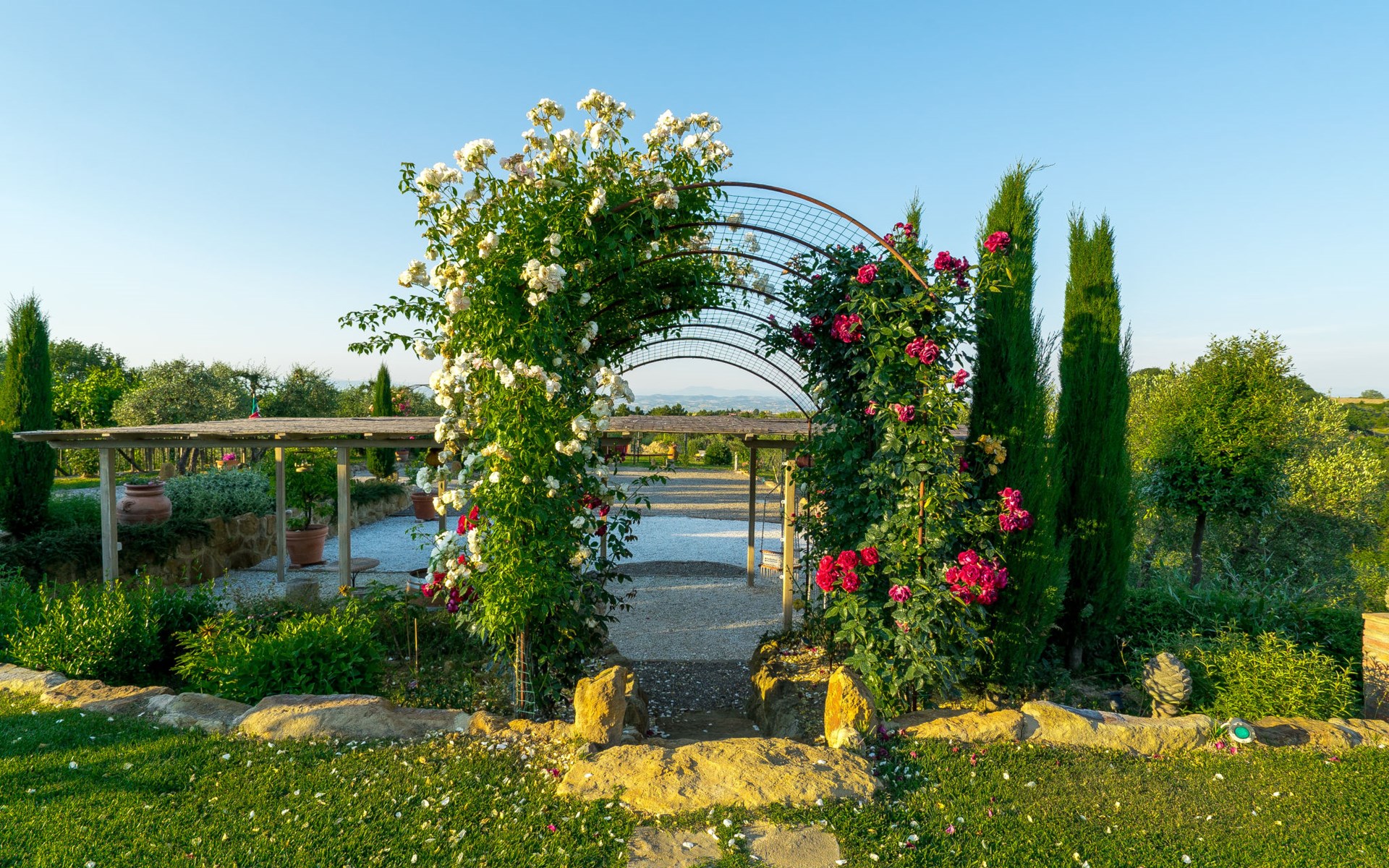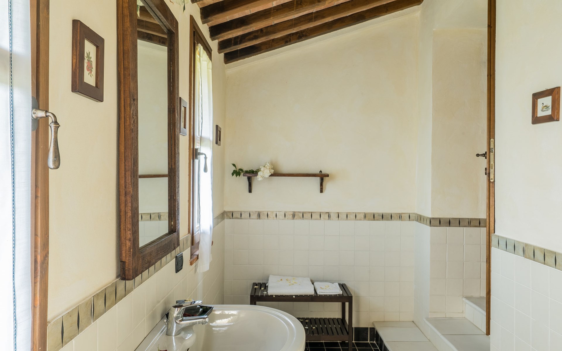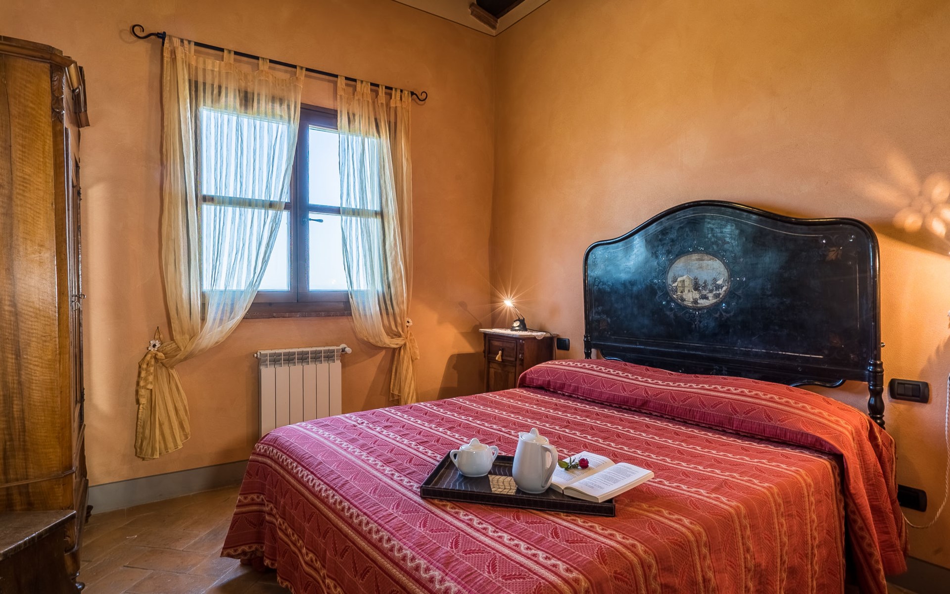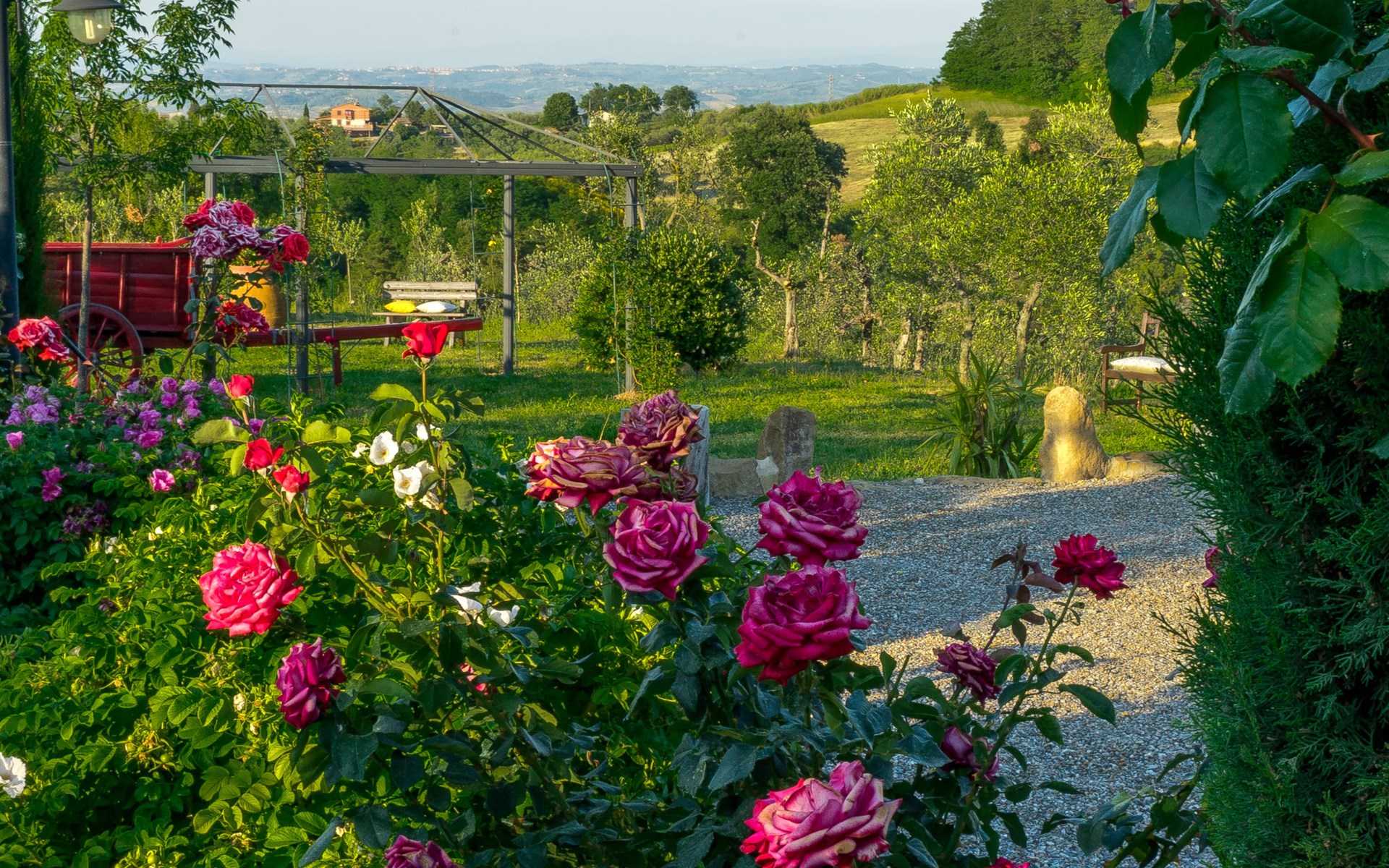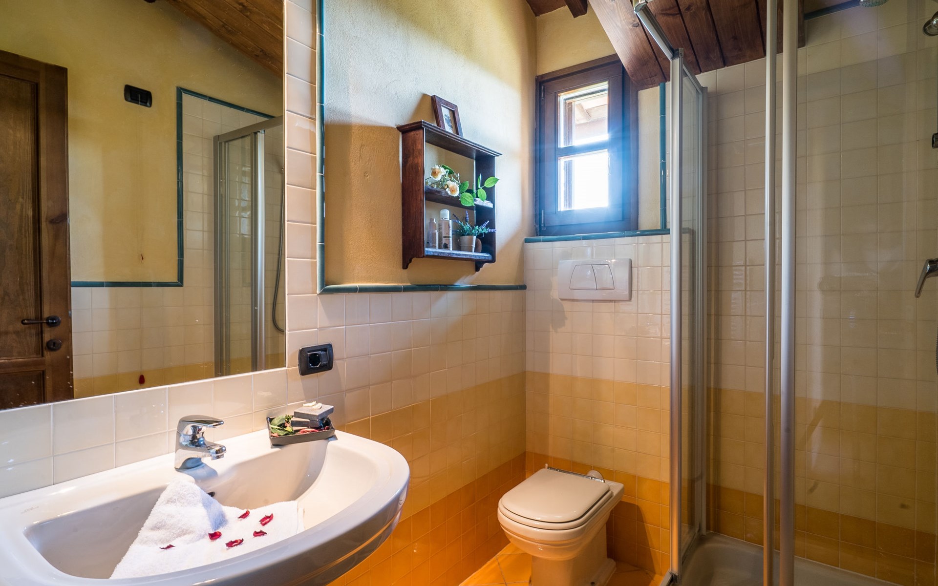 Das von uns angebotene Bauernhaus liegt im Herzen der Toskana. Die Olivenbäume, die Weinreben und der Obstgarten bilden eine wunderbare Kulisse für das sorgfältig restaurierte Bauernhaus, das nach den Merkmalen alter toskanischer Bauernhäuser mit originalen antiken Möbeln eingerichtet ist. Das Gebäude, das als einzelnes Gebäude vermietet wird, besteht aus drei Wohnungen, von denen zwei miteinander verbunden sind und eine freistehende Wohnung von etwa 60 Quadratmetern in einem kleinen Nebengebäude liegt. Vor dem Hauptgebäude befindet sich ein bezaubernder „Partyraum“, ganz in Holz gehalten und von großen Fenstern umgeben, ausgestattet mit Tisch und Stühlen, Sesseln, Holzofen, Grill und Kochplatten. Der Partyraum kann auf Anfrage gegen eine zusätzliche Gebühr gebucht werden, die direkt vor Ort zu entrichten ist. Freistehender Landwirtschaftlicher Betrieb "La Veduta". Mietobjekt bestehend aus Haupt- und Nebengebäude, 1.4 km vom Zentrum von Montaione, 21 km vom Zentrum von San Gimignano, 59 km vom Zentrum von Firenze, alleinstehende, ruhige, sonnige Lage, im Grünen. Zur Alleinbenutzung: Garten 20'000 m2 (nicht eingezäunt), Schwimmbad (6 x 12 m, 120 - 160 cm tief, saisonale Verfügbarkeit: 01.Mai. - 30.Sep.). Aussendusche, Sprudelbad, Tischtennis, Gartenmöbel, Grill, Poolpflege durch den Besitzer/Gärtner. Im Hause: Zentralheizung, Heizung vor Ort zu zahlen, Heizung nur verfügbar von 01.Nov. - 04.Apr.. Parkplatz (für 4 Autos) auf dem Grundstück. Einkaufsgeschäft 1.5 km, Supermarkt 1.5 km, Restaurant 1.5 km, Bushaltestelle 2 km, Sandstrand "Cecina" 67 km, Thermalbad "Casciana Terme" 38 km. Golfplatz (18 Loch) 16 km. Nahe gelegene Sehenswürdigkeiten: Certaldo 17 km, San Miniato 23 km, Volterra 29 km, Lajatico, Colle di Val d'Elsa 35 km, San Casciano in Val di Pesa 40 km, Siena 60 km. Bitte beachten: geeignet für Familien.