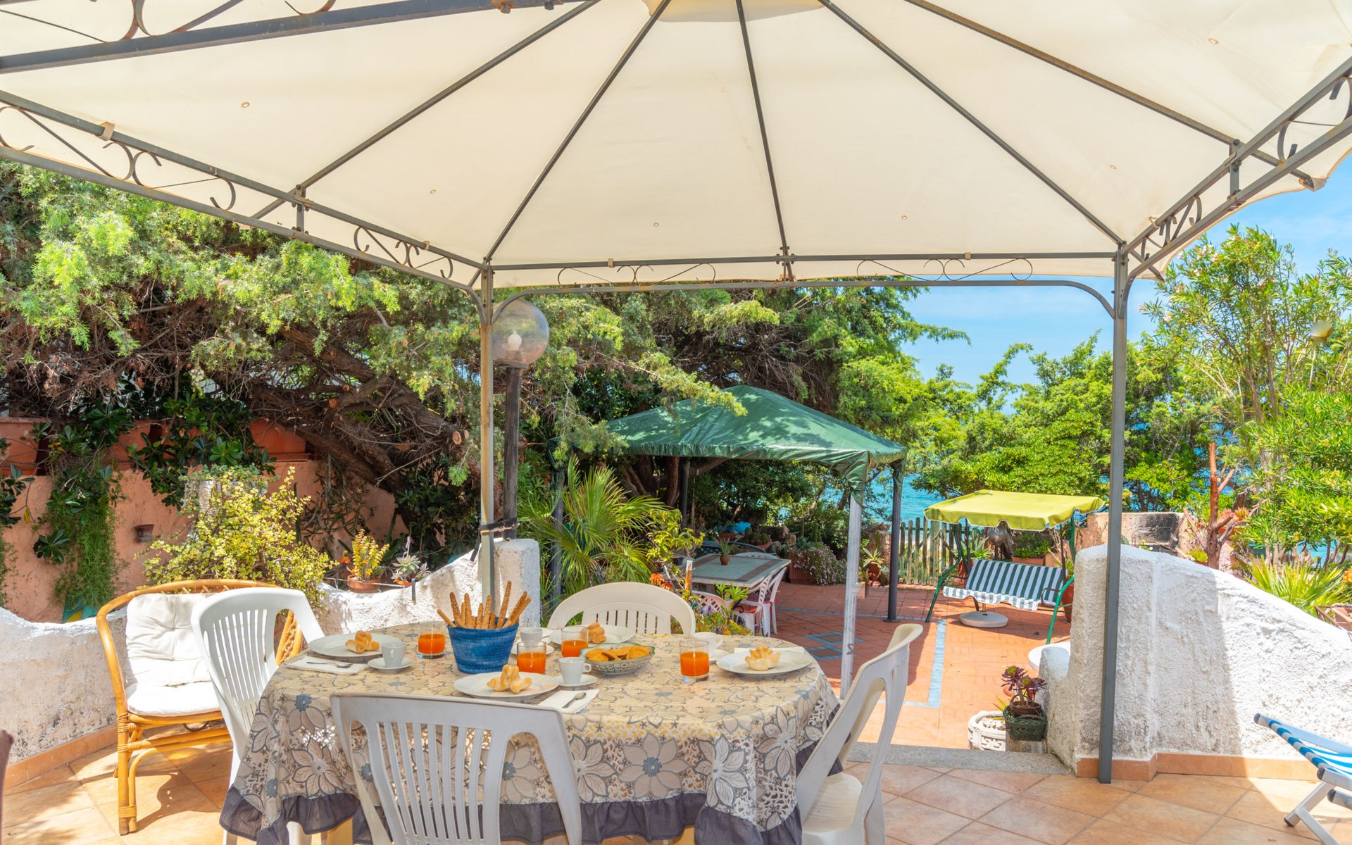 La Marinedda 1 km von Isola Rossa: Mehrfamilienhaus "Gerania". 5 Wohnungen im Ferienhaus. Sonnige Lage, 10 m vom Meer, direkter Zugang zum Strand. Zur Alleinbenutzung: Aussendusche, Grill. Zufahrt bis 10 m zum Haus. Treppenweg (3 Stufen) bis zum Haus. Öffentliche Parkplätze auf der Strasse. Supermarkt 1 km, Restaurant, Bar 5 m, Bushaltestelle 1 km, Sandstrand 2 m. Jacht-Hafen 1 km, Tennis 1 km. Bitte beachten: Fahrzeug empfohlen. Ein Teil des Hauses ist geschlossen und nicht bewohnt. Ferienwohnung Ref. IT7033.700 befindet sich auf dem gleichen Grundstück.