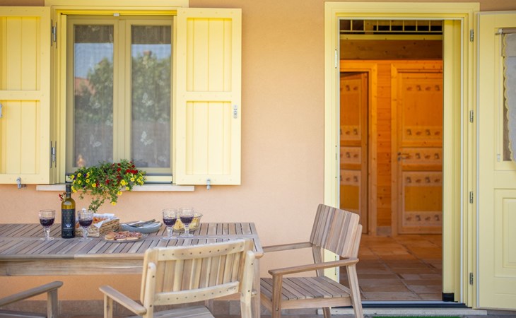 Das Ferienhaus ist einstöckig und ebenerdig. Es bietet Platz für bis zu 5 Personen und verfügt über jeglichen Komfort: ein Schlafzimmer mit Doppelbett, ein blaues Bad, eine Küche, einen kleinen Dachboden und eine gemütliche Veranda, auf der man je nach Jahreszeit auch im Freien essen kann.