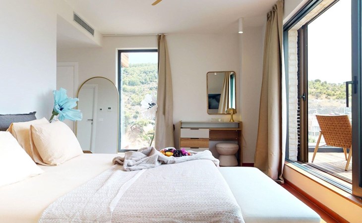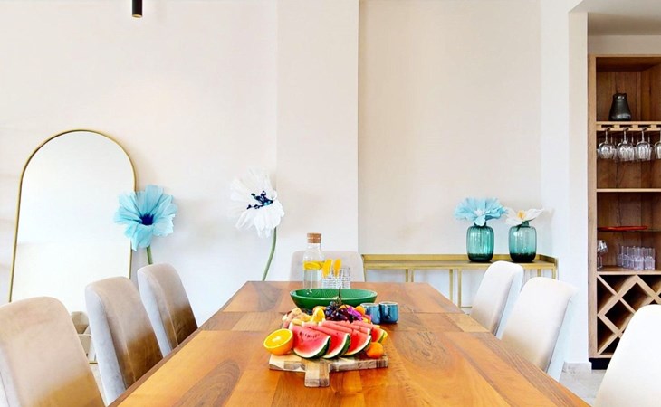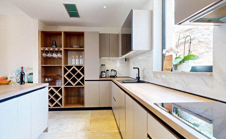 Im Inneren der Villa Figs erwartet die Gäste eine Reihe von Annehmlichkeiten, die auf ihren Komfort ausgerichtet sind. Jedes der vier Schlafzimmer verfügt über ein eigenes Bad, so dass die Privatsphäre und der Komfort aller Bewohner gewährleistet sind. Das Haus verfügt über eine Fußbodenheizung und in einigen Bereichen über eine Klimaanlage, die unabhängig von der Jahreszeit für ein angenehmes Klima sorgt. Kulinarisch Interessierte werden die voll ausgestattete Küche mit Spülmaschine, Kaffeemaschine und Wasserkocher zu schätzen wissen, die köstliche Mahlzeiten und gemütliche Zusammenkünfte verspricht.