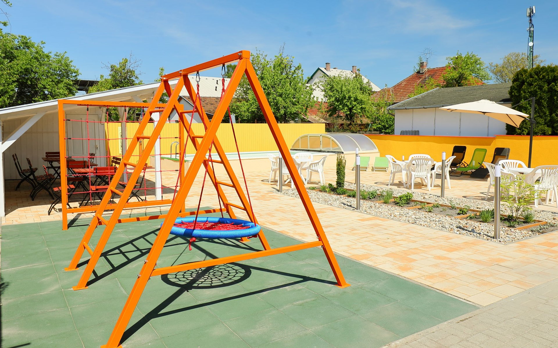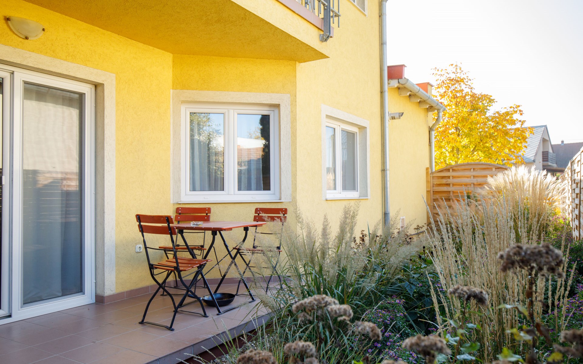 Balatonmáriafürdö 15 km von Keszthely: Schönes Appartementhaus, Baujahr 2006. Zentrale, sonnige Lage, 500 m vom See, 650 m vom Strand. Zur Mitbenutzung: Grundstück (eingezäunt), Garten, Liegewiese, Schwimmbad (6 x 3 m, 120 cm tief, saisonale Verfügbarkeit: 15.Mai. - 30.Sep.). Grill, Kinderspielplatz. Im Hause: Wireless LAN, Klimaanlage, Alarmanlage. Parkplatz beim Haus. Einkaufsgeschäft 150 m, Restaurant 100 m. Bitte beachten: Eisenbahnlinie in der Nähe.