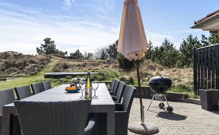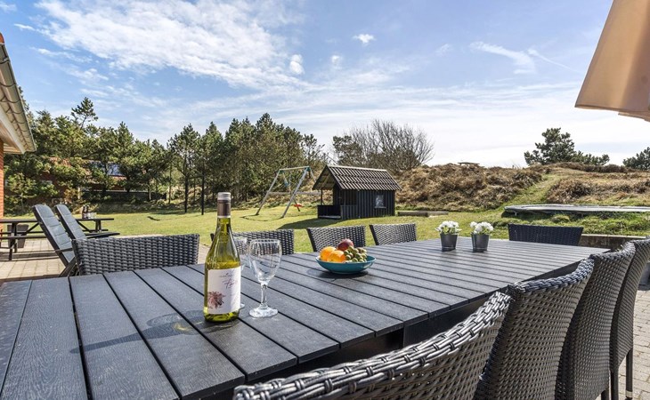 Einfamilienhaus, Baujahr 1991. 800 m vom Meer. Zur Mitbenutzung: Garten. Zur Alleinbenutzung: naturbelassenes Grundstück 2'380 m2, Garten (eingezäunt), Hallenbad (3 x 6 m, 18 m2, 120 - 120 cm tief). Terrasse (48 m2), Grill, Kinderspielplatz (Schaukel). Im Hause: Sauna, Trampolin, Waschmaschine, Wäschetrockner. Parkplatz beim Haus. Lebensmittelgeschäft 2 km. Der Besitzer akzeptiert keine Jugendgruppen.