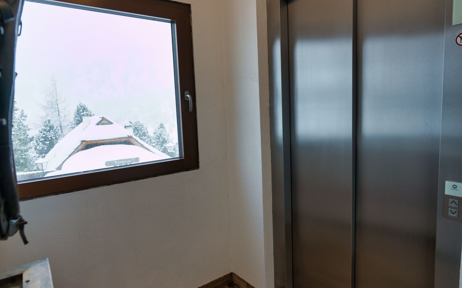 Zwischen den beiden Schlafzimmern befindet sich eine weitere Wohnungstüre, von wo man ebenfalls ins Stiegenhaus und Lift kommt. Somit kann man das Gepäck über den Lift in die Wohnung bringen und muss nicht über die Wendeltreppe gehen.