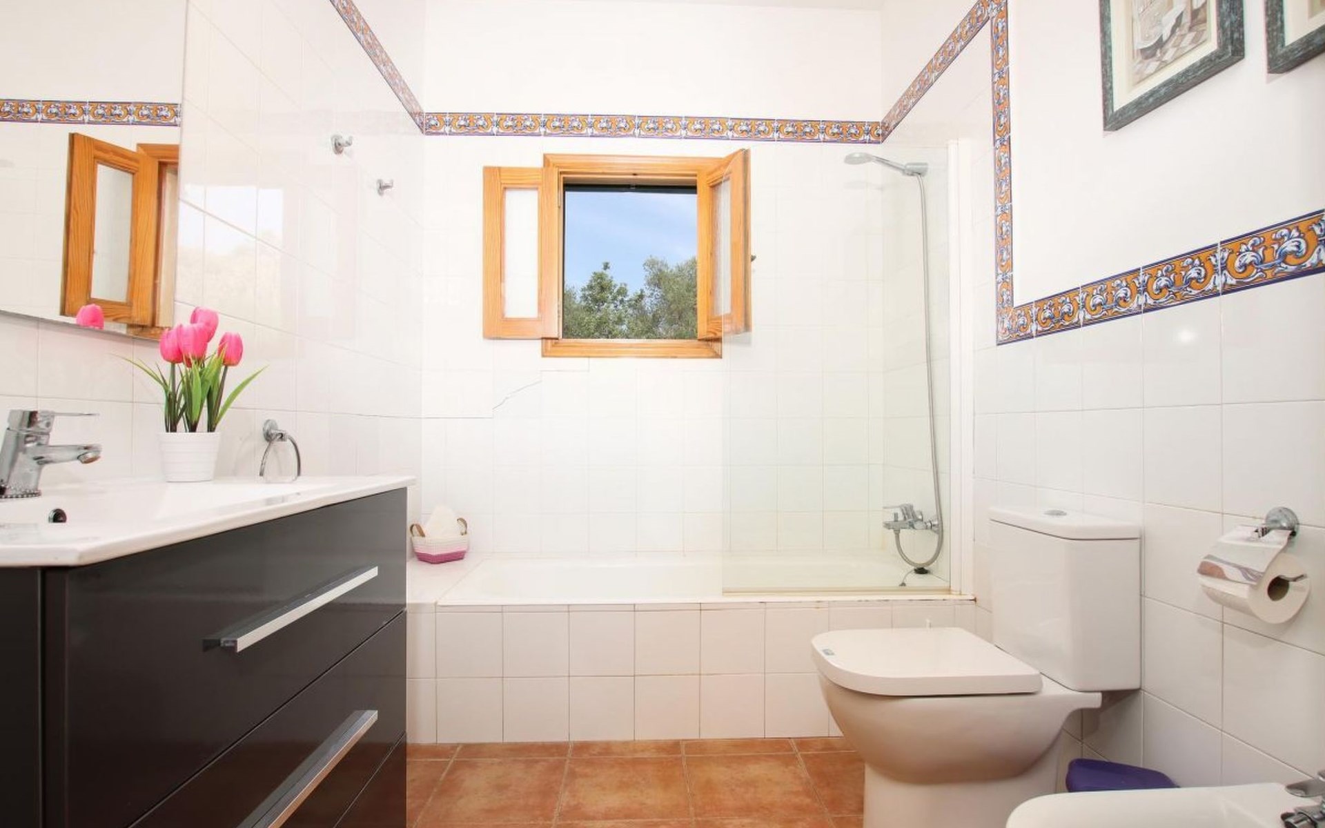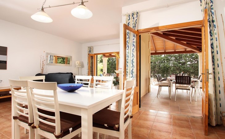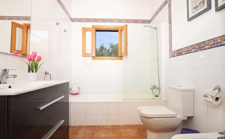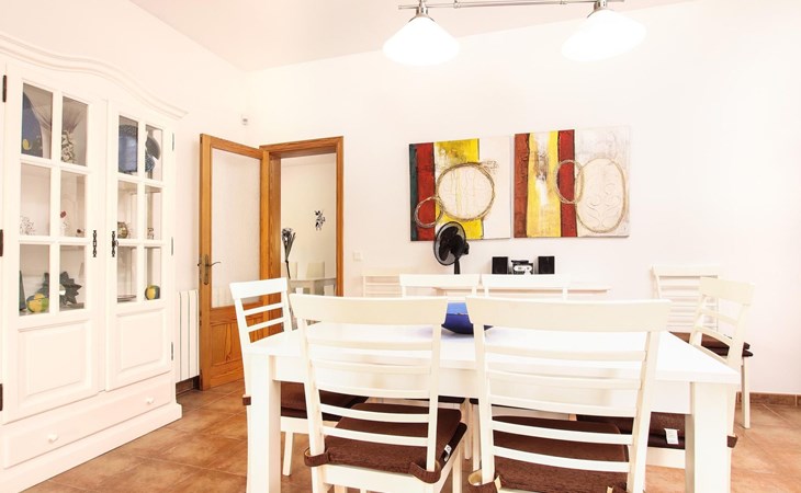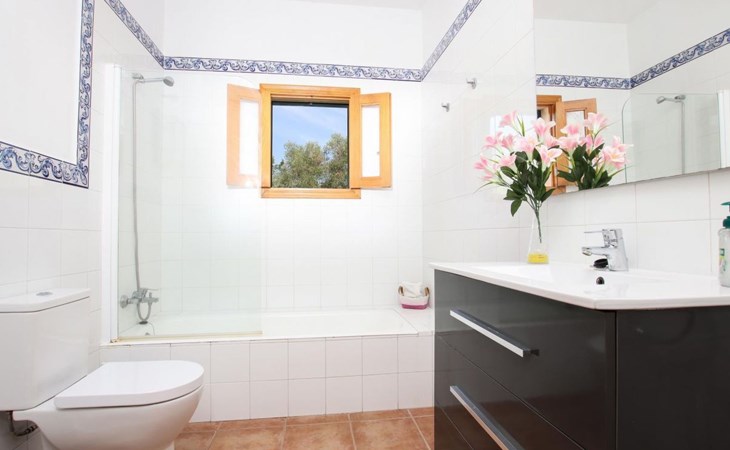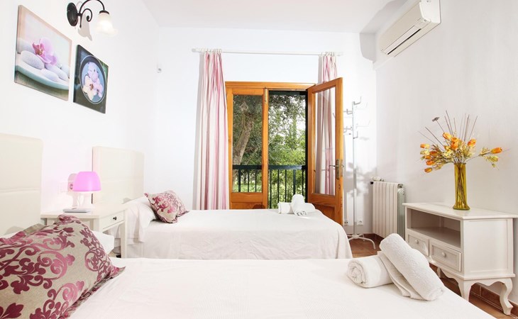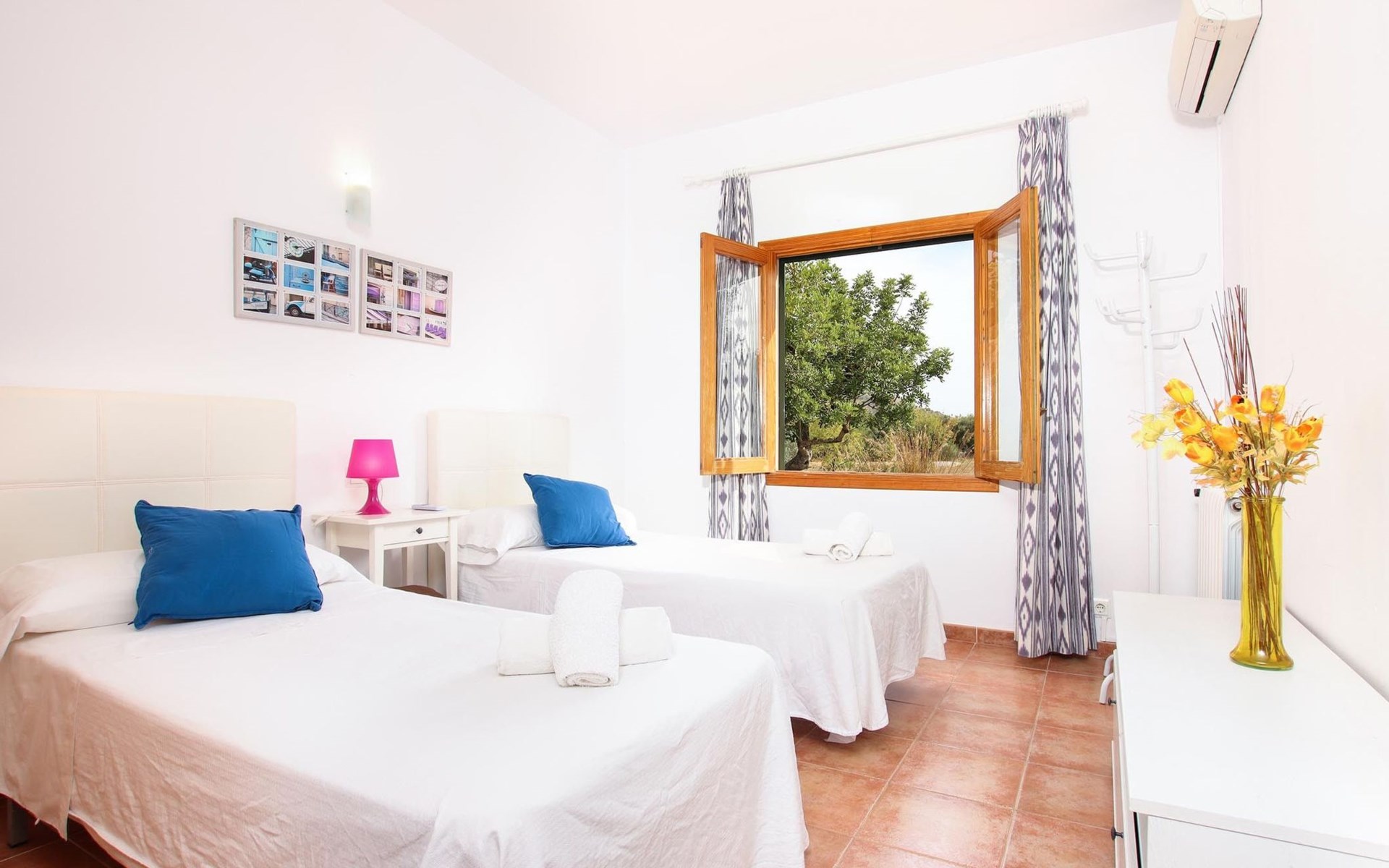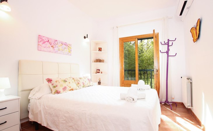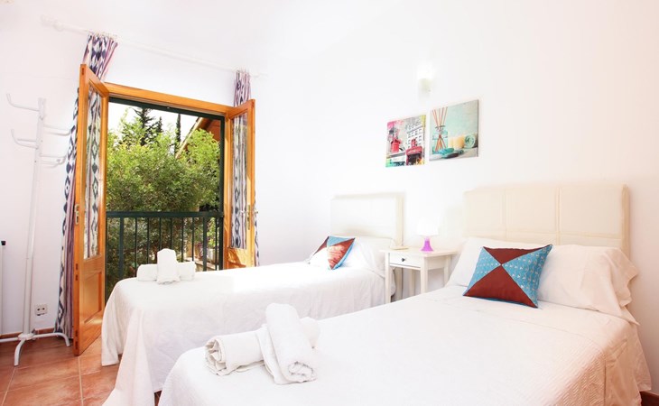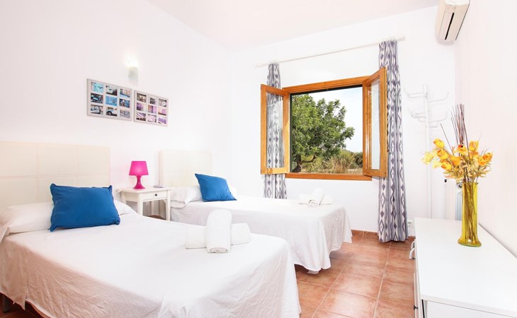 Das Haus verfügt über 4 Schlafzimmer (1 Doppel- und 3 Zweibettzimmer), alle mit Klimaanlage (mit eingeschränkten Öffnungszeiten). Das Hauptschlafzimmer und zwei der drei Doppelschlafzimmer haben Zugang zur Terrasse. Außerdem gibt es drei Bäder (1 mit Badewanne und 2 mit Dusche).