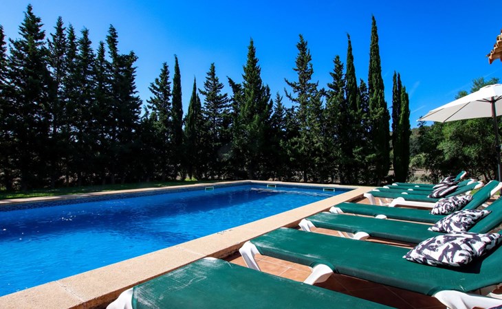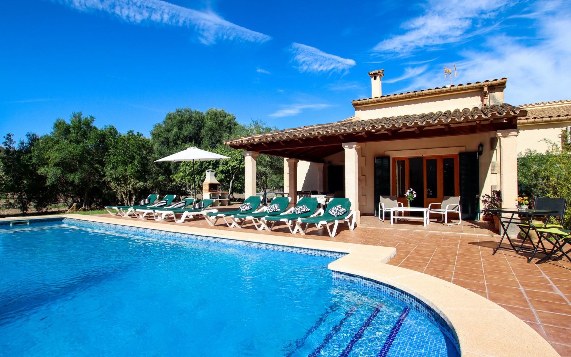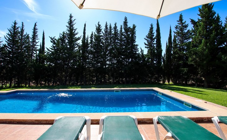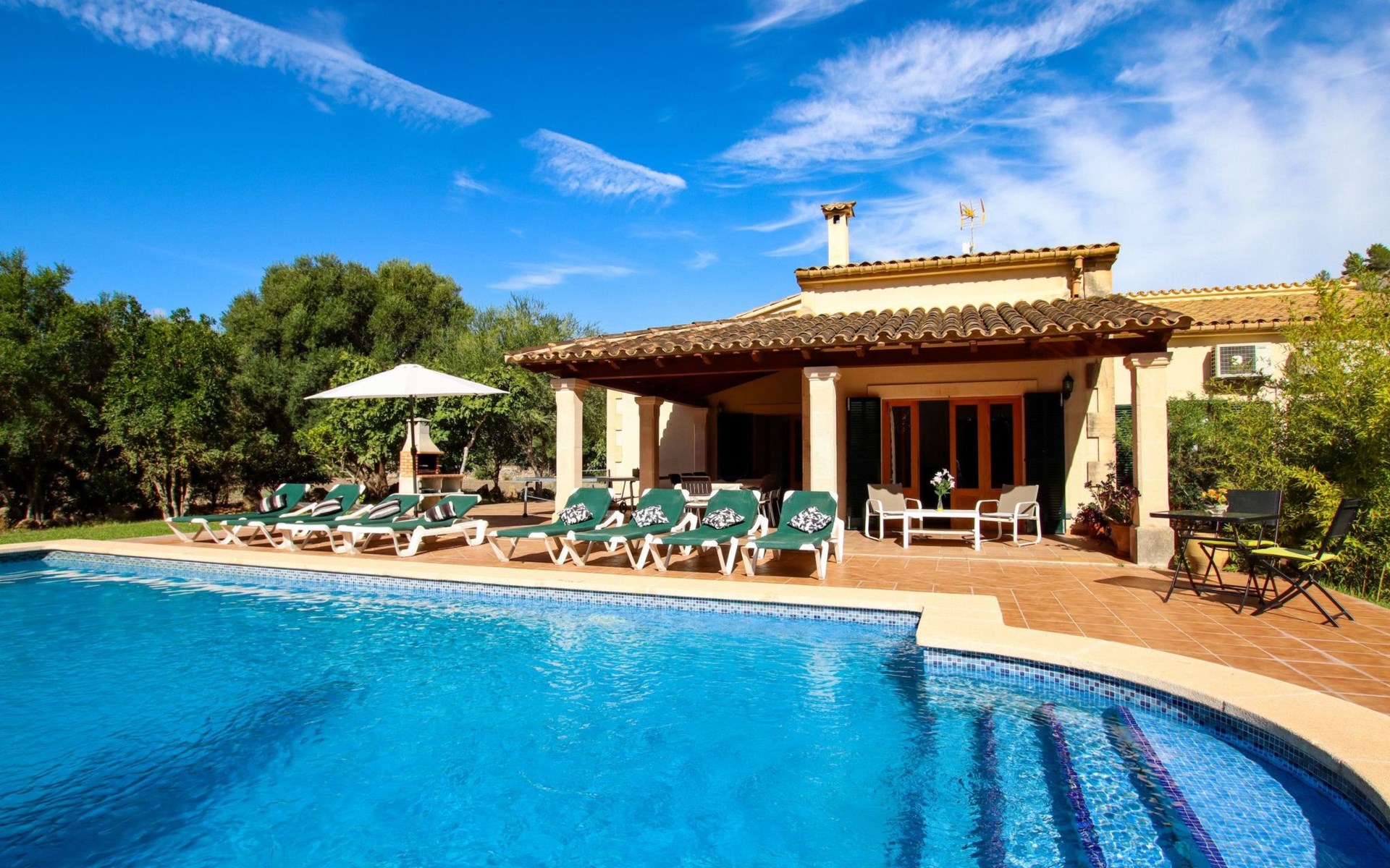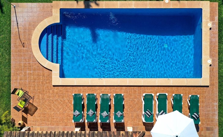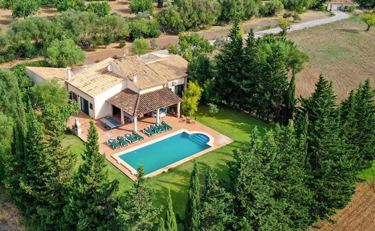 Das Haus verfügt über 4 Schlafzimmer (1 Doppel- und 3 Zweibettzimmer), alle mit Klimaanlage (mit eingeschränkten Öffnungszeiten). Das Hauptschlafzimmer und zwei der drei Doppelschlafzimmer haben Zugang zur Terrasse. Außerdem gibt es drei Bäder (1 mit Badewanne und 2 mit Dusche).