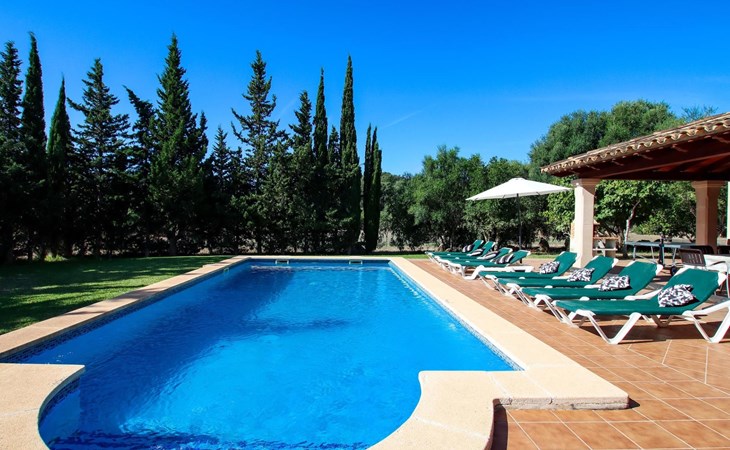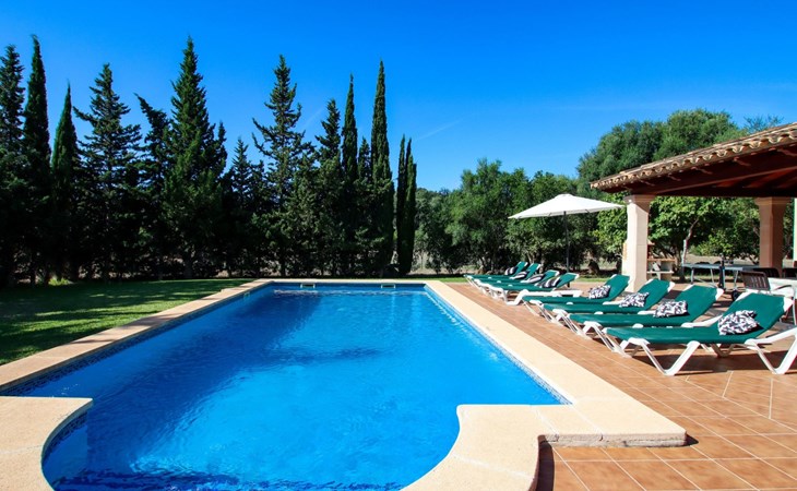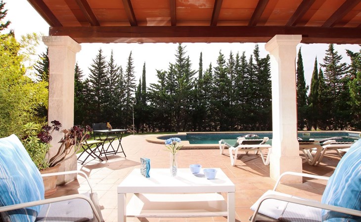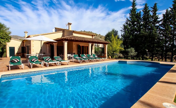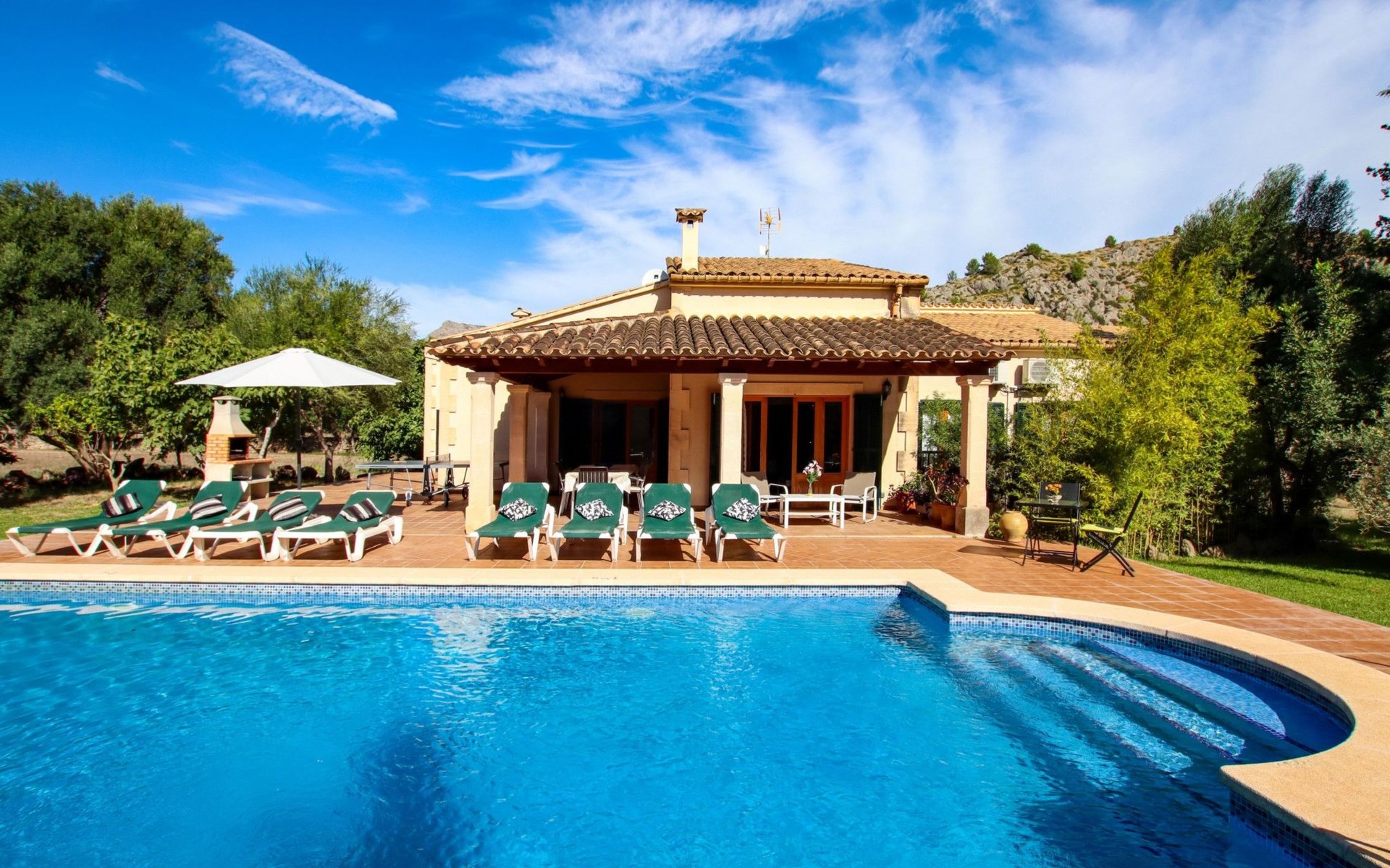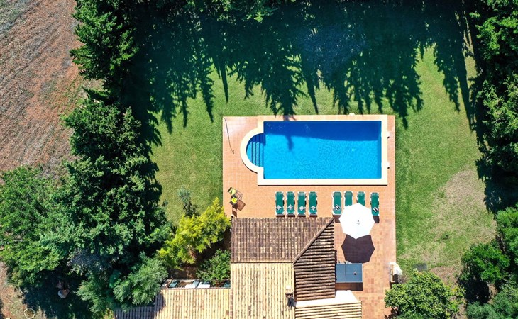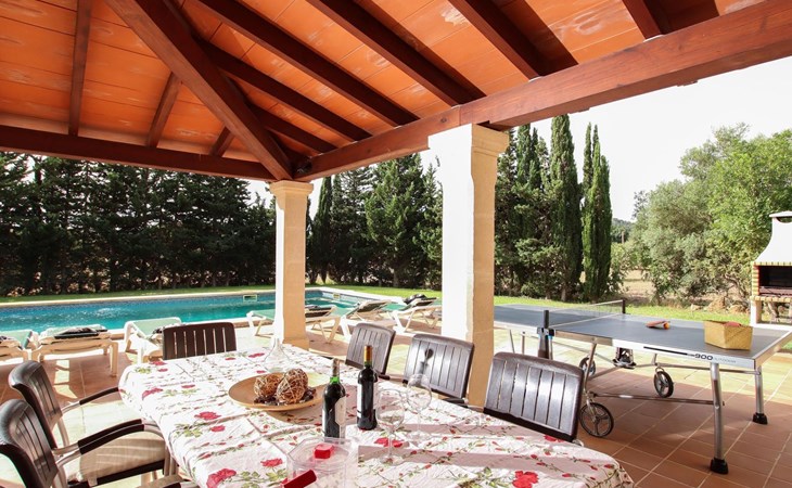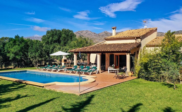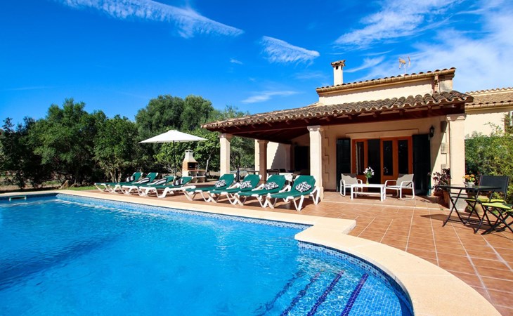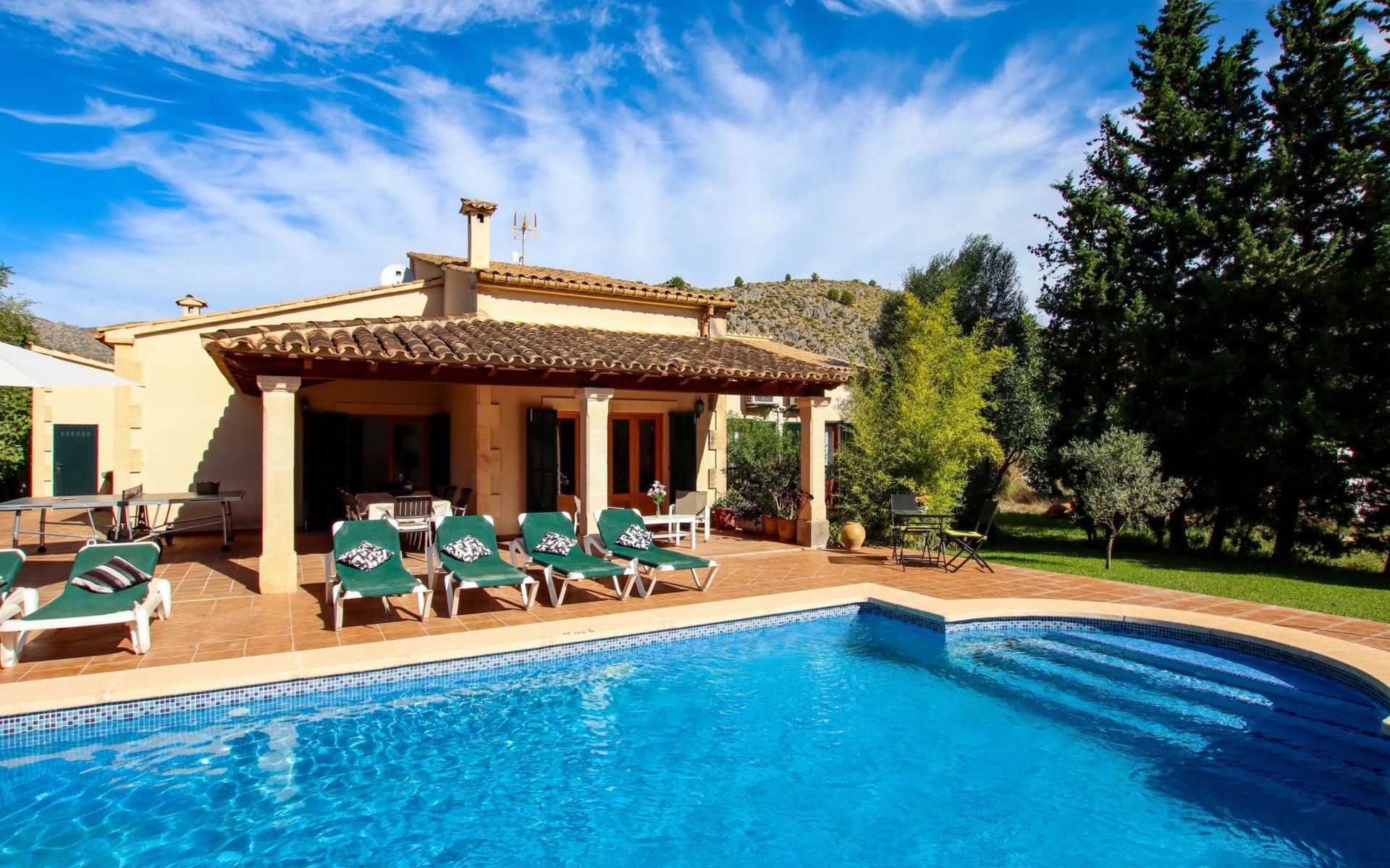 Das Haus verfügt über 4 Schlafzimmer (1 Doppel- und 3 Zweibettzimmer), alle mit Klimaanlage (mit eingeschränkten Öffnungszeiten). Das Hauptschlafzimmer und zwei der drei Doppelschlafzimmer haben Zugang zur Terrasse. Außerdem gibt es drei Bäder (1 mit Badewanne und 2 mit Dusche).