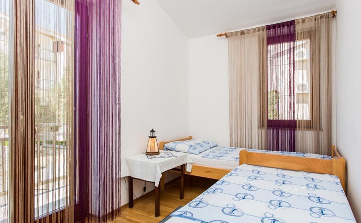 Das Haus liegt 700 m vom Strand und 650 m vom Stadtzentrum entfernt. Kann 5 Gäste beherbergen. Die Wohnung besteht aus 2 Schlafzimmern, eines mit einem Doppelbett und das zweite mit zwei Einzelbetten. Im Wohnzimmer befindet sich ein Schlafsofa, das Platz für 1 Person bietet. Kostenloses Wi-Fi und Parkplatz vor dem Haus. Klimaanlage und Grill sind ebenfalls vorhanden.