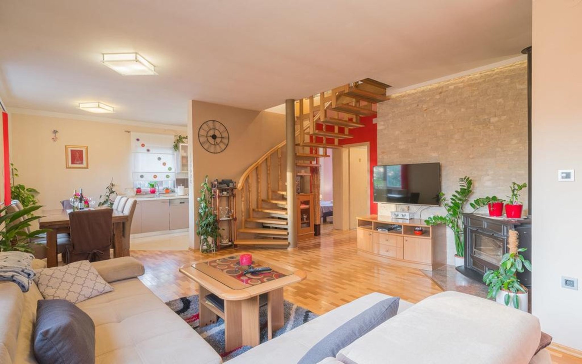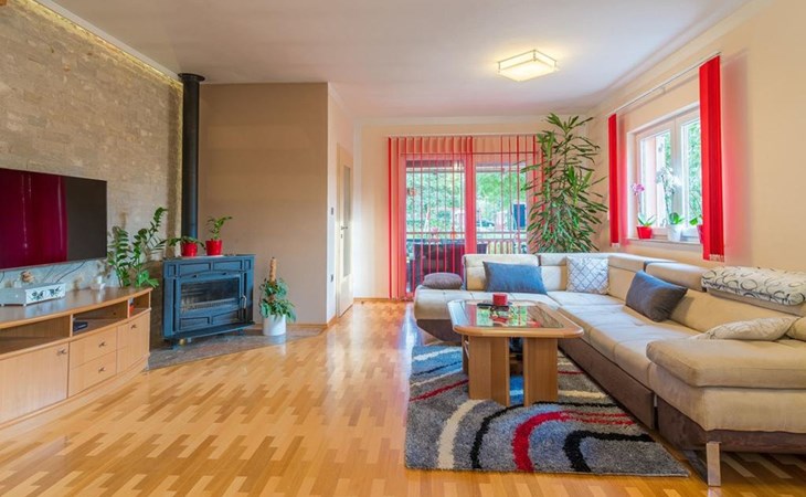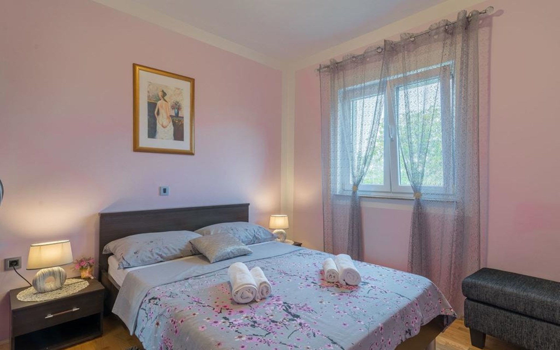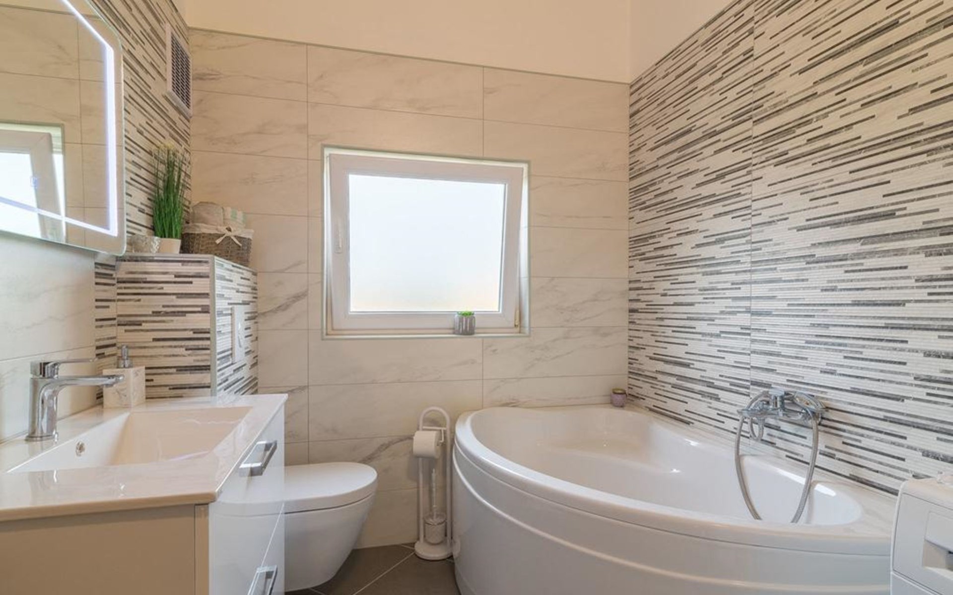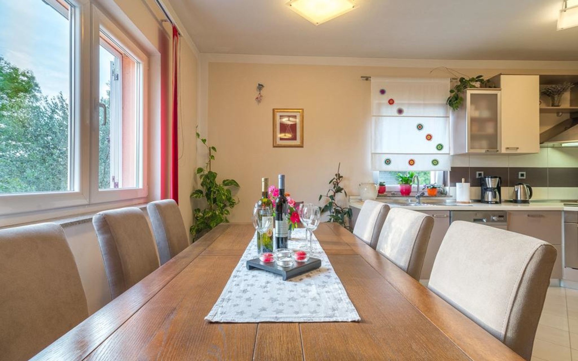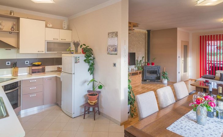 Im Inneren ist das Haus geräumig und einladend eingerichtet, um alle Ihre Bedürfnisse zu befriedigen. Das Herzstück des Hauses ist ein großer, geschmackvoll eingerichteter Wohn- und Essbereich, der durch eine komplett ausgestattete Einrichtung ergänzt wird, die ein nahtloses Urlaubserlebnis verspricht. Die Wohnung ist in einigen Bereichen mit einer Klimaanlage ausgestattet, damit Sie sich an den warmen Tagen in Dalmatien wohlfühlen. Für zusätzlichen Komfort stehen Ihnen eine Waschmaschine und praktische Annehmlichkeiten wie ein elektrischer Wasserkocher zur Verfügung, so dass Sie sich wie zu Hause fühlen.