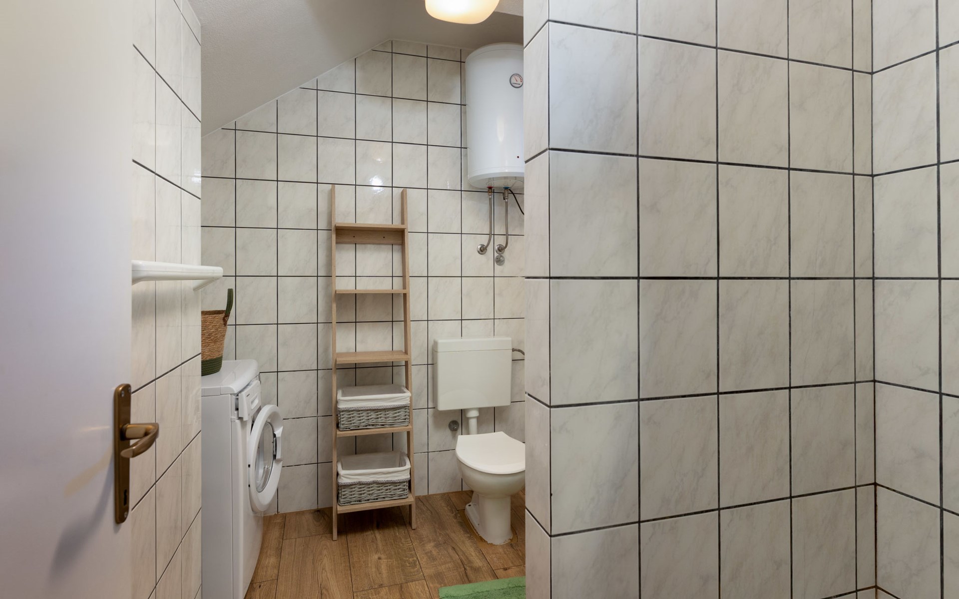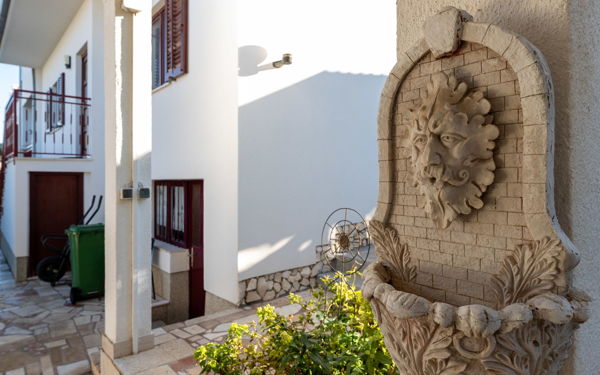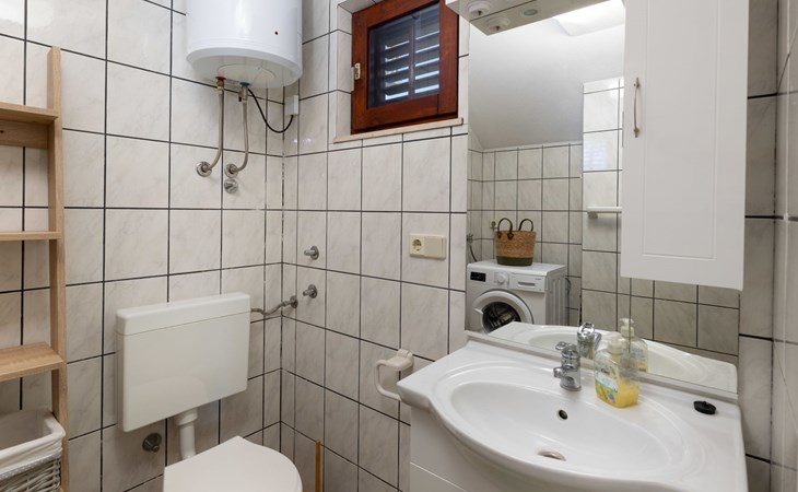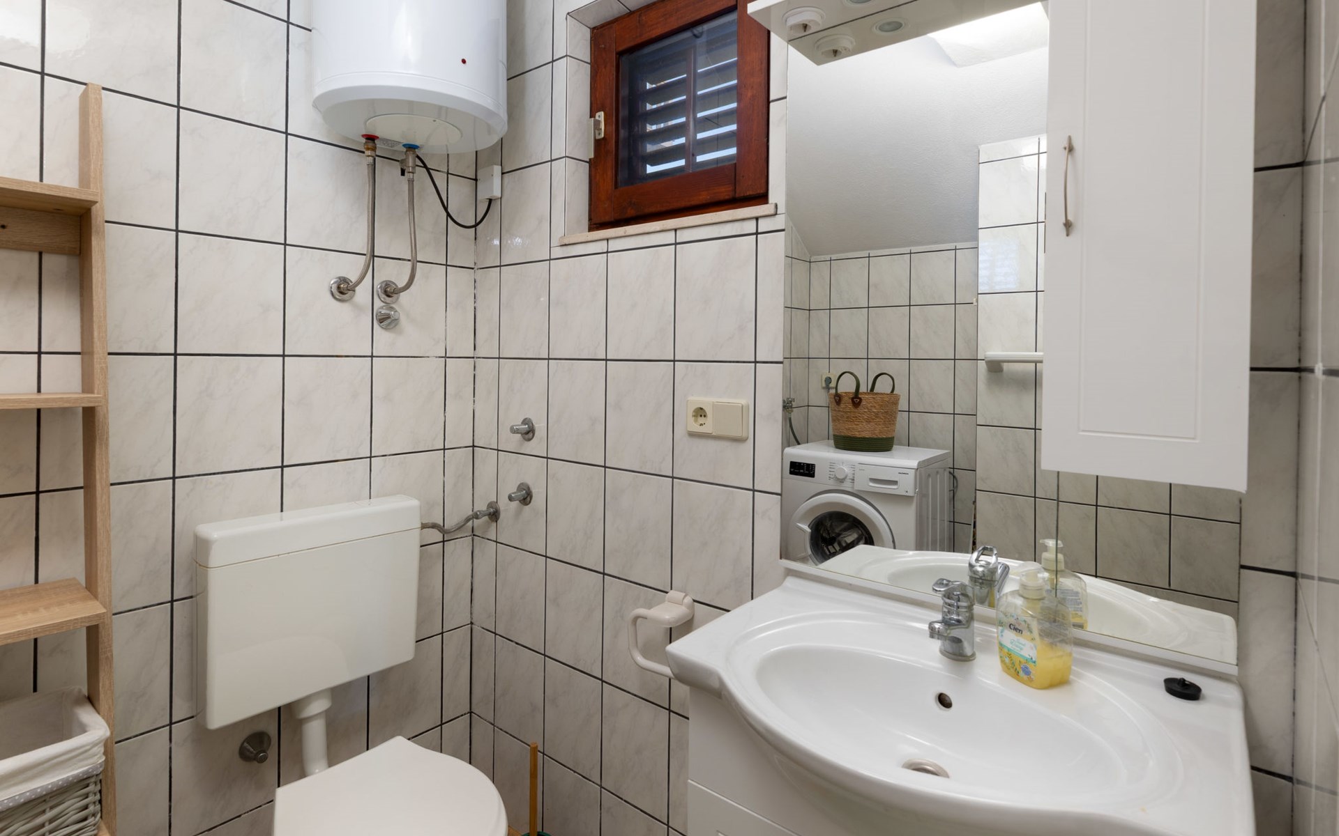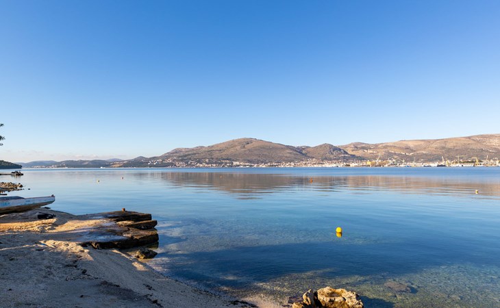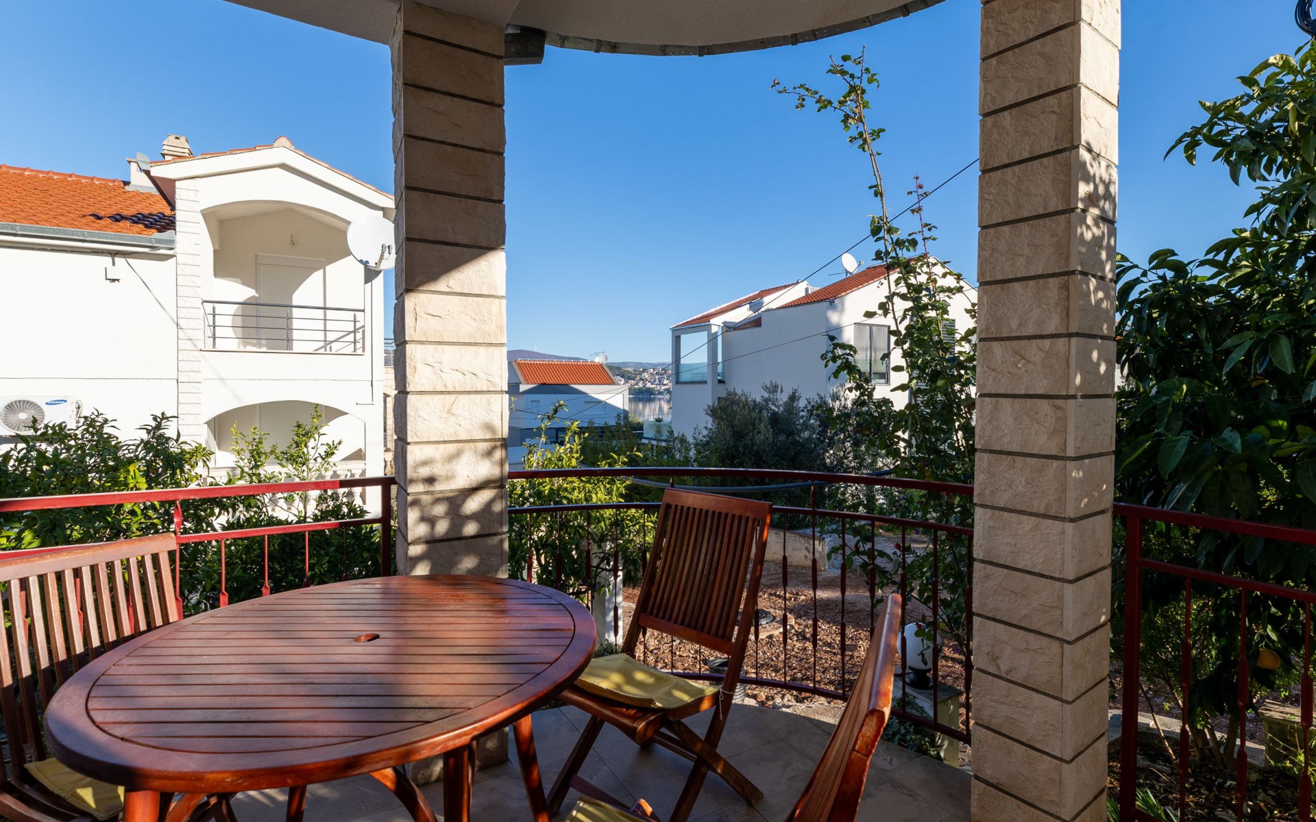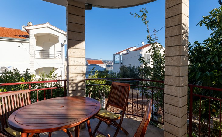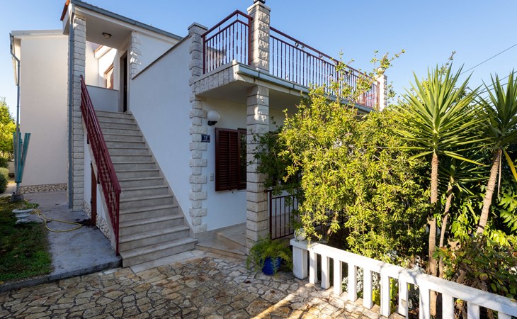 Okrug Gornji (Čiovo) 6 km von Trogir: Mehrfamilienhaus auf 3 Stockwerken. 1.5 km vom Zentrum von Okrug Gornji, ruhige, sonnige Lage, 80 m vom Meer, 80 m vom Strand. Zur Mitbenutzung: Grundstück 450 m2. Terrasse (20 m2), Grill. Im Hause: Internetzugang. Parkplatz (für 5 Autos) beim Haus auf dem Grundstück. Einkaufsgeschäft 1.5 km, Restaurant 1.5 km, Bushaltestelle 1 km.