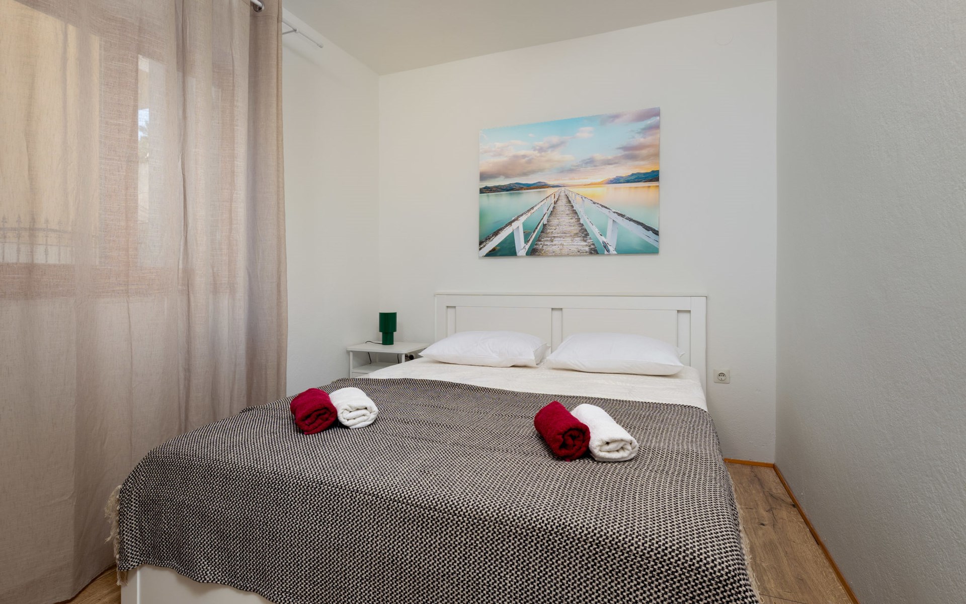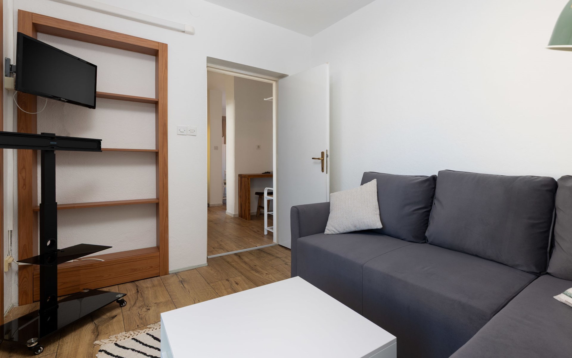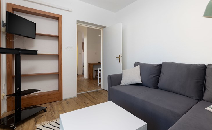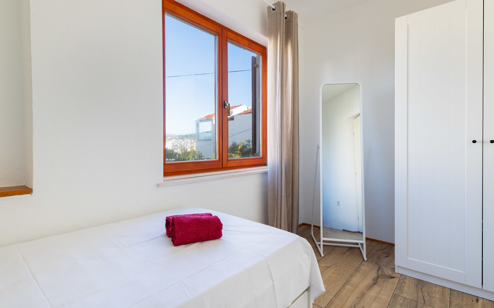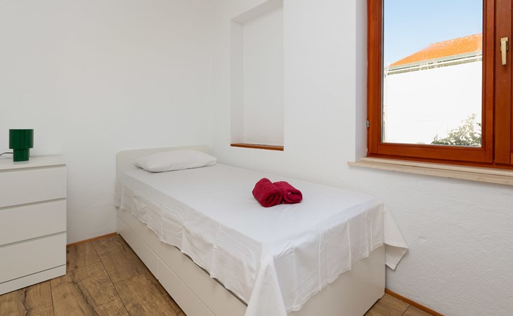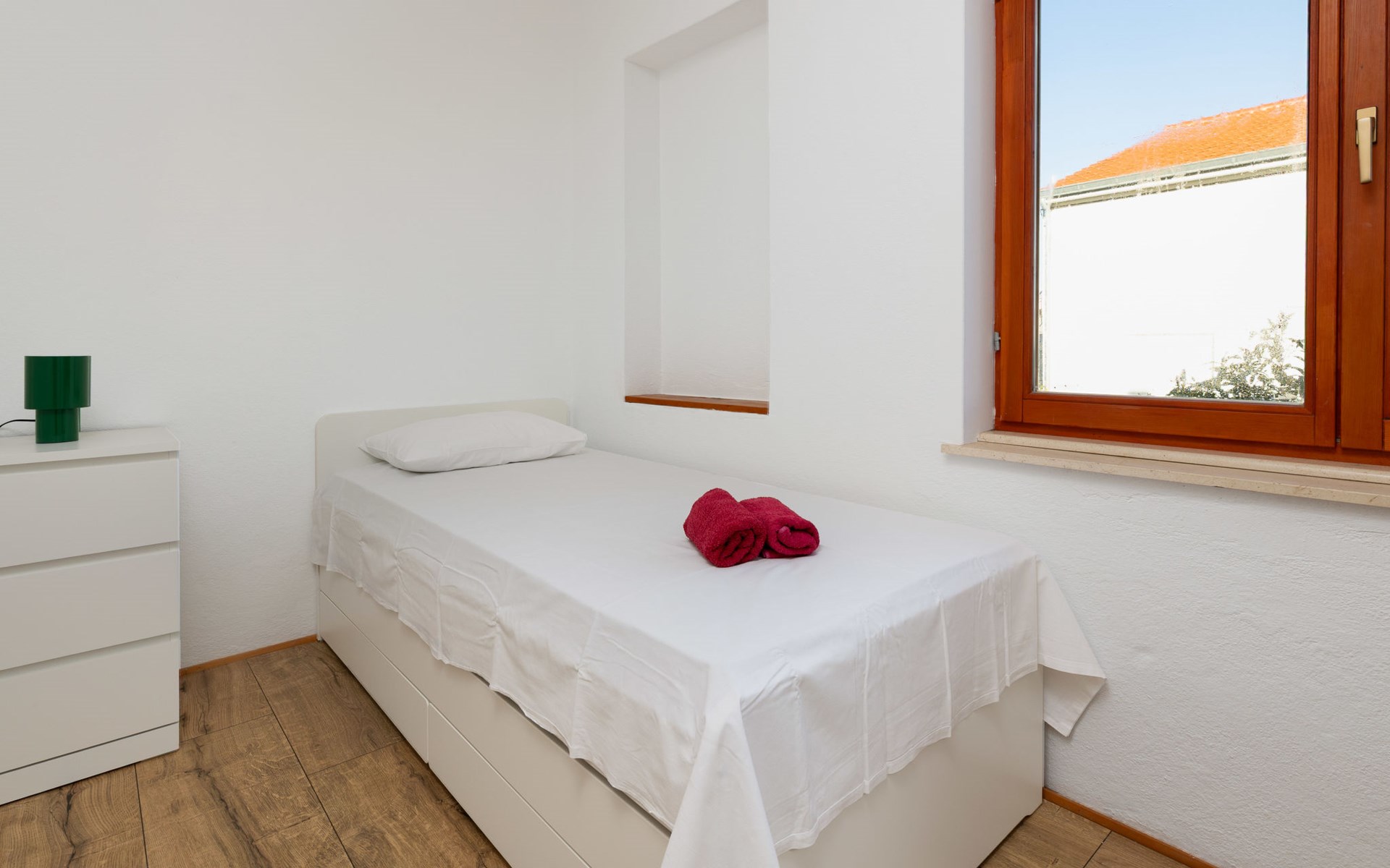 Okrug Gornji (Čiovo) 6 km von Trogir: Mehrfamilienhaus auf 3 Stockwerken. 1.5 km vom Zentrum von Okrug Gornji, ruhige, sonnige Lage, 80 m vom Meer, 80 m vom Strand. Zur Mitbenutzung: Grundstück 450 m2. Terrasse (20 m2), Grill. Im Hause: Internetzugang. Parkplatz (für 5 Autos) beim Haus auf dem Grundstück. Einkaufsgeschäft 1.5 km, Restaurant 1.5 km, Bushaltestelle 1 km.