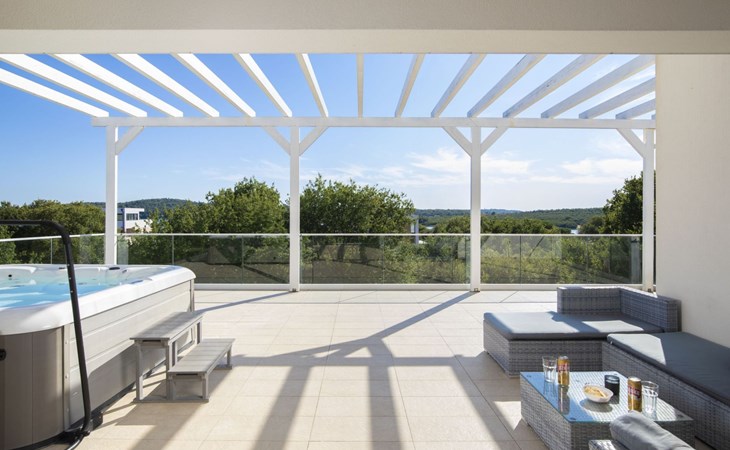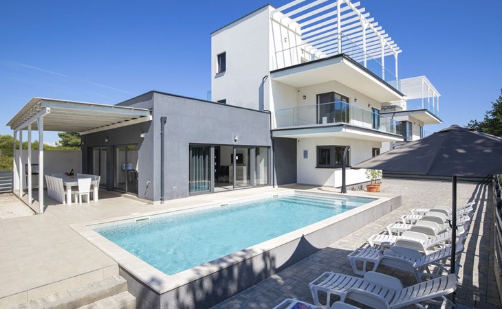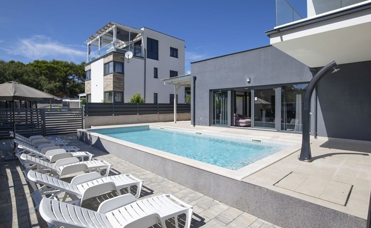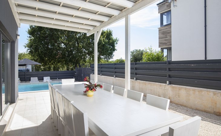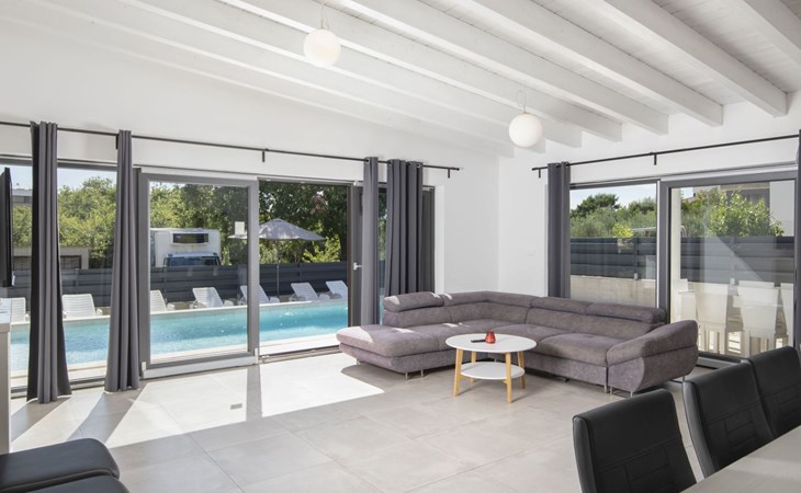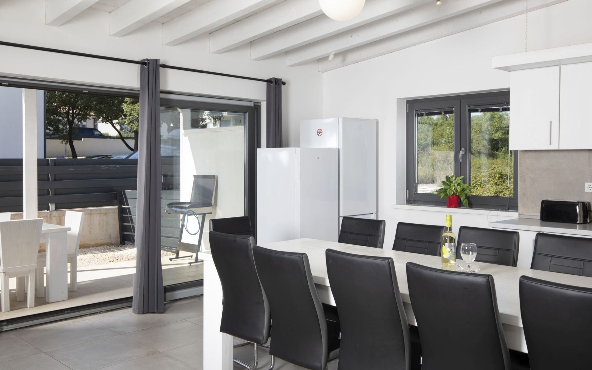 Die historische Stadt Pula, in der sich das berühmte römische Amphitheater befindet, ist nur 7,8 km entfernt, während die malerische Stadt Medulin nur 2,4 km von der Villa entfernt ist. Der Flughafen Pula ist 11,4 km entfernt, so dass Sie unsere Villa Sole leicht erreichen können.