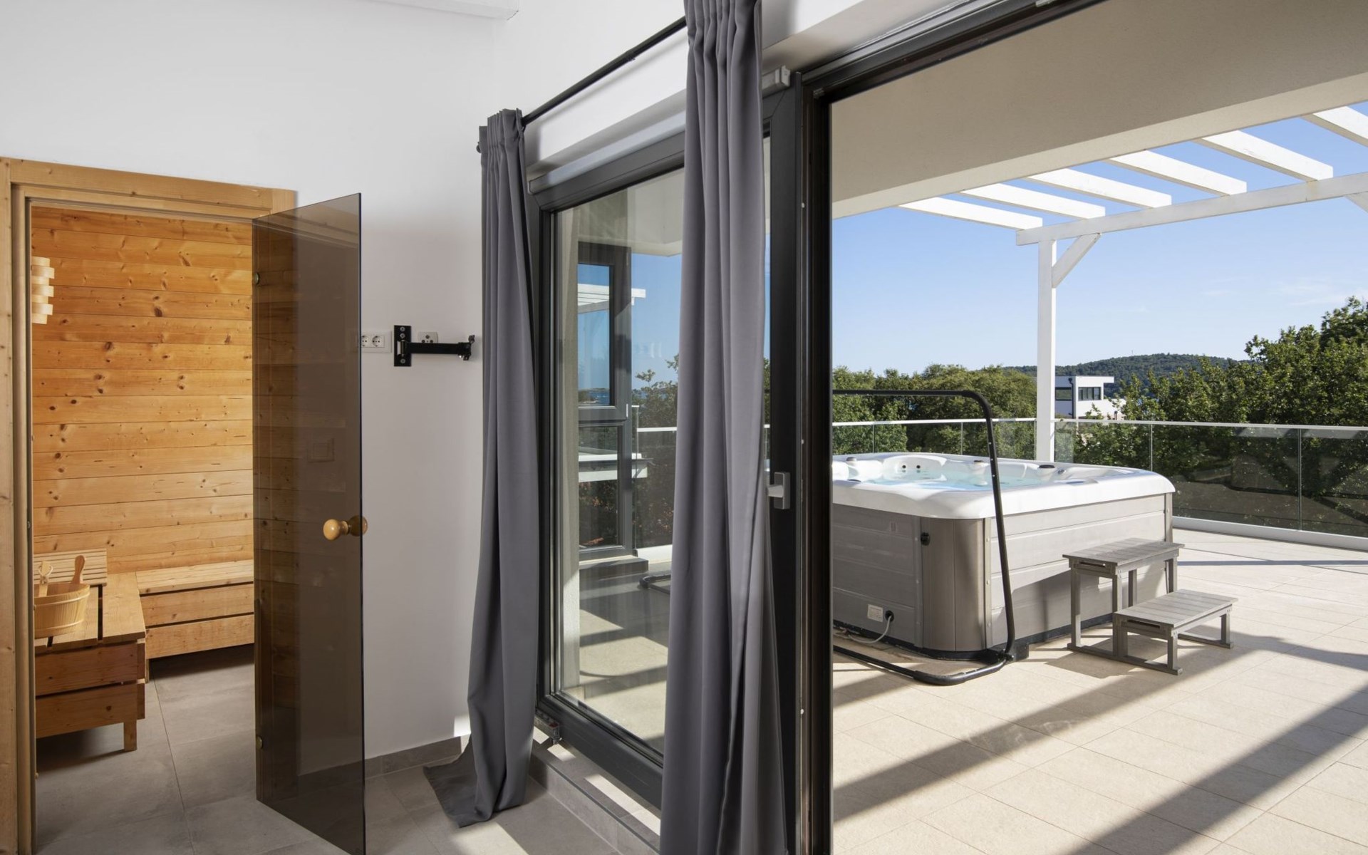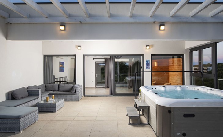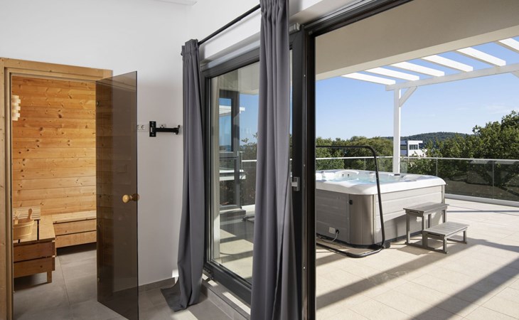 Die Villa ist nur 250 Meter vom Meer entfernt, so dass es einfach ist, die schöne Küste zu genießen. Sie können im großen 50 m² großen Pool schwimmen, sich im Whirlpool entspannen oder in der Sauna relaxen.