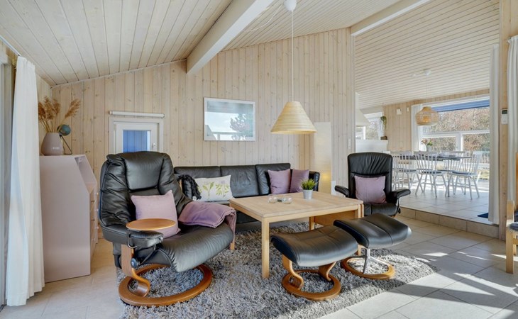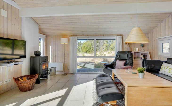Einfamilienhaus, Baujahr 2000. 3 km vom Meer. Zur Alleinbenutzung: naturbelassenes Grundstück 2'600 m2. Terrasse (80 m2). Im Hause: Sauna, Waschmaschine, Wäschetrockner. Parkplatz beim Haus. Lebensmittelgeschäft 2.2 km. Golfplatz 5.5 km. Der Besitzer akzeptiert keine Jugendgruppen.