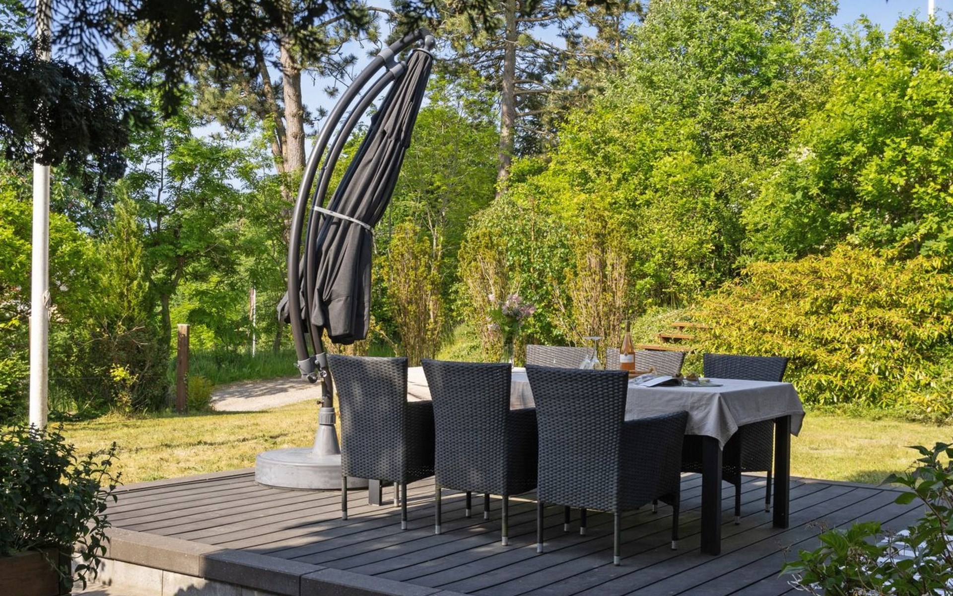 Einfamilienhaus, Baujahr 1962. 2.5 km vom Meer. Zur Mitbenutzung: Garten. Zur Alleinbenutzung: naturbelassenes Grundstück 1'420 m2, Garten (eingezäunt). Aussendusche, Grill. Im Hause: Waschmaschine. Parkplatz beim Haus. Lebensmittelgeschäft 2 km. Der Besitzer akzeptiert keine Jugendgruppen.