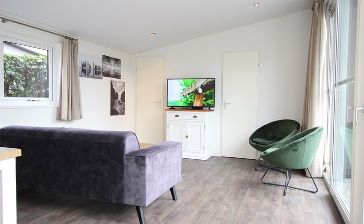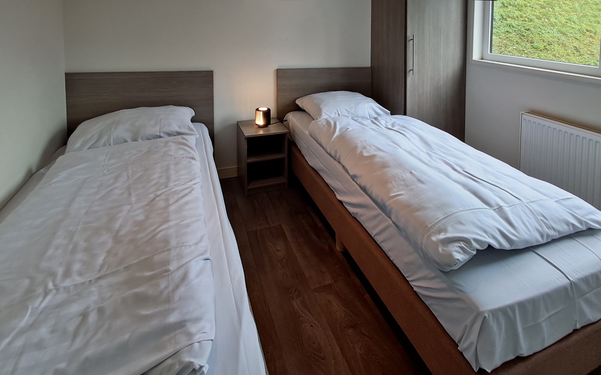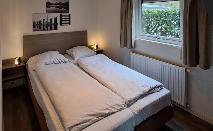 Dieses Chalet eignet sich für 4 Personen und umfasst ein Wohnzimmer und eine Küche mit einer Geschirrspülmaschine und einer Mikrowelle. Es gibt 2 Schlafzimmer mit jeweils 2 Einzelbetten oder einem Etagenbett. Das Haus hat auch ein Badezimmer mit Dusche. Das Chalet verfügt über einen Garten mit einer Terrasse und Möbeln und einen eigenen Parkplatz. Sie können das WiFi kostenlos benutzen. Bitte beachte, dass es Stufen zum Haus geben kann.