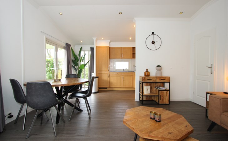 Dieses Chalet eignet sich für 4 Personen und umfasst ein Wohnzimmer und eine Küche mit einer Filterkaffeemaschine, einer Geschirrspülmaschine und einer Mikrowelle. Es sind 2 Schlafzimmer mit jeweils 2 Einzelbetten oder 1 Etagenbett vorhanden. Das Haus verfügt über 1 Badezimmer mit einer Dusche. Zudem ist ein Garten mit einer möblierten Terrasse sowie eine Parkmöglichkeit für 1 Auto vorhanden.