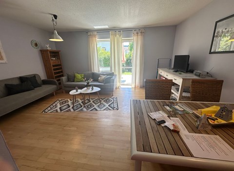 Im Inneren der 60 m² großen Ferienwohnung erwartet Sie alles, was Sie für einen entspannten Aufenthalt benötigen. Neben einem einladenden Wohnraum mit einer Doppelbettcouch finden Gäste zwei gemütliche Schlafzimmer – eines mit einem Doppelbett und das andere mit zwei Einzelbetten – vor. Für Komfort sorgen zudem die vorhandene Waschmaschine zur alleinigen Nutzung und praktische Annehmlichkeiten wie eine Filter-Kaffeemaschine und ein Wasserkocher.