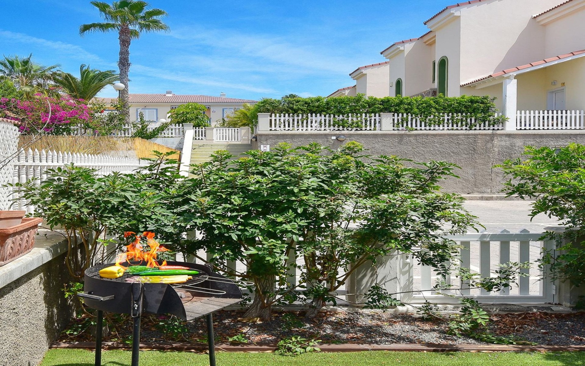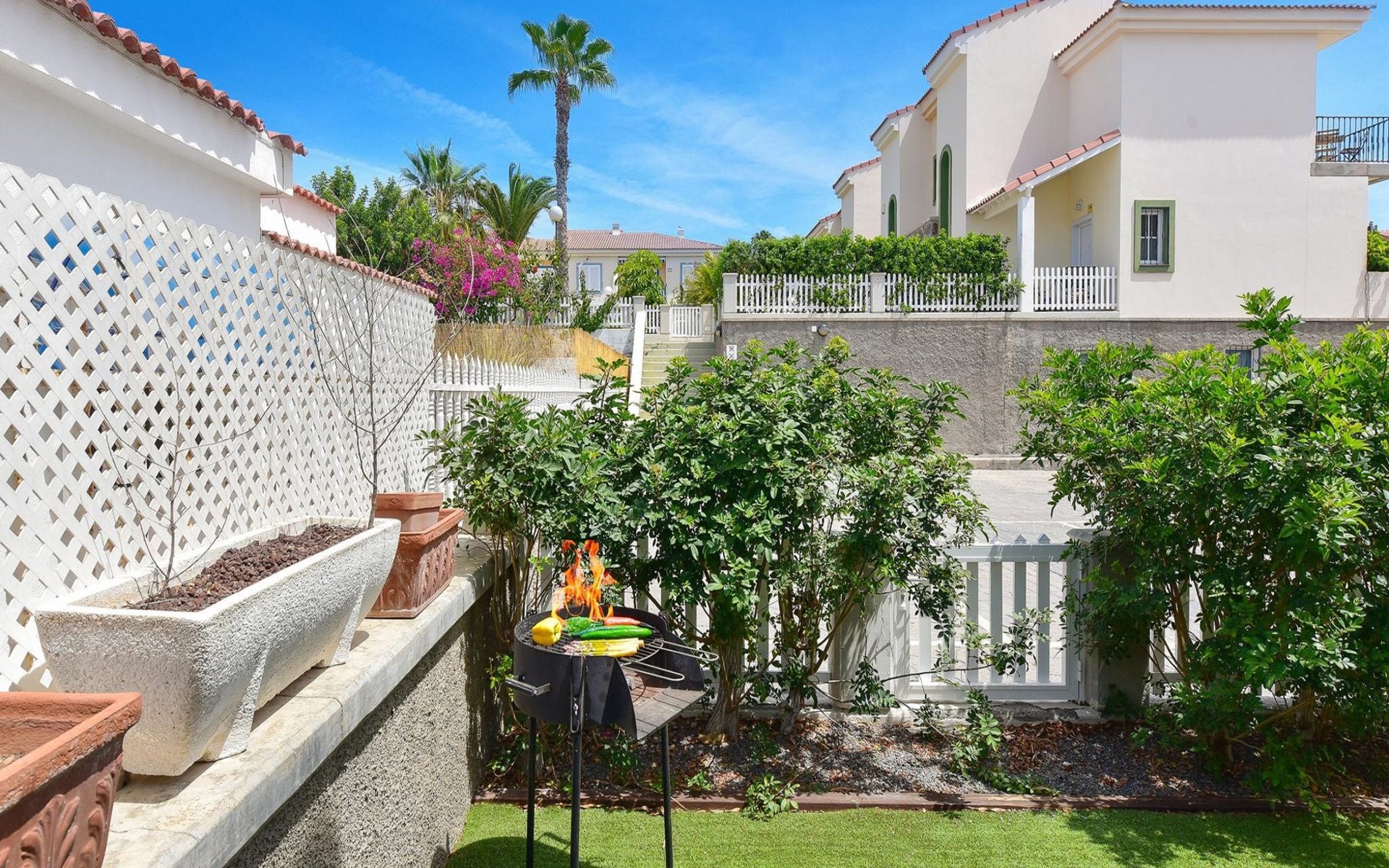 Moderne, komfortable Feriensiedlung "Marina Port 15". Im Ortszentrum von Pasito Blanco, exzellente Lage: Absolut zentral und dennoch ruhig. Zur Mitbenutzung: Schwimmbad nierenförmig (saisonale Verfügbarkeit: 01.Jan. - 31.Dez.). Sitzplatz, Laube, Gartenmöbel, Grill. Im Hause: Internetzugang, Wireless LAN, Klimaanlage, Waschmaschine, Wäschetrockner. Öffentliche Parkplätze auf der Strasse. Bushaltestelle "Cruce Pasito Blanco" 5 km. Bitte beachten: geeignet für Familien. Objekt geeignet für 4 Erwachsene. Der Besitzer akzeptiert keine Jugendgruppen. Die Nachbarschaft ist sehr lärmempfindlich. Ruhe und gutes Benehmen wird erwartet. Bei später Anreise sind folgende Gebühren in bar zu bezahlen: 20:30-22:00: 30€, 22:00-00:00: 50€, 00:00-01:30: 80€.