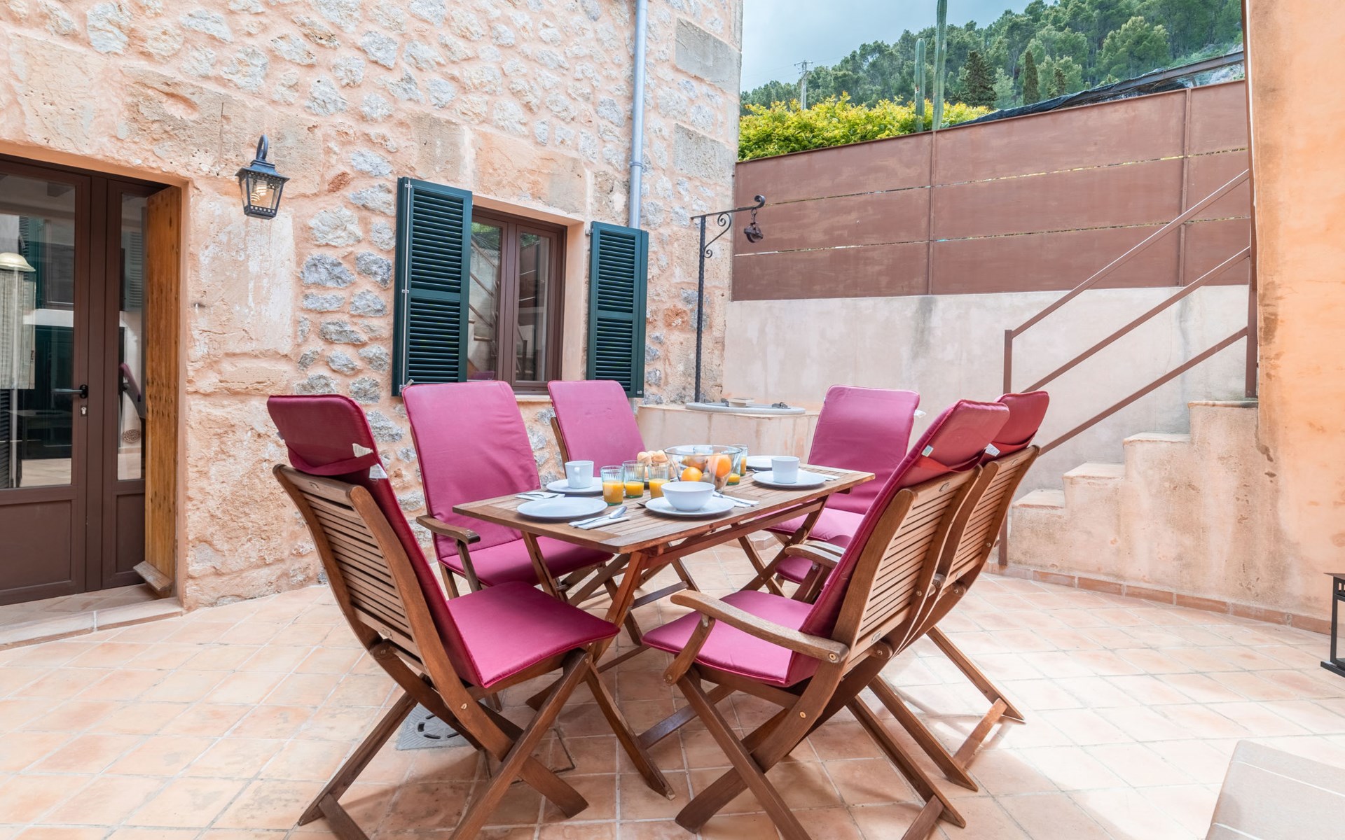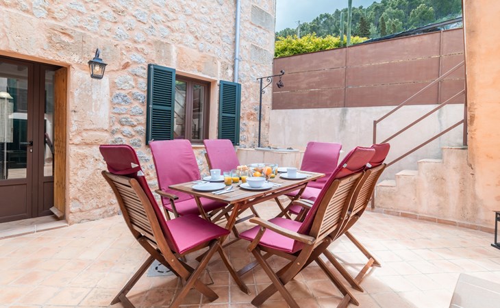 Banyalbufar: Rustikales, komfortables Haus "Boutique House", auf 2 Stockwerken. Im Ortszentrum von Banyalbufar, erhöhte Lage, 750 m vom Meer, 750 m vom Strand, in einer Sackgasse. Zur Alleinbenutzung: Hof. Terrasse, Grillhaus. Im Hause: Internetzugang, Waschmaschine. Einkaufsgeschäft 400 m, Restaurant, Bar 20 m, Bäckerei 100 m, Café, Biergarten 20 m, Bushaltestelle "Banyalbufar" 120 m, Steinstrand "Banyalbufar" 700 m. Bitte beachten: Fahrzeug empfohlen. Geeignet für Familien, geeignet für Senioren Babyausstattung auf Anfrage (inkl.). Objekt geeignet für 8 Erwachsene. Der Besitzer akzeptiert keine Jugendgruppen. Flugplatz 35 km vom Haus.