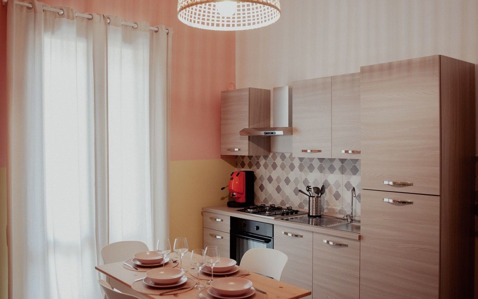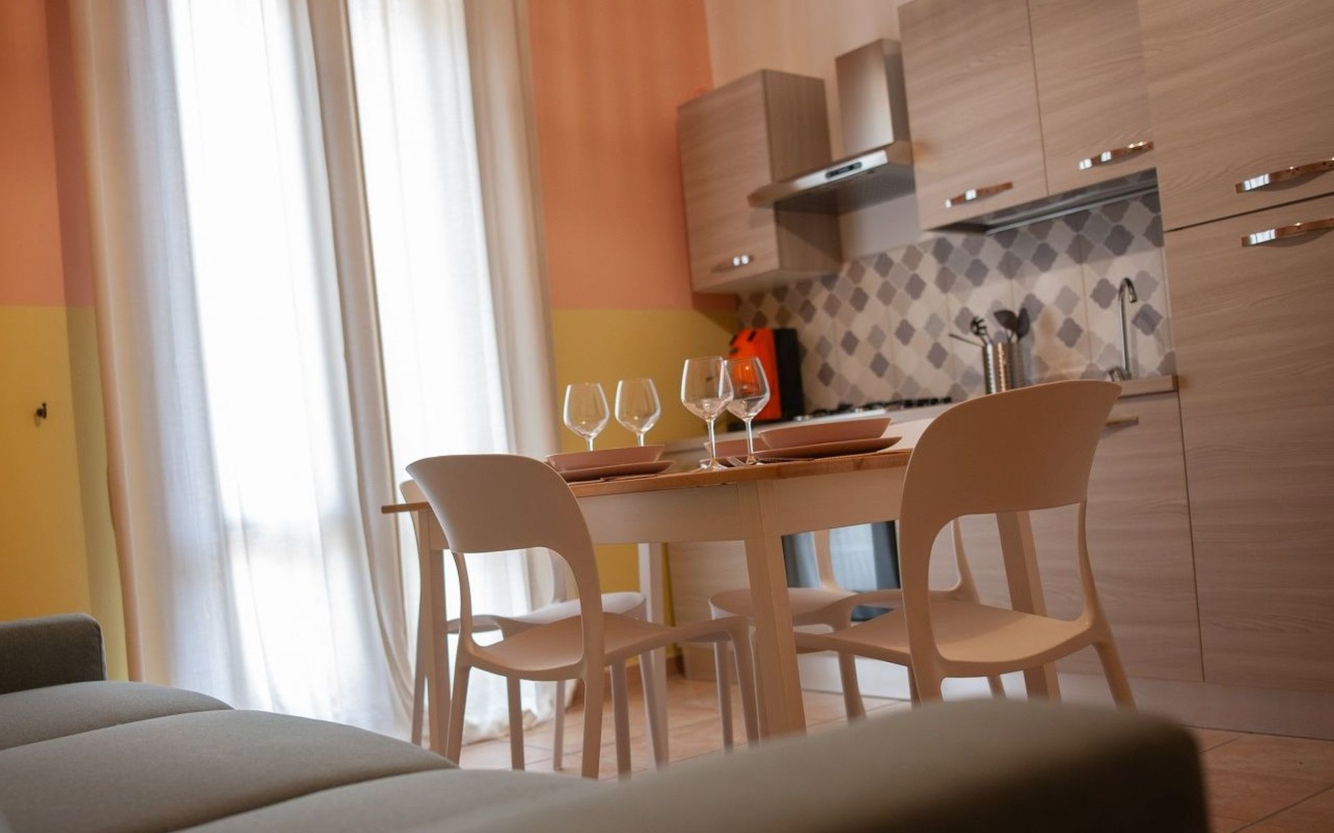 Das Innere der Wohnung ist so gestaltet, dass Sie sich während Ihres Aufenthalts wohl fühlen. Ausgestattet mit einer teilweisen Klimaanlage, können Sie an heißen Sommertagen Zuflucht finden. Das Vorhandensein einer Waschmaschine, die Ihnen zur alleinigen Nutzung zur Verfügung steht, erhöht den Komfort und ermöglicht es Ihnen, Ihren Aufenthalt so gut wie möglich zu gestalten. Die Küche ist mit allem ausgestattet, was Sie für die Zubereitung köstlicher Mahlzeiten benötigen, einschließlich einer praktischen Kaffeemaschine mit Kapseln und einem Wasserkocher, um den Tag mit einem Energieschub zu beginnen.