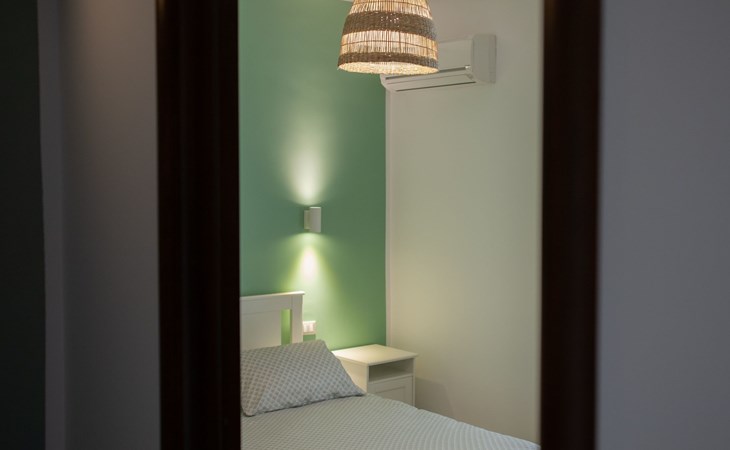 Die Einrichtung der Wohnung ist so konzipiert, dass ein komfortabler und stressfreier Aufenthalt gewährleistet ist. Wir können zwar keine spezifischen Räume wie die Küche oder das Bad beschreiben, aber wir können bestätigen, dass die Wohnung mit allen notwendigen Annehmlichkeiten für einen angenehmen Aufenthalt ausgestattet ist. Das Vorhandensein einer Teil-Klimaanlage sorgt für ein kühles und gemütliches Ambiente in den wärmeren Monaten. Außerdem befindet sich die Wohnung im 2. Stock und bietet somit mehr Privatsphäre und Ruhe abseits des Straßenrummels.