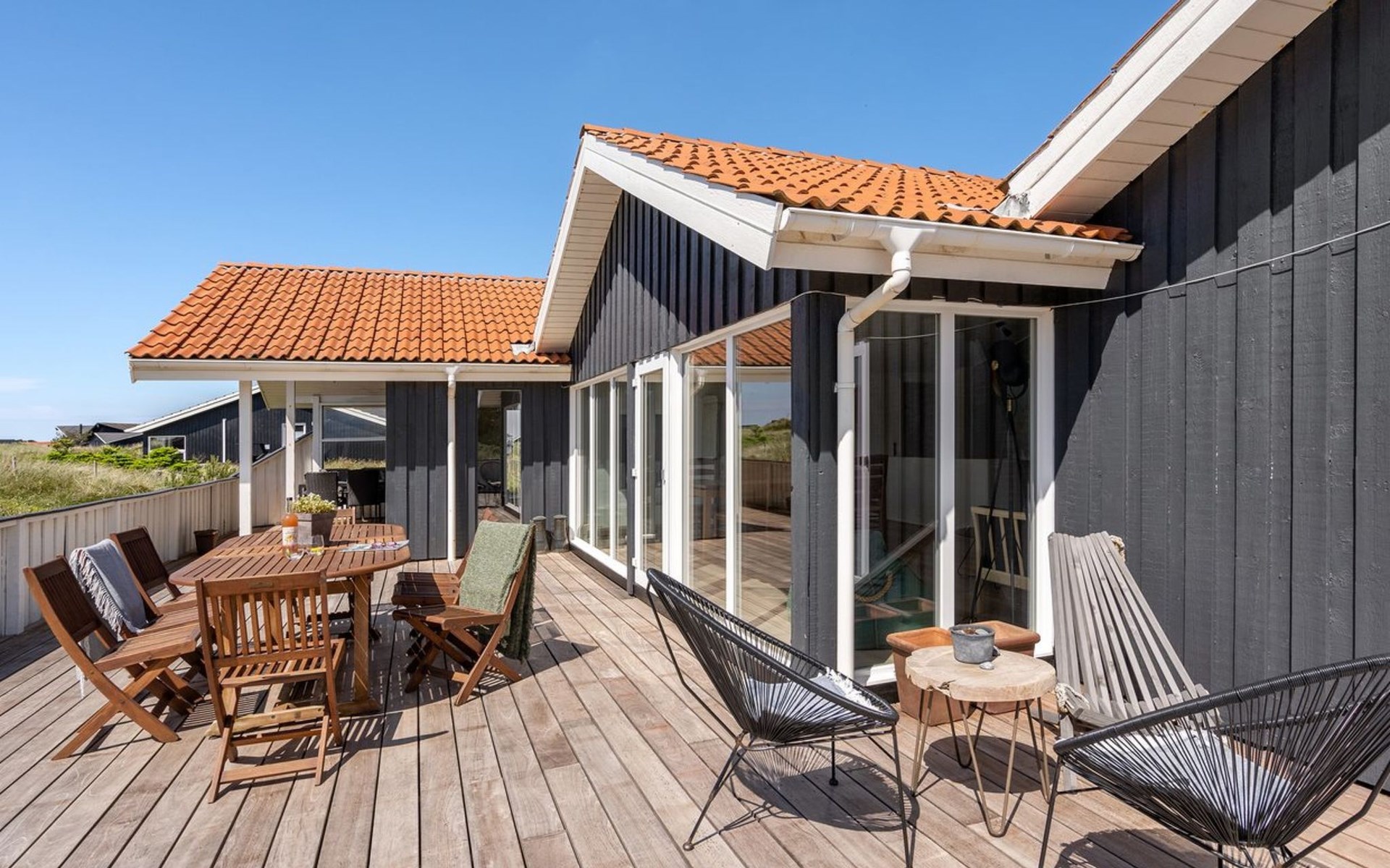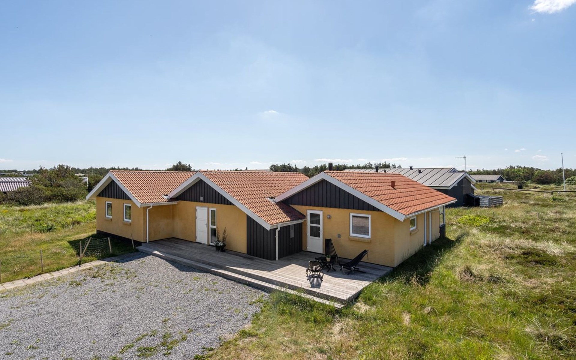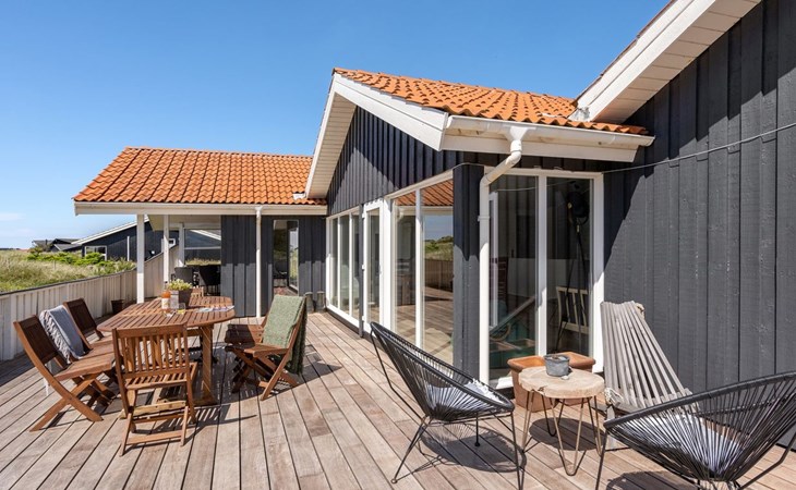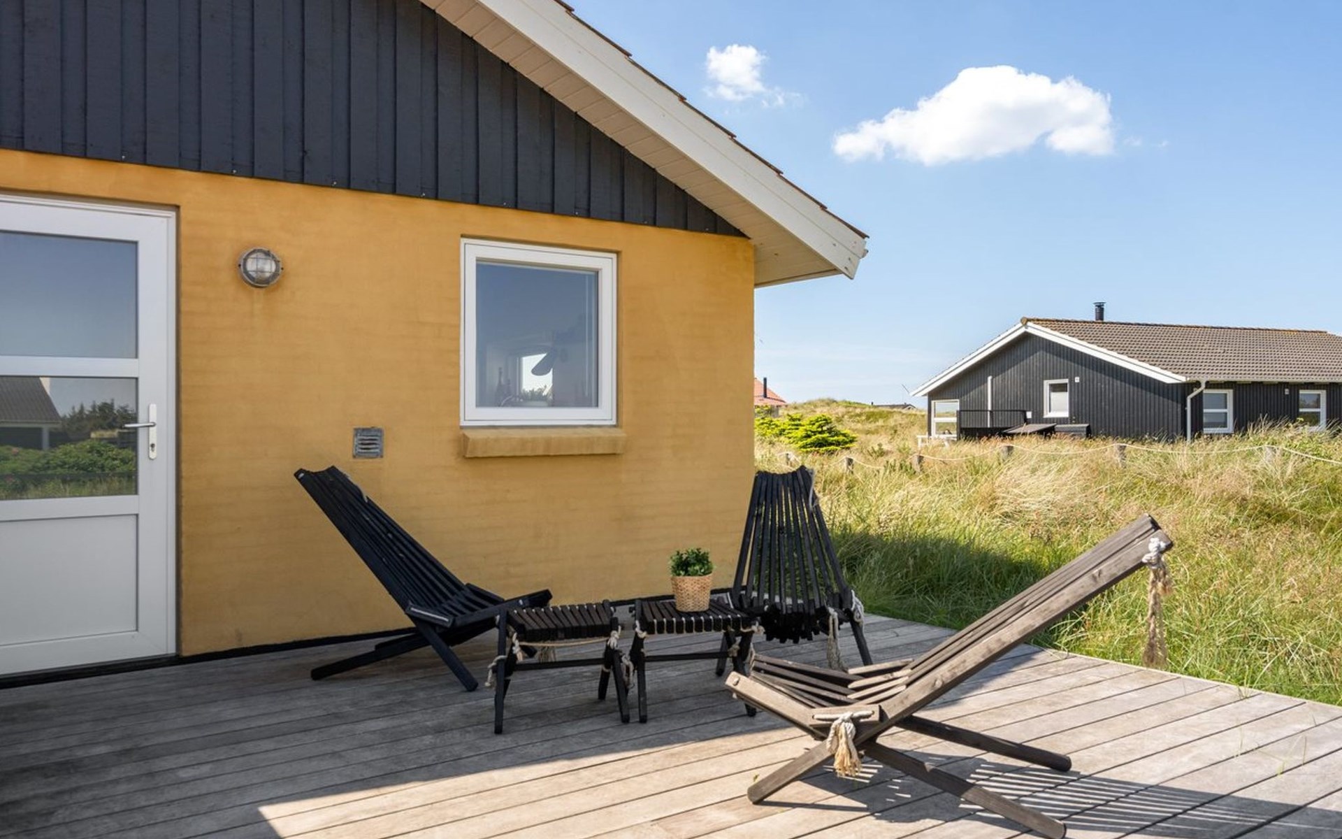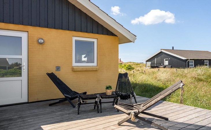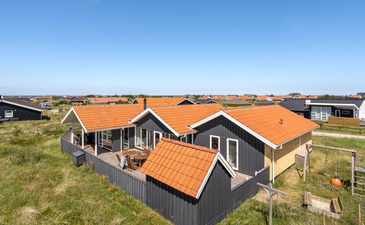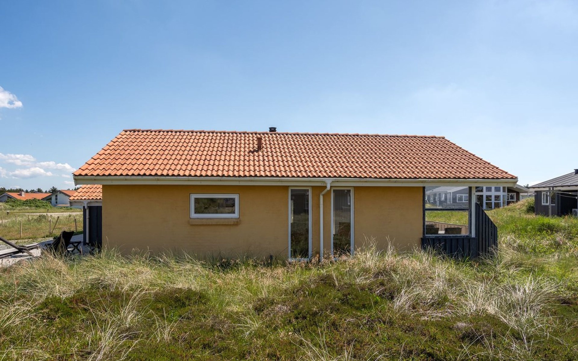 Einfamilienhaus, Baujahr 1990. 600 m vom Meer. Zur Mitbenutzung: Garten. Zur Alleinbenutzung: naturbelassenes Grundstück 1'100 m2, Garten (eingezäunt). Terrasse (100 m2), Grill, Kinderspielplatz (Schaukel). Im Hause: Sauna, Waschmaschine, Wäschetrockner. Parkplatz beim Haus. E-Ladestation. Lebensmittelgeschäft 500 m. Golfplatz 5 km. Der Besitzer akzeptiert keine Jugendgruppen.