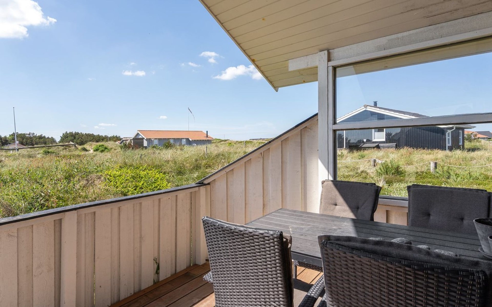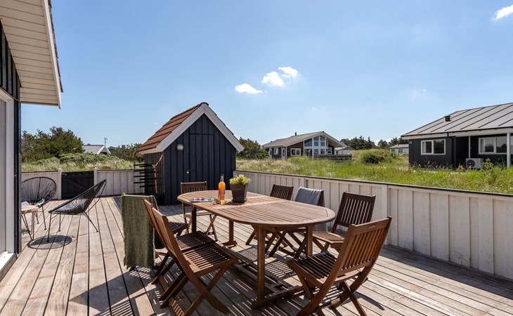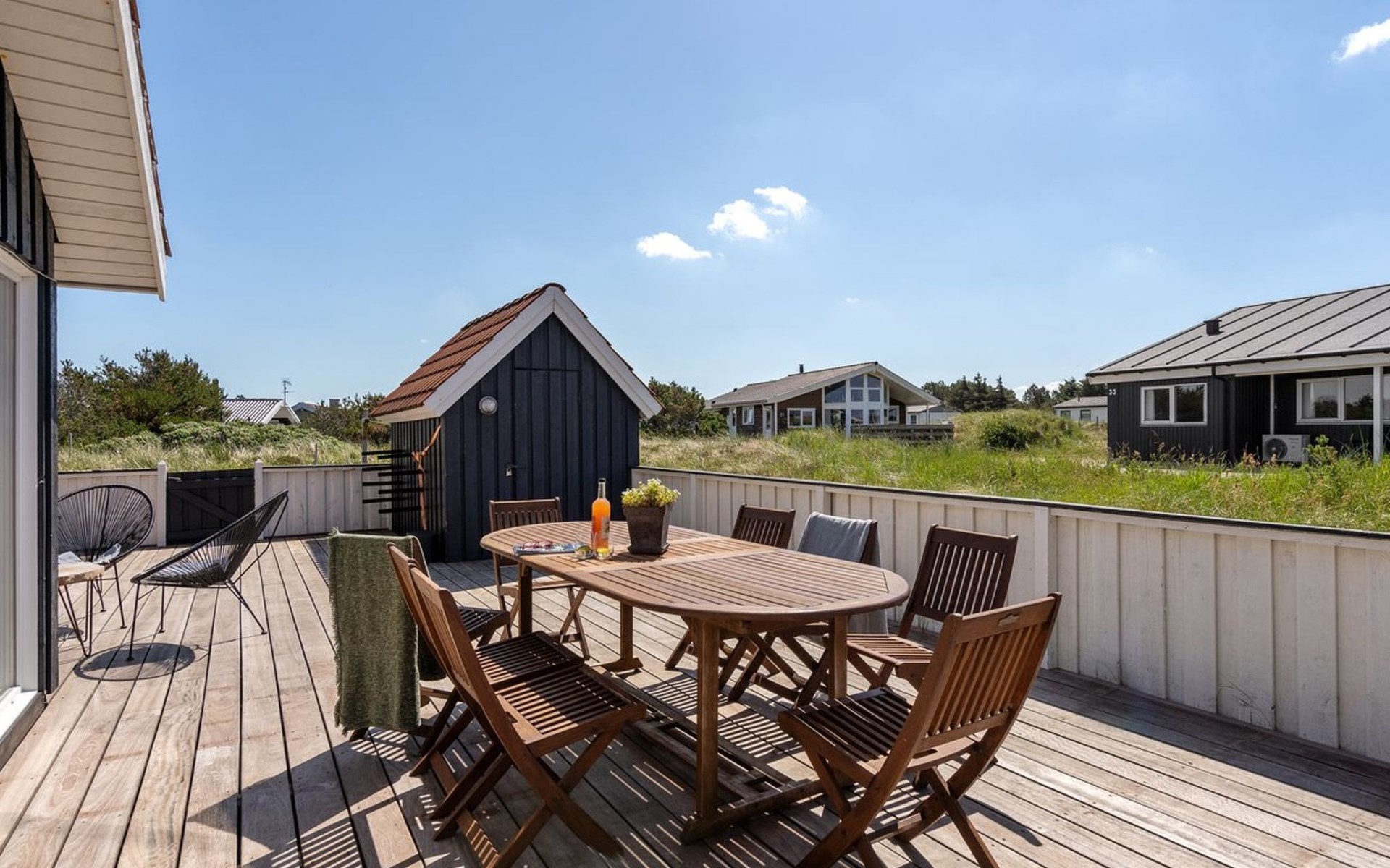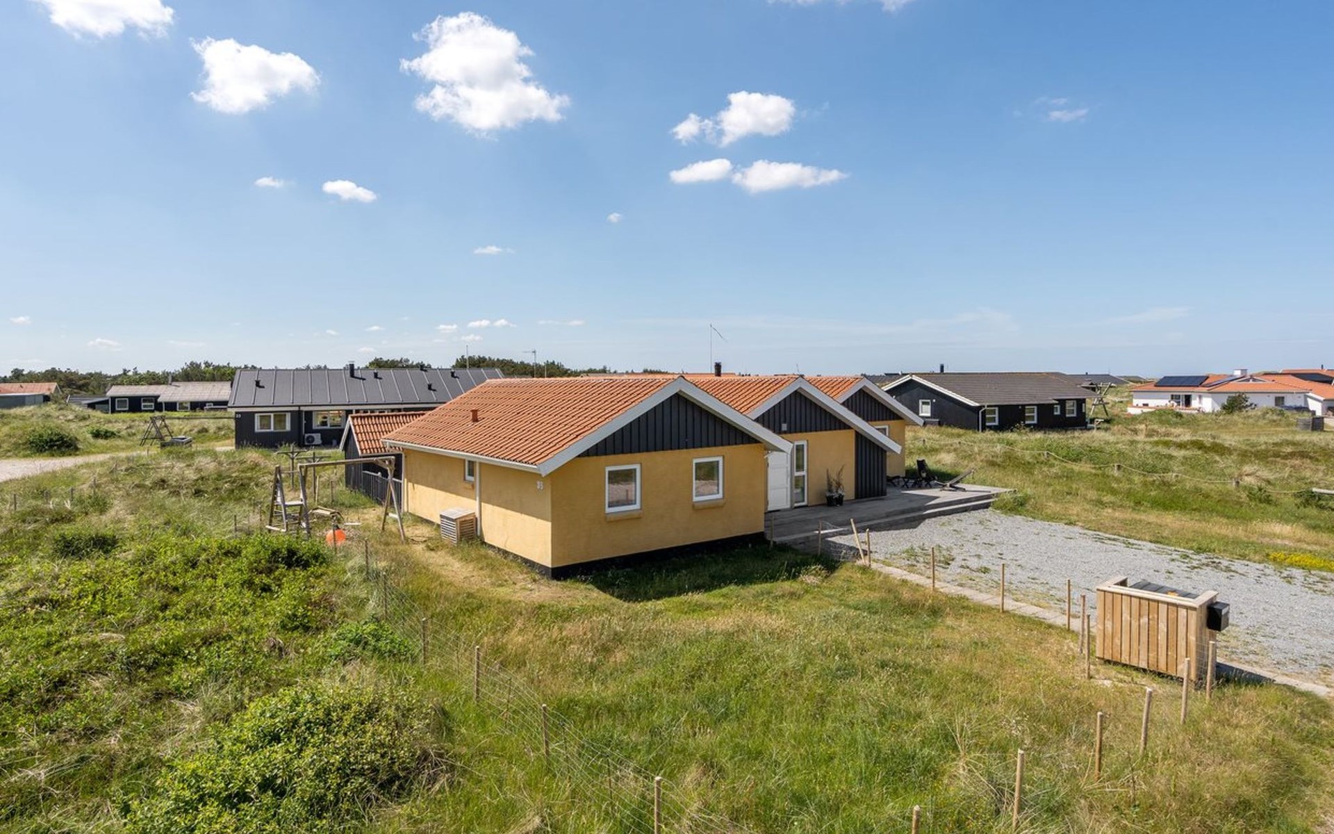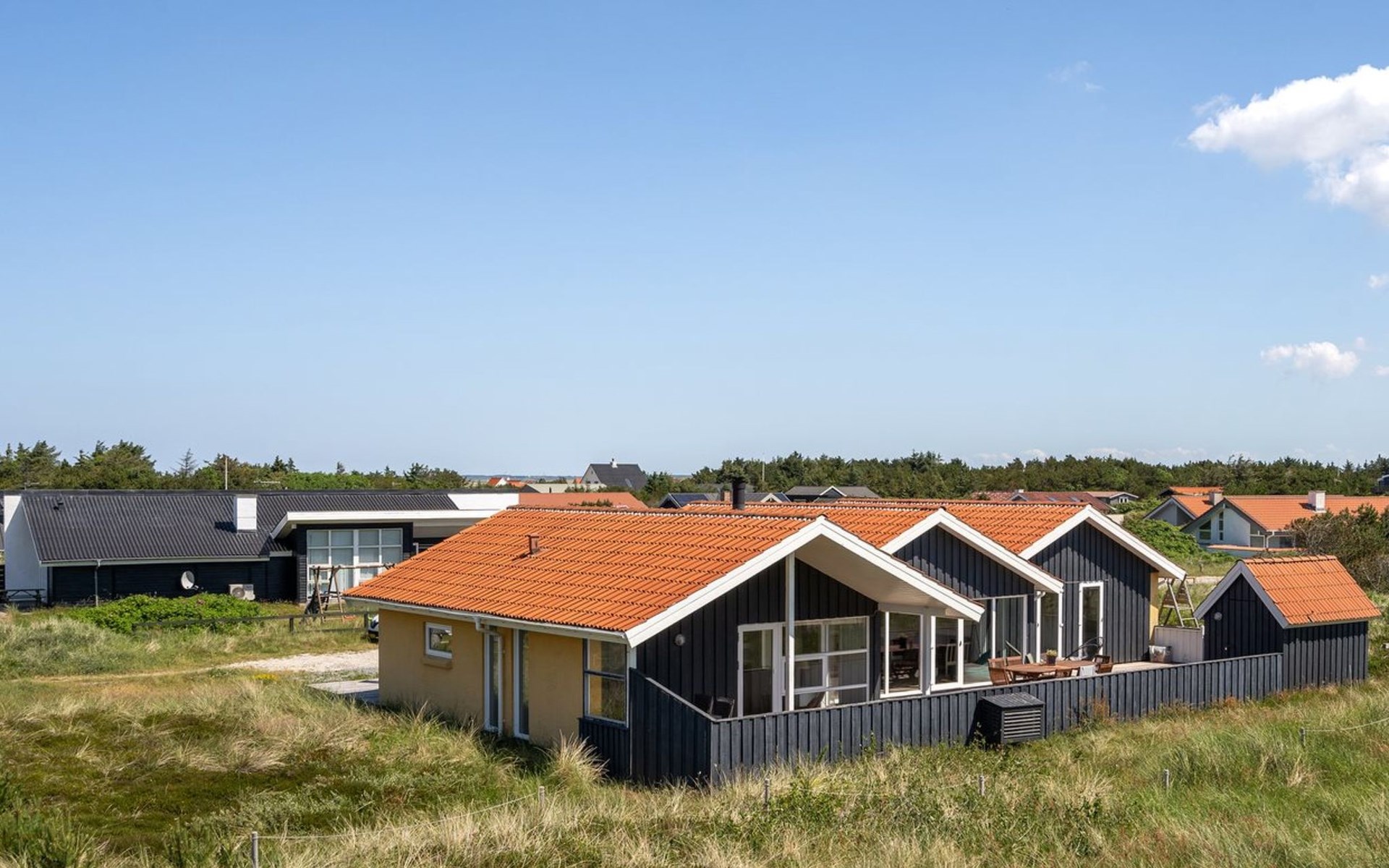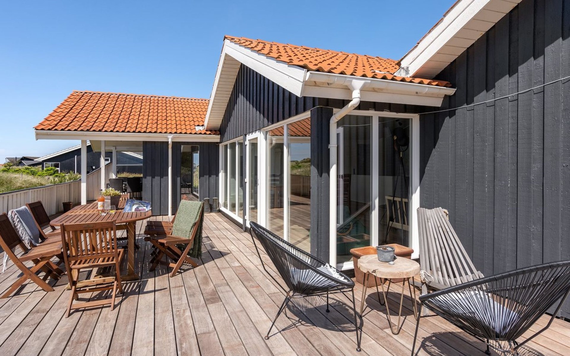 Einfamilienhaus, Baujahr 1990. 600 m vom Meer. Zur Mitbenutzung: Garten. Zur Alleinbenutzung: naturbelassenes Grundstück 1'100 m2, Garten (eingezäunt). Terrasse (100 m2), Grill, Kinderspielplatz (Schaukel). Im Hause: Sauna, Waschmaschine, Wäschetrockner. Parkplatz beim Haus. E-Ladestation. Lebensmittelgeschäft 500 m. Golfplatz 5 km. Der Besitzer akzeptiert keine Jugendgruppen.
