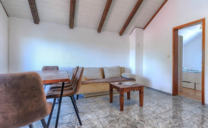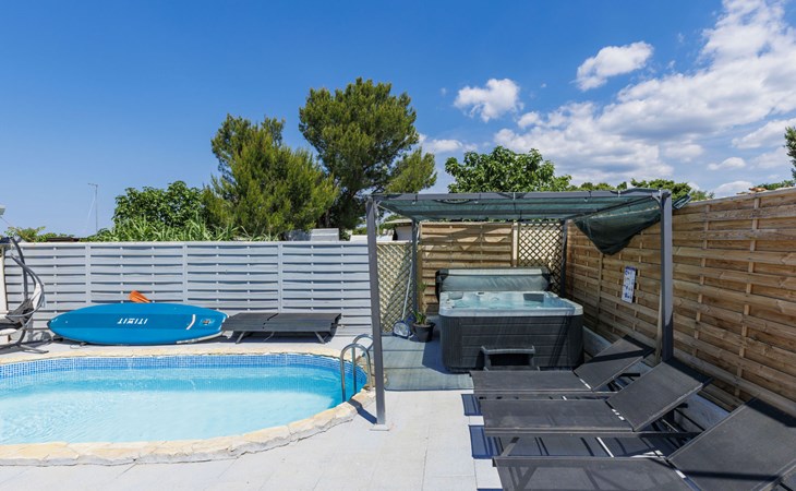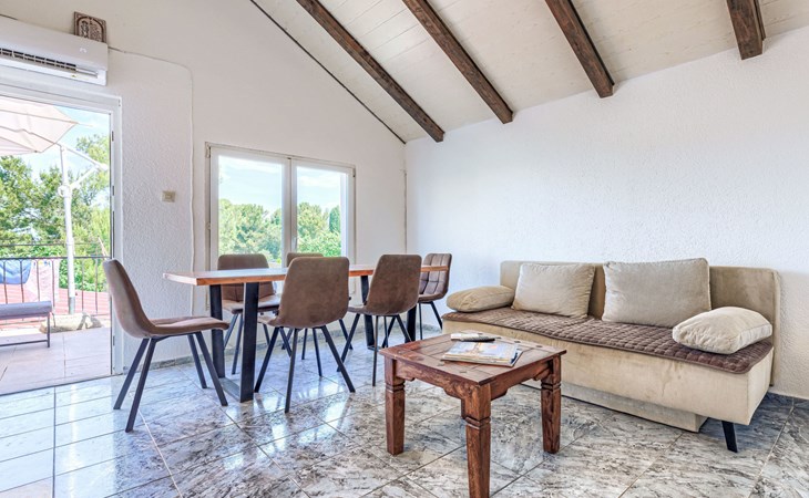 Zweifamilienhaus "Sabo". 1.7 km vom Zentrum von Peroj, 3 km vom Zentrum von Fažana, 8 km vom Zentrum von Vodnjan, sonnige Lage, 300 m vom Meer, 300 m vom Strand. Zur Mitbenutzung: Grundstück 150 m2 (eingezäunt), Schwimmbad eckig (5 x 3 m, 140 cm tief, saisonale Verfügbarkeit: 01.Apr. - 01.Nov.) mit Innentreppe. Aussendusche. Im Hause: Internetzugang. Zufahrt (500 m Naturweg). Parkplatz beim Haus auf dem Grundstück. Einkaufsgeschäft 1 km, Supermarkt 3 km, Restaurant 1.5 km, Bushaltestelle 900 m, Kieselstrand 1 km, Felsstrand 300 m. Bitte beachten: Der Besitzer wohnt auf dem gleichen Grundstück. Eigentümer hat einen Hund.