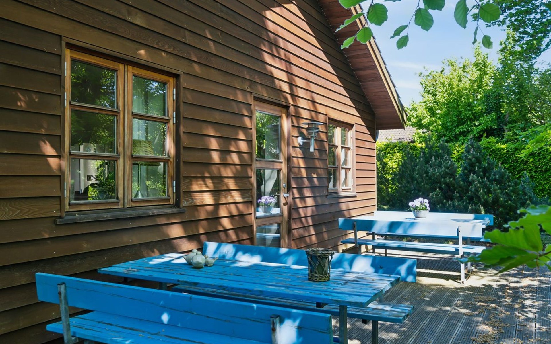 Einfamilienhaus, Baujahr 2007. Zur Alleinbenutzung: Grundstück 1'500 m2, gepflegter Garten. Im Hause: Waschmaschine, Wäschetrockner. Parkplatz beim Haus. Lebensmittelgeschäft 800 m. Golfplatz 12 km. Der Besitzer akzeptiert keine Jugendgruppen.