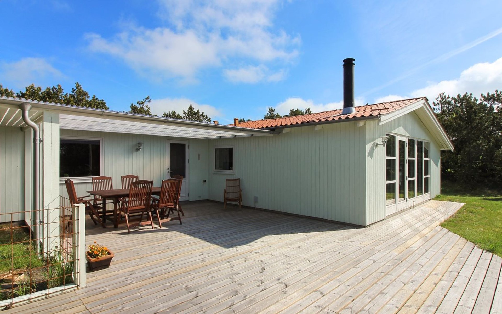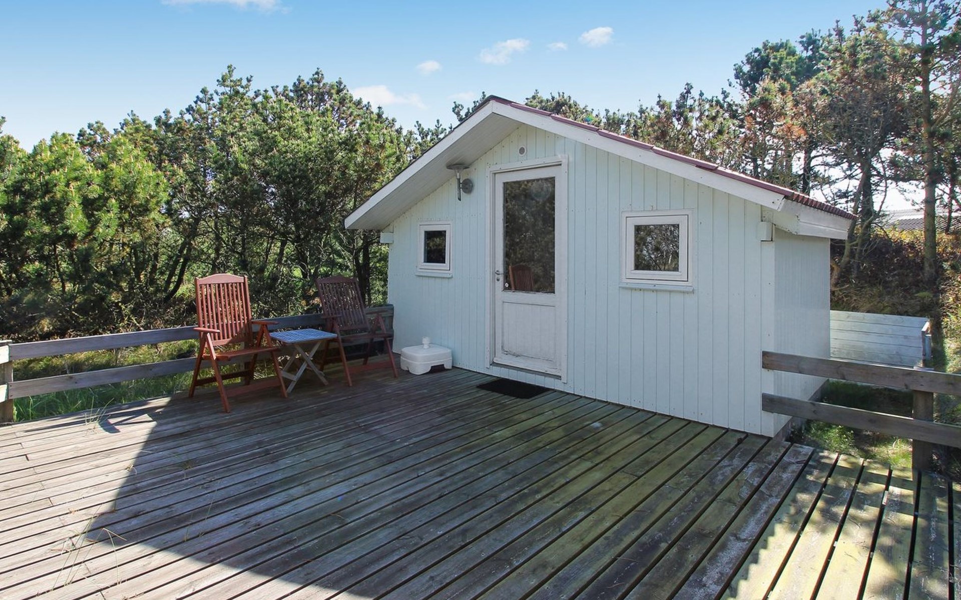 Einfamilienhaus, Baujahr 1989. 800 m vom Meer. Zur Alleinbenutzung: naturbelassenes Grundstück 1'436 m2. Terrasse (80 m2), Grill, Kinderspielplatz. Im Hause: Waschmaschine, Wäschetrockner. Parkplatz beim Haus. Lebensmittelgeschäft 500 m. Der Besitzer akzeptiert keine Jugendgruppen.