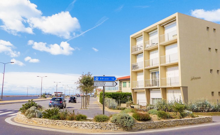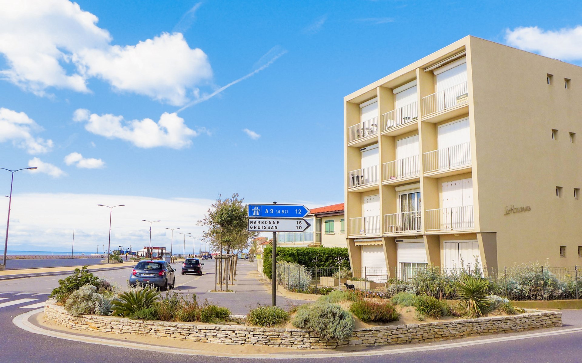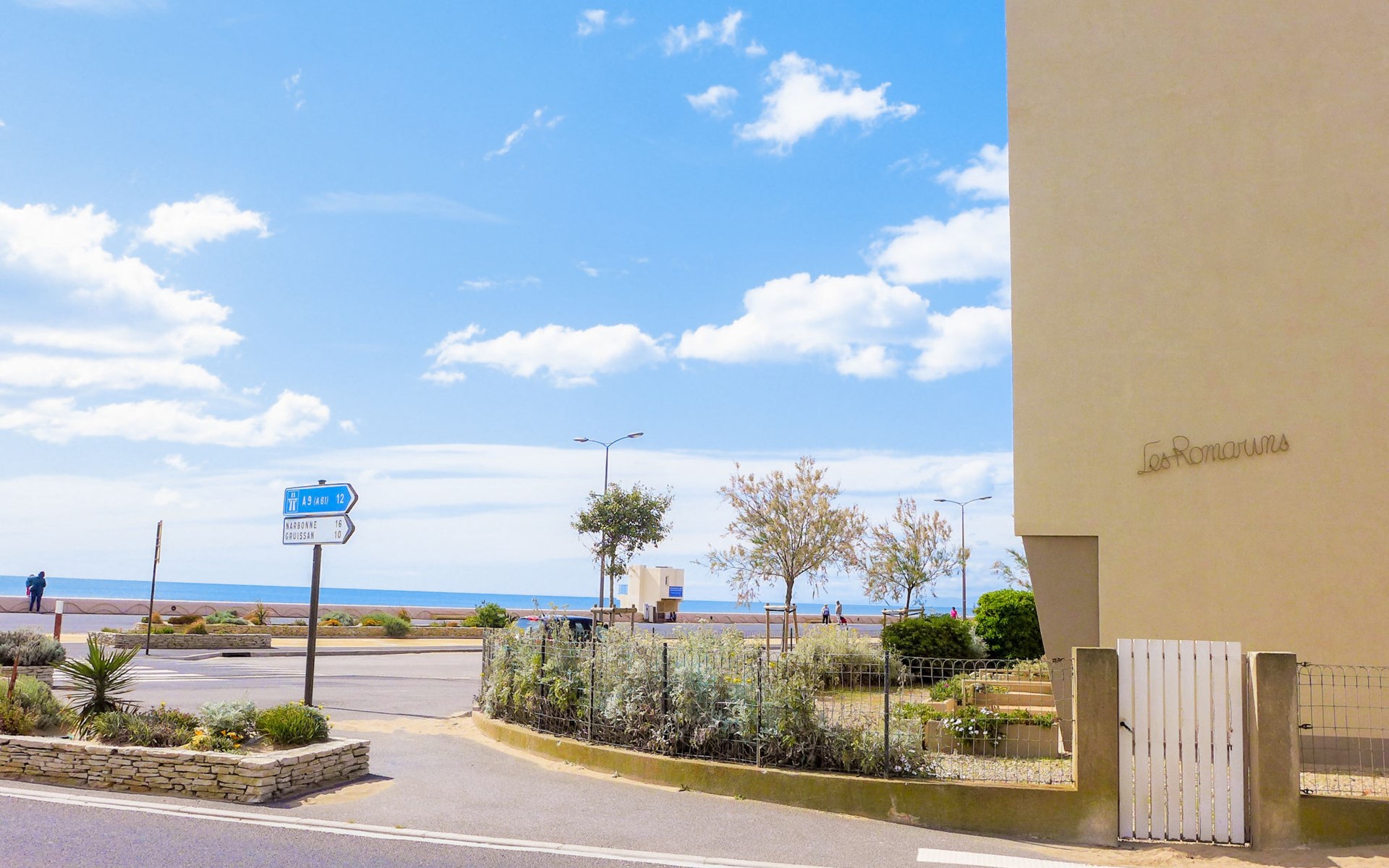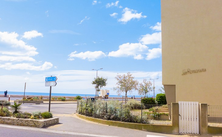 Kleine Residenz "Les Romarins", auf 3 Stockwerken. 300 m vom Zentrum von Narbonne-Plage, 50 m vom Meer, Strasse zu überqueren, Richtung Südosten. Öffentliche Parkplätze auf der Strasse. Einkaufsgeschäft, Lebensmittelgeschäft, Restaurant, Bar, Bäckerei 400 m, Bushaltestelle 600 m, Tauchzentrum 2 km. Sporthafen 2 km, Segelschule 2 km, Reitstall 5 km. Nahe gelegene Sehenswürdigkeiten: Réserve Africaine de Sigean 33 km, Cité de Carcassonne 73 km, Espace balnéoludique de Gruissan 6 km.