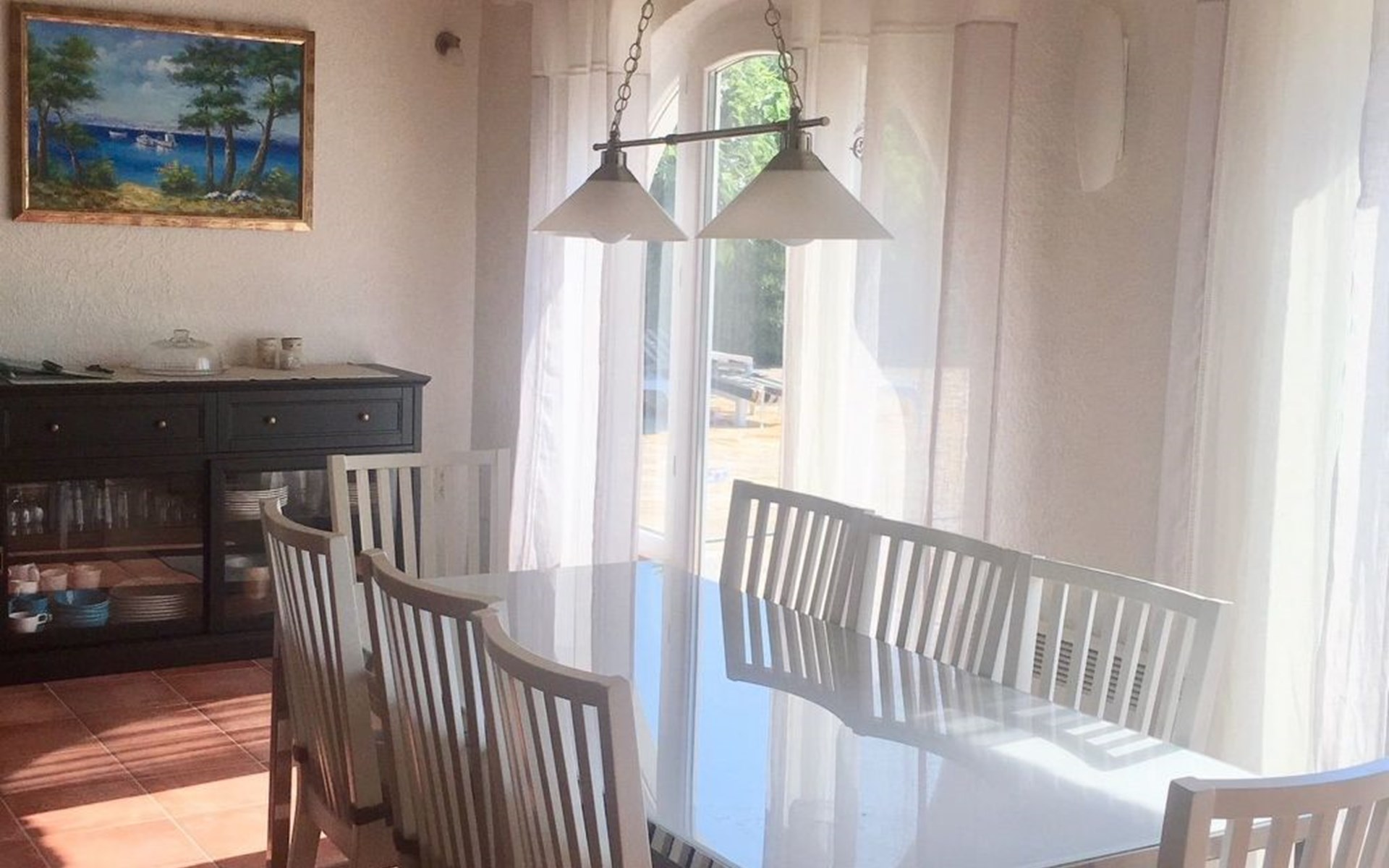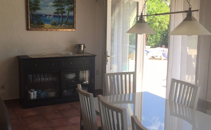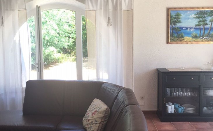 Das Innere der Villa ist so ausgestattet, dass es keine Wünsche offen lässt. Sie besteht aus einem gemütlichen Wohnbereich und einer offenen Küche, die mit Geschirrspüler, Kaffeemaschine und Wasserkocher ausgestattet ist - perfekt für die Zubereitung von Mahlzeiten und Getränken während Ihres Aufenthalts. Die Schlafmöglichkeiten sind großzügig und vielseitig und bieten bequem Platz für bis zu 8 Personen. Es gibt insgesamt vier Schlafzimmer, eines mit einem Doppelbett, eines mit zwei Einzelbetten und zwei kleinere Zimmer mit jeweils einem Doppelschlafsofa. Ein zusätzlicher Schlafplatz wird durch eine Doppelschlafcouch im Wohnzimmer geschaffen. Zwei separate Toiletten und zwei Duschen sorgen für einen komfortablen Aufenthalt aller Gäste.