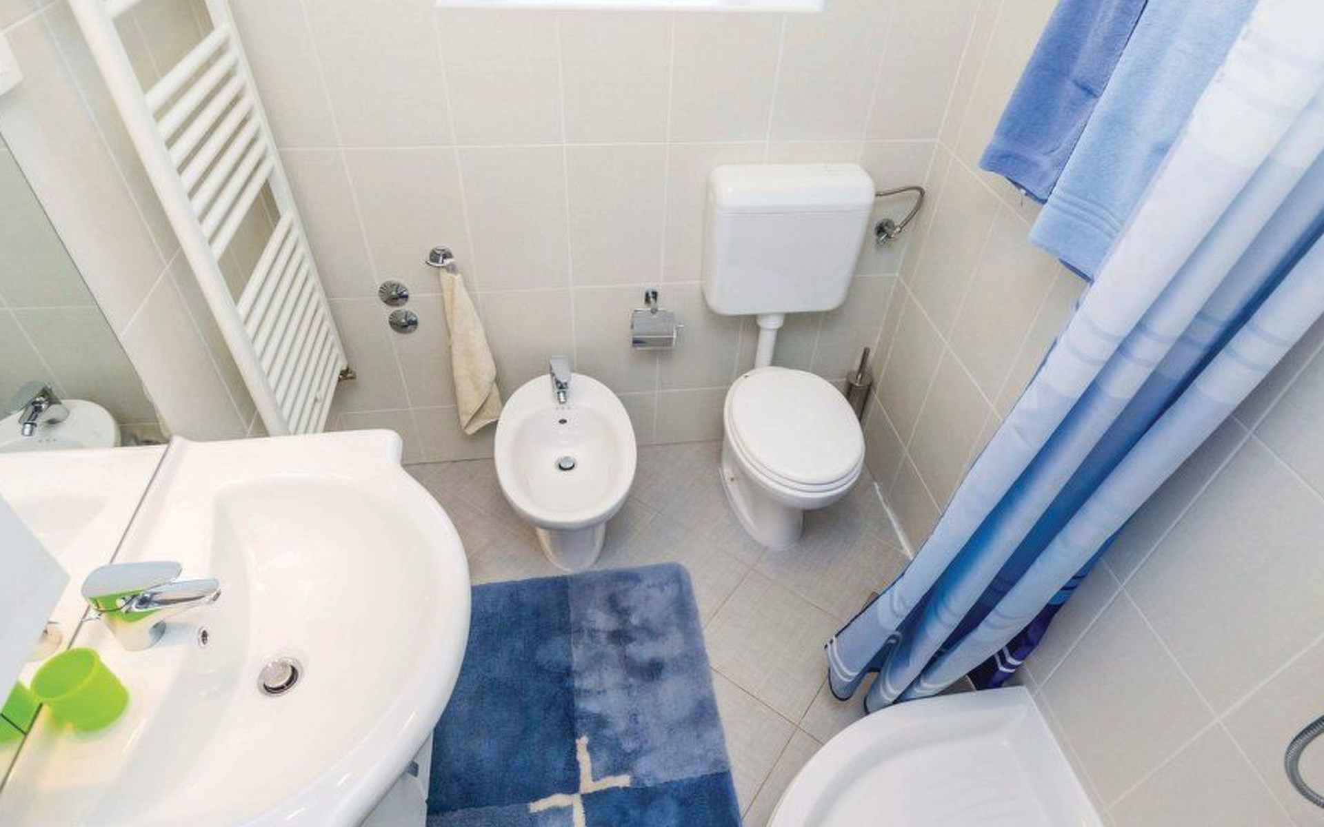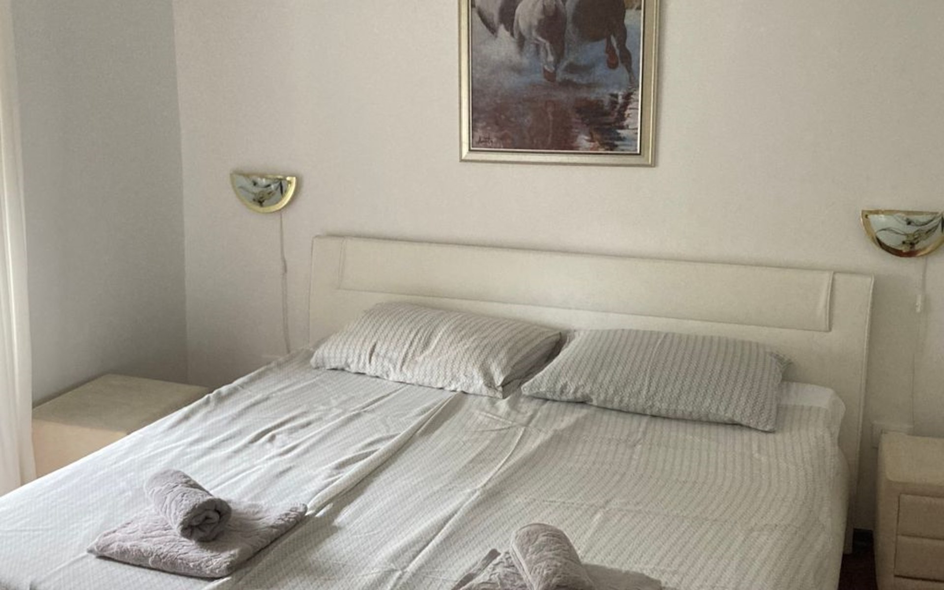 - Drei Schlafzimmer, zwei davon mit doppelbreiten Betten (180 und 160 cm breit), ein Schlafzimmer mit zwei breiten Einzelbetten (120 cm breit)
