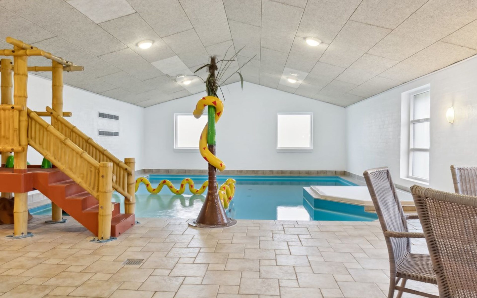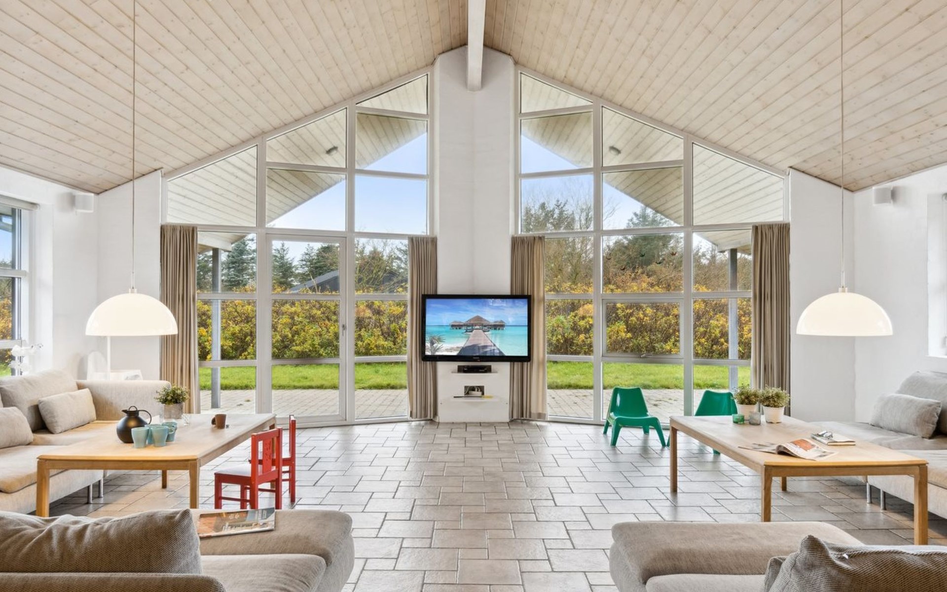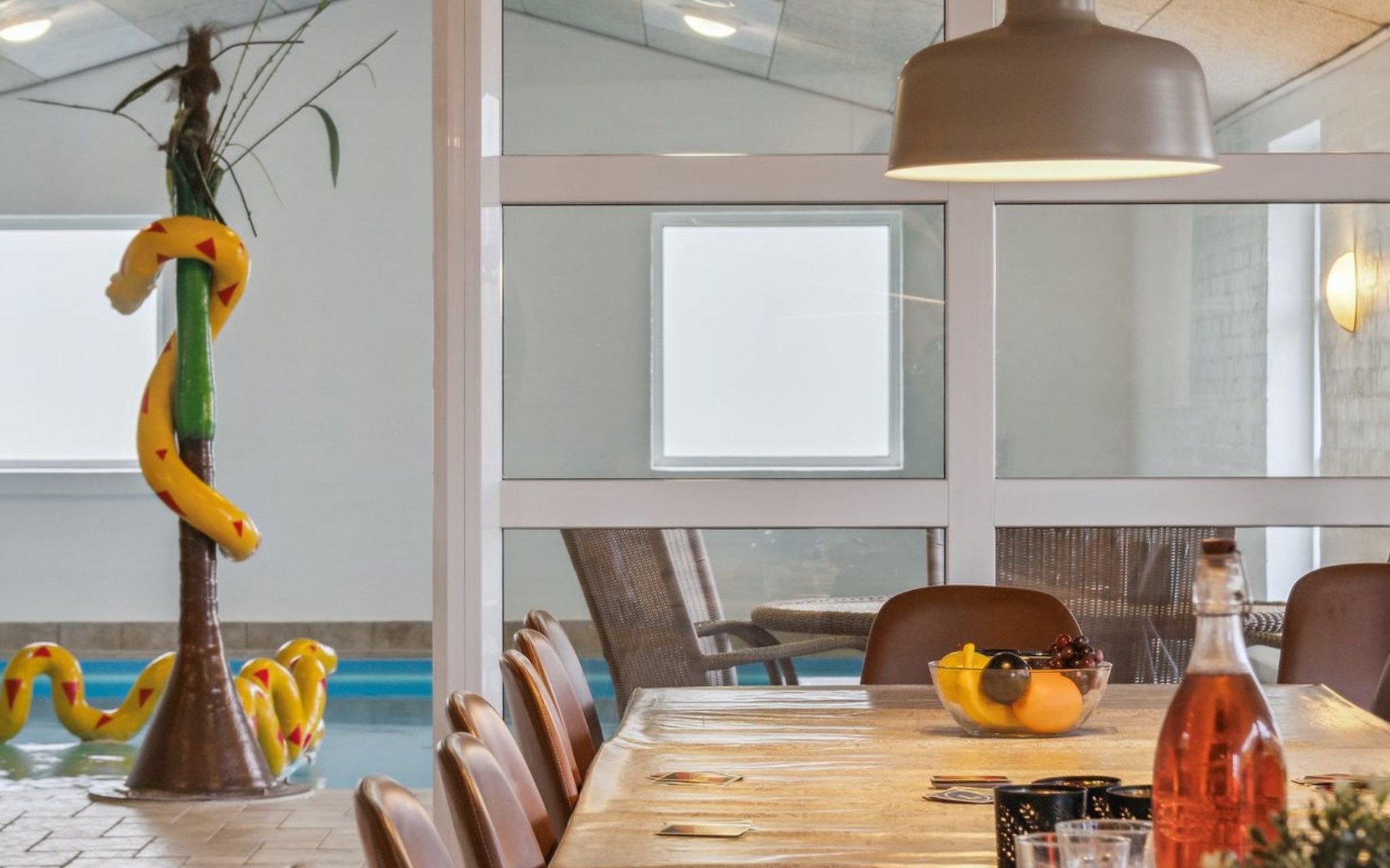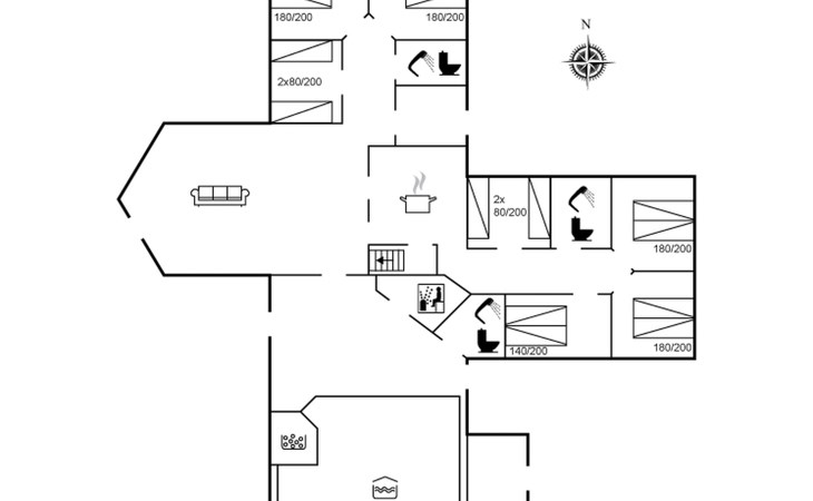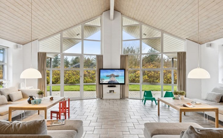 Einfamilienhaus, Baujahr 2005. 500 m vom Meer. Zur Alleinbenutzung: naturbelassenes Grundstück 2'500 m2, Hallenbad (3 x 6 m, 23 m2, 144 - 144 cm tief). Terrasse (50 m2), Kinderspielplatz (Rutschbahn, Schaukel). Im Hause: Sauna, Tischfussball, Waschmaschine, Wäschetrockner. Parkplatz beim Haus. Lebensmittelgeschäft 5 km. Golfplatz 5 km. Der Besitzer akzeptiert keine Jugendgruppen.