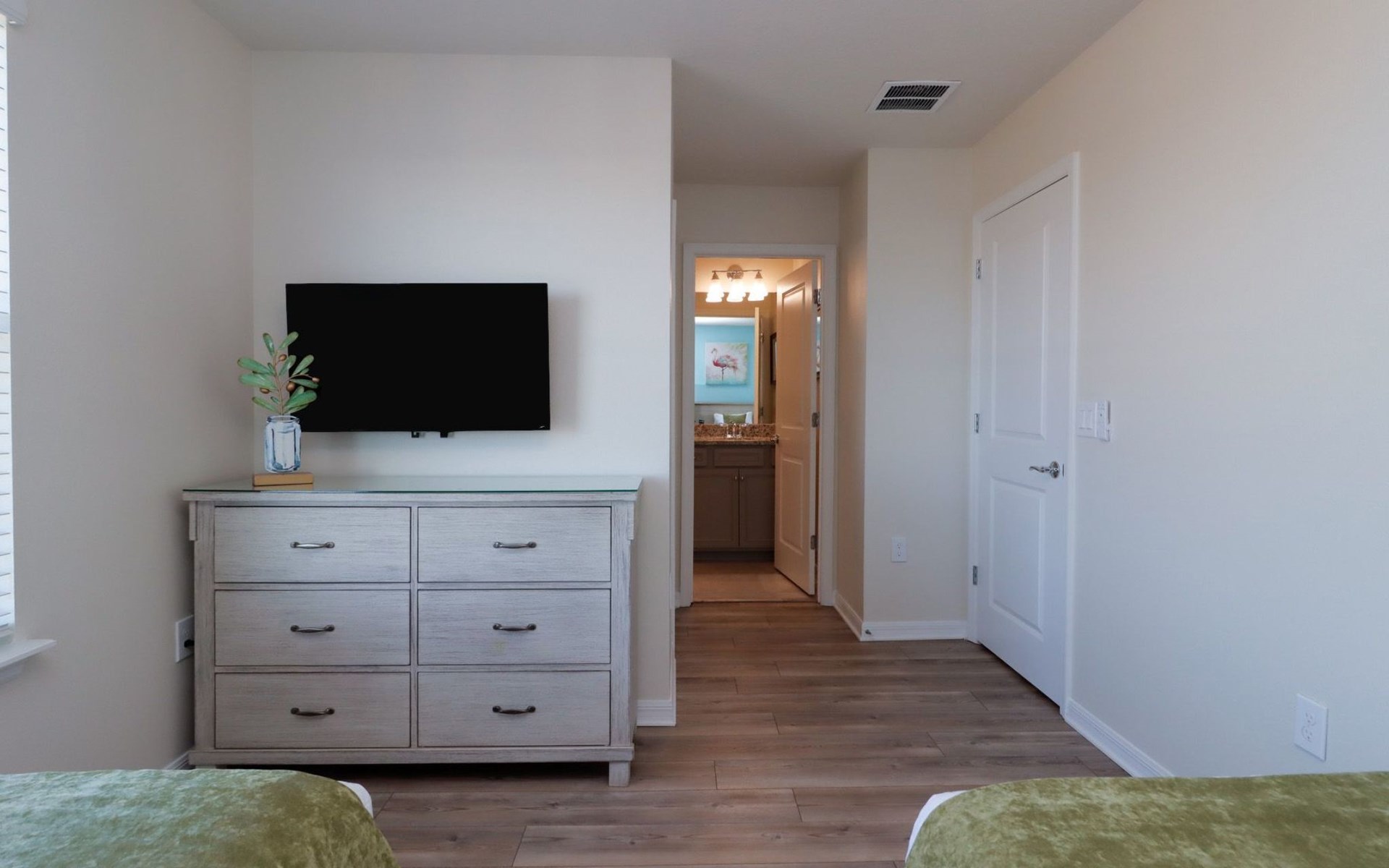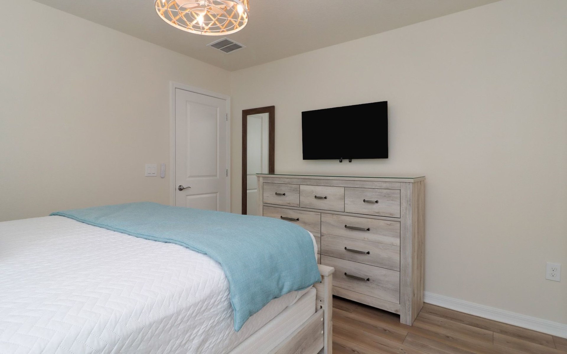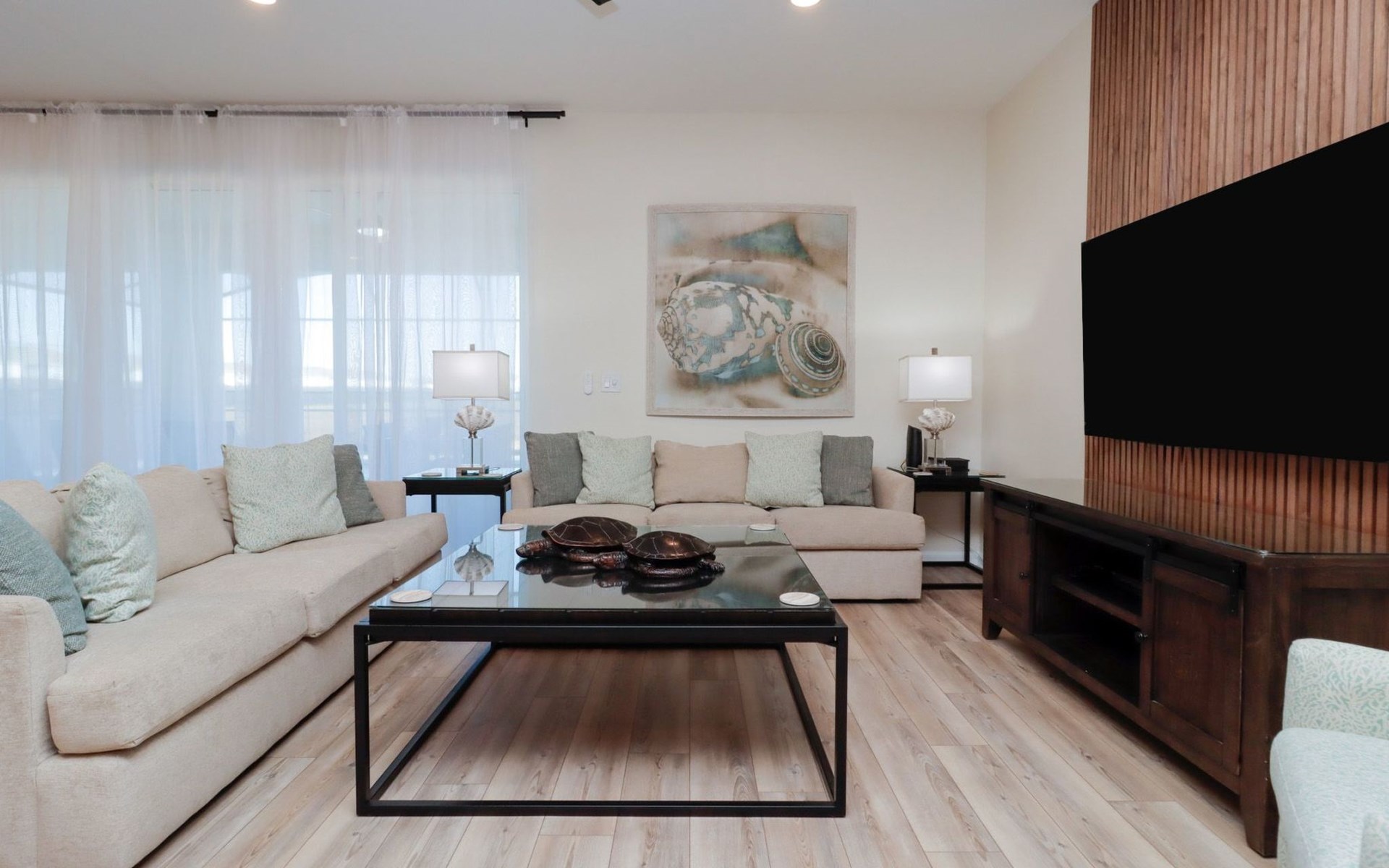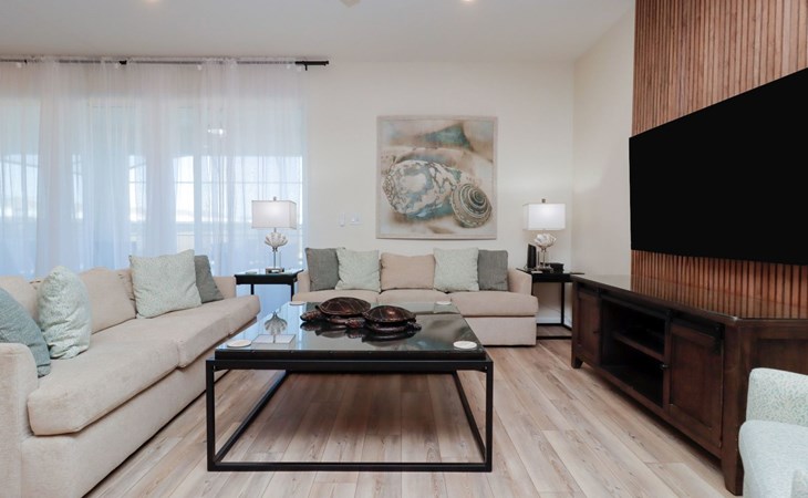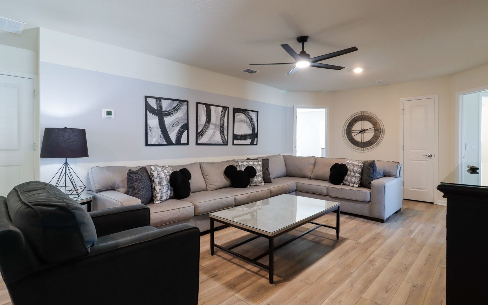 Treten Sie ein in dieses weitläufige, vollständig modernisierte Haus mit 10 Schlafzimmern, das mühelos große Gruppen oder Familien beherbergen kann. Das offene Konzept im Hauptgeschoss sorgt dafür, dass alle bequem zusammenkommen können, und bietet zwei getrennte Wohnbereiche, ein Spielzimmer und einen großen Poolbereich - hier's never a dull moment here. The welcoming family room, adjacent to the kitchen, features a sizeable sectional, a flat-screen TV, and direct access to the pool deck. Upstairs, another living area provides additional space to unwind with its own large sectional, flat-screen TV, and an open layout that leads into the games room, making it an ideal spot for entertainment or relaxation.