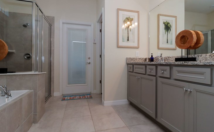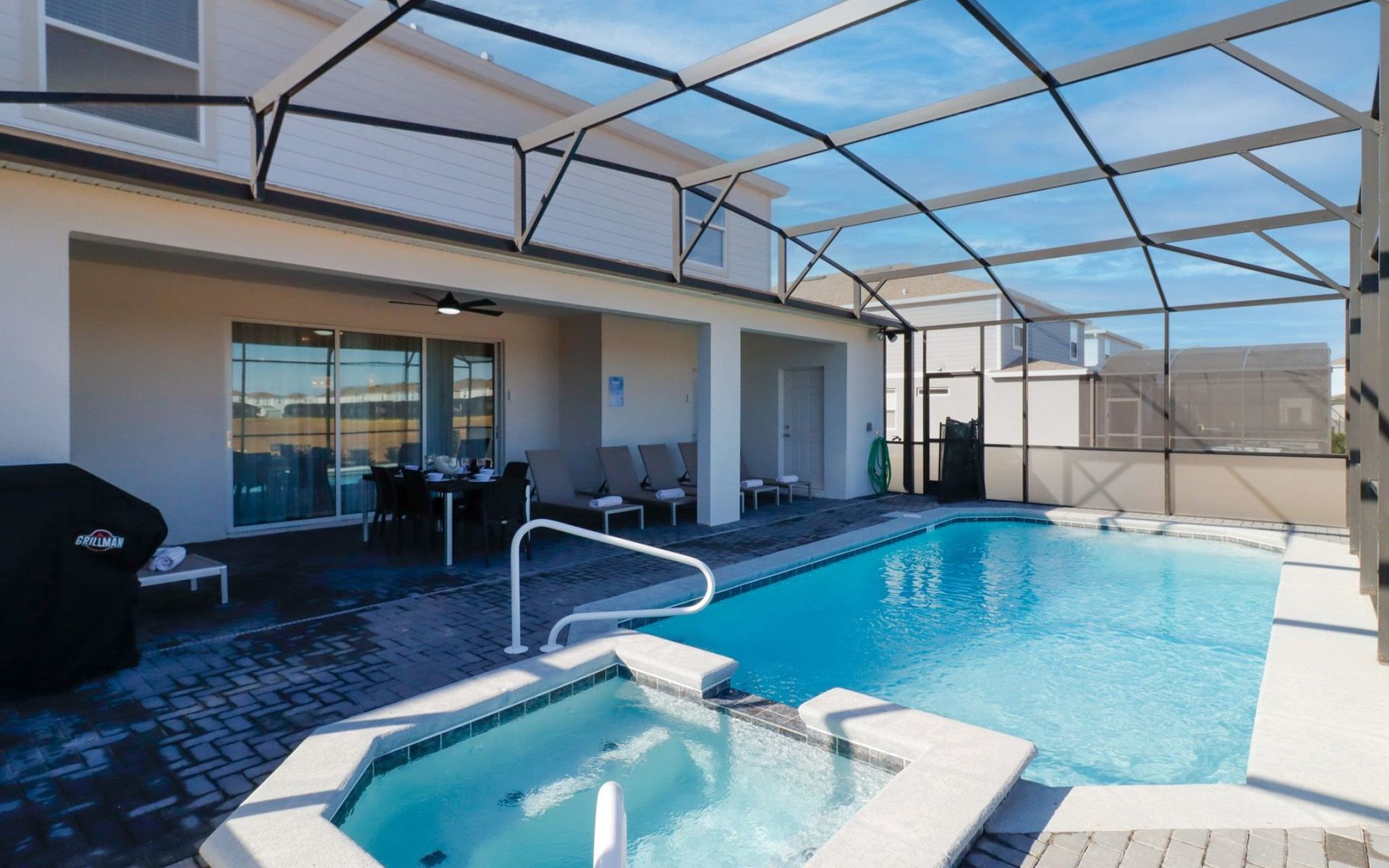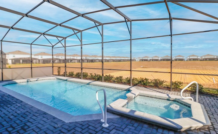 The outdoor space is equally impressive, featuring a vast, fully screened pool deck perfect for unwinding. Dive into the refreshing pool or soak in the spa, then enjoy al fresco dining or lounge in comfort in the ample covered outdoor space, designed with your relaxation in mind.