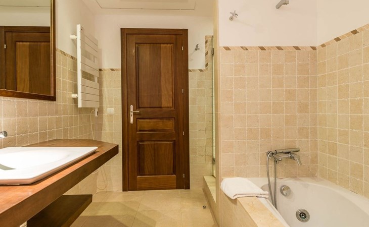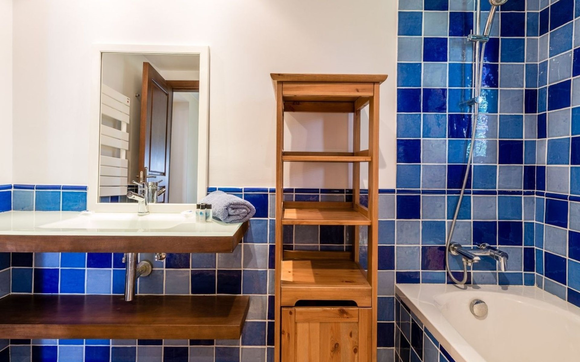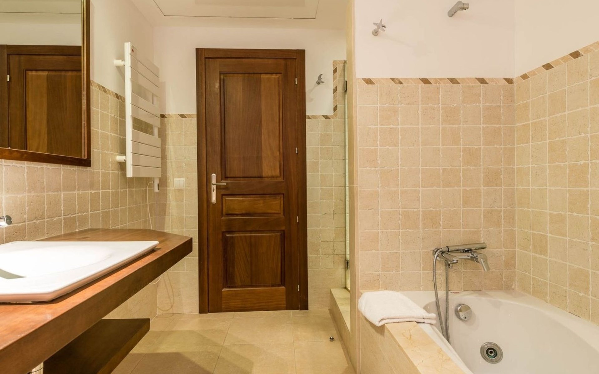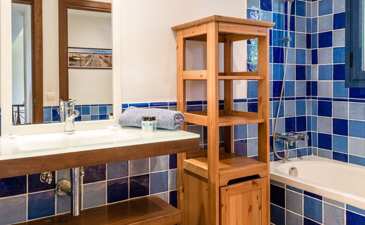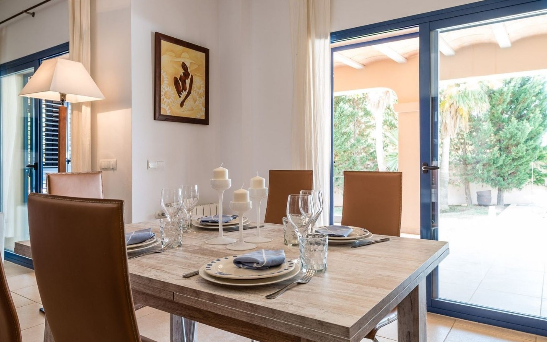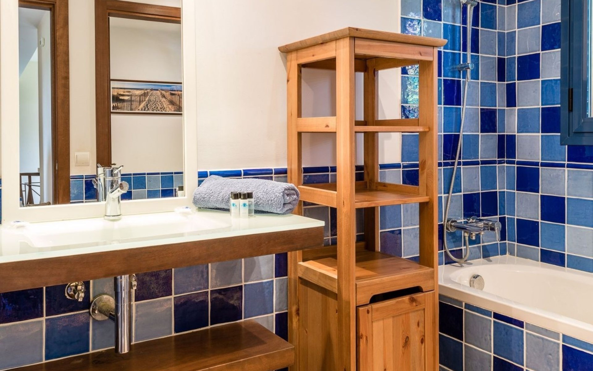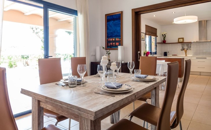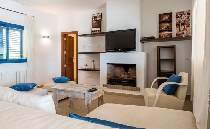 Das Innere der Villa ist gemütlich und raffiniert eingerichtet, so dass Sie sich sofort wie zu Hause fühlen werden. Das Wohnzimmer ist geräumig und komfortabel, mit weißen Sofas, die einen schönen Kontrast zu den großen blauen Fenstern bilden, die typisch für die Gegend sind, und einem Tisch aus Naturholz, der dem Ambiente einen Hauch von Klasse verleiht. Die fünf Schlafzimmer können bis zu 10 Personen beherbergen und sind individuell und geschmackvoll eingerichtet, inspiriert von den besten Einrichtungspublikationen. Drei Badezimmer, die mit allem Komfort ausgestattet sind, präsentieren einen rustikalen Stil, der sich harmonisch in die klassische Architektur der Villa einfügt.