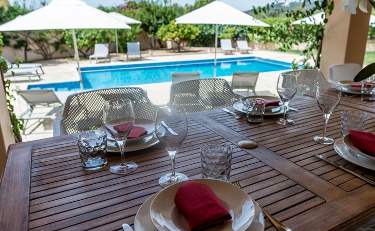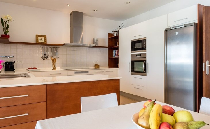 Im Außenbereich erwartet Sie ein Swimmingpool vor einer traumhaften Kulisse mit einem atemberaubenden Blick, den Sie vom Grillplatz oder dem angrenzenden Chill-out-Bereich aus genießen können, der ideal ist, um sich vor einem Abend mit Freunden zu entspannen. Verpassen Sie nicht die Gelegenheit, sich auf der Sonnenterrasse zu entspannen, wo Sie einen Cocktail schlürfen können, während Sie auf das Abendessen am Pool warten, umgeben von Ihren Freunden oder Ihrer Familie.