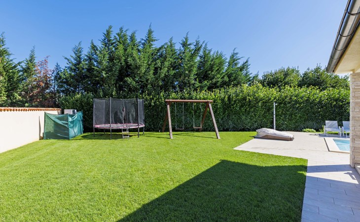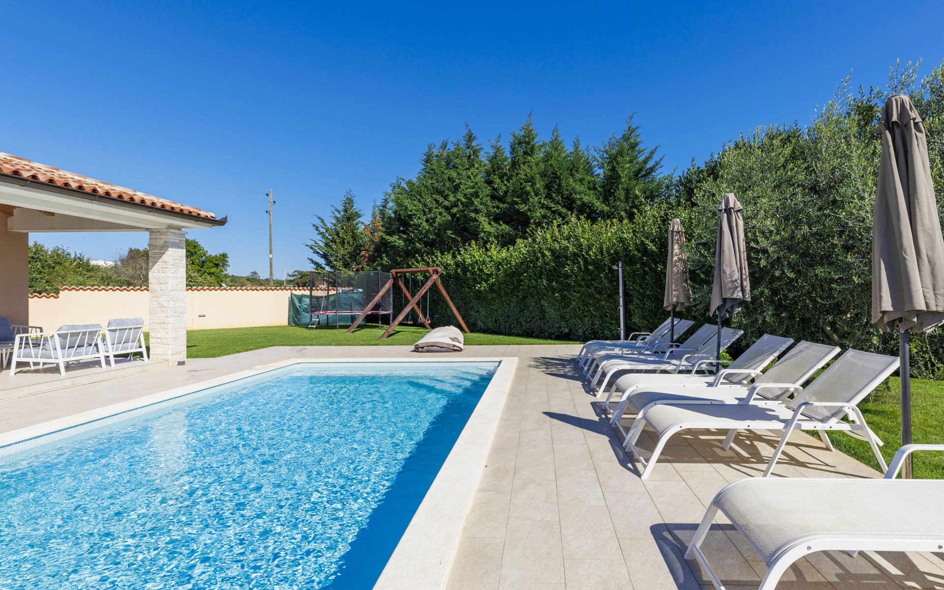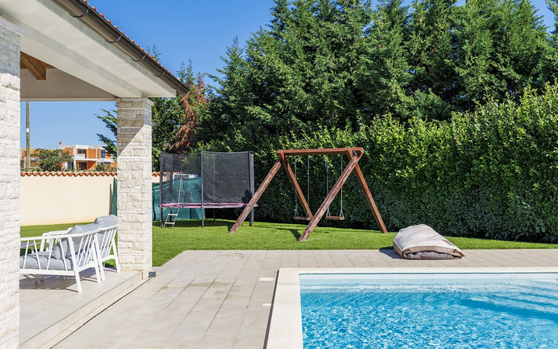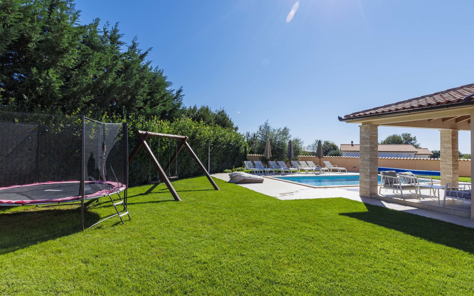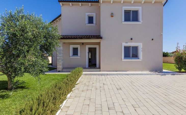 Villa "Magica", auf 2 Stockwerken. Im Weiler Loborika, 6 km vom Zentrum von Pula, 6 km vom Zentrum von Marčana, ruhige, sonnige Lage, 8 km vom Meer. Zur Alleinbenutzung: Grundstück 1'200 m2 (eingezäunt), Garten mit Pflanzen und Blumen, Schwimmbad eckig, beheizt (8 x 4 m, 140 cm tief, saisonale Verfügbarkeit: 01.Apr. - 01.Nov.) mit Innentreppe. Aussendusche, Terrasse (30 m2), Gartenmöbel, Grill, Kinderspielplatz (Schaukel), Poolpflege durch den Besitzer/Gärtner. Im Hause: Internetzugang, Trampolin, Waschmaschine. Parkplatz (für 4 Autos) beim Haus auf dem Grundstück. Einkaufsgeschäft 2.3 km, Supermarkt 6 km, Restaurant 2 km, Café 2.3 km, Bushaltestelle 2.3 km, Sandstrand 16 km, Kieselstrand 13 km. Tennis 15 km, Reitstall 5 km, Wanderwege ab Haus 100 m, Radweg 150 m. Nahe gelegene Sehenswürdigkeiten: Amphitheater 8 km, National park Brijuni 14 km, Nature park Rt. Kamenjak 18 km.